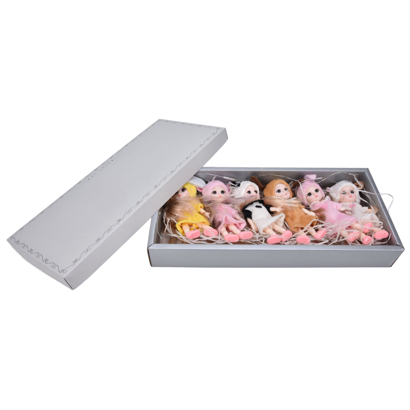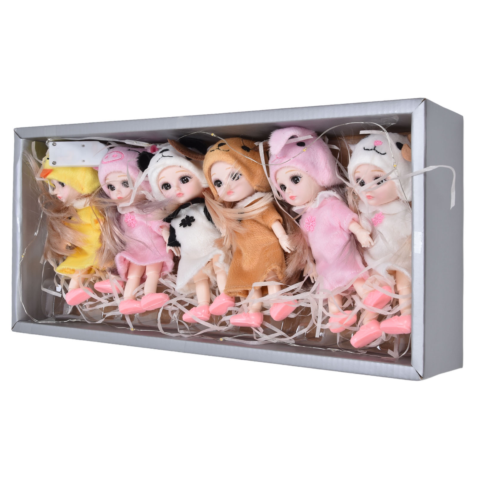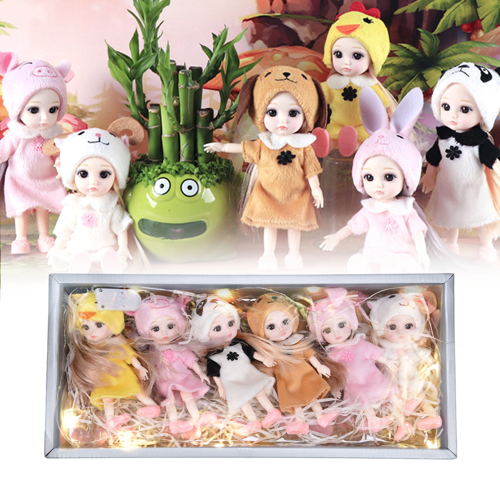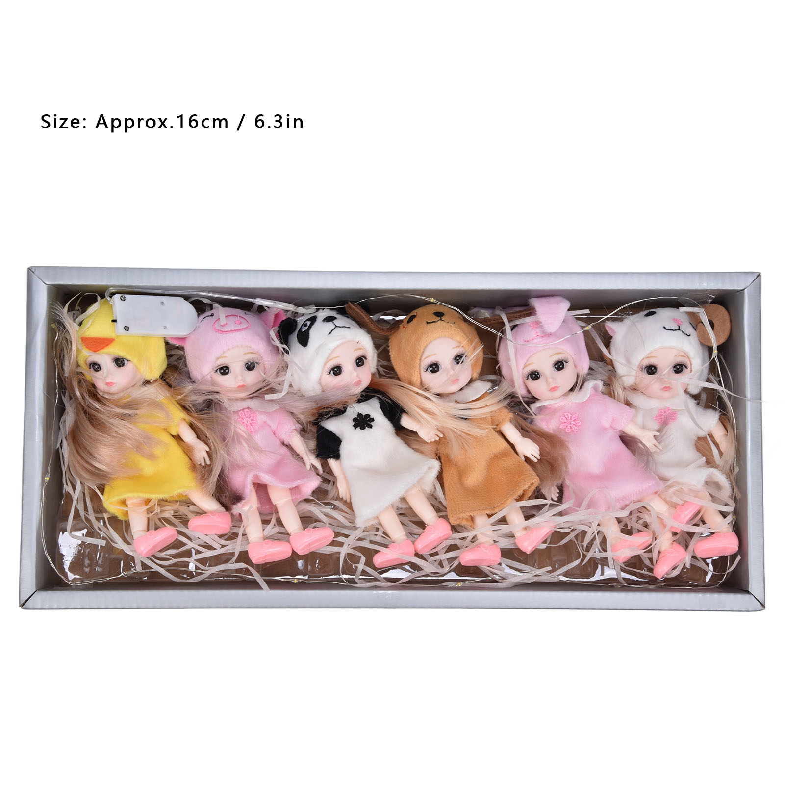 1、Dolls are around 16cm (6.3inches) height, the suitable size is perfect for children to play. 2、Compared with the same kind of dolls, she has rich facial details and with 13 rotatable joints, which can have more poses. 3、Contains six different cute dolls and each doll is equipped with one suit of beautiful clothes. 4、Made of a safe material, non‑toxic and odorless, you can let your child play with them at ease. 5、A nice gift for children's birthday, Children's Day, Christmas, Halloween and some other festivals.