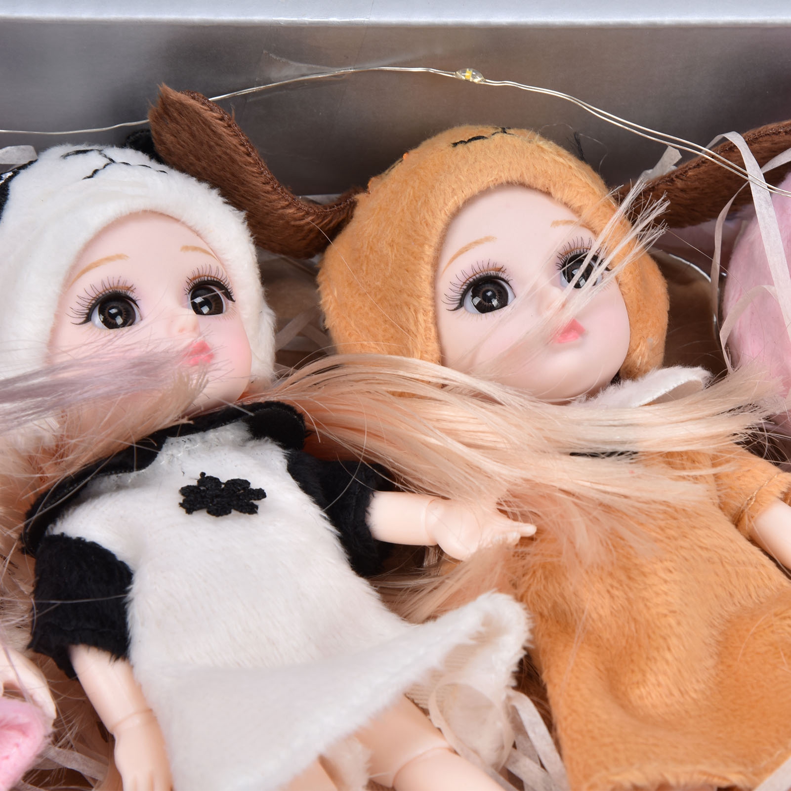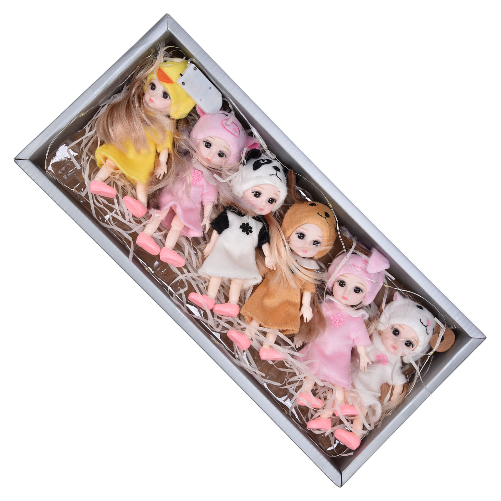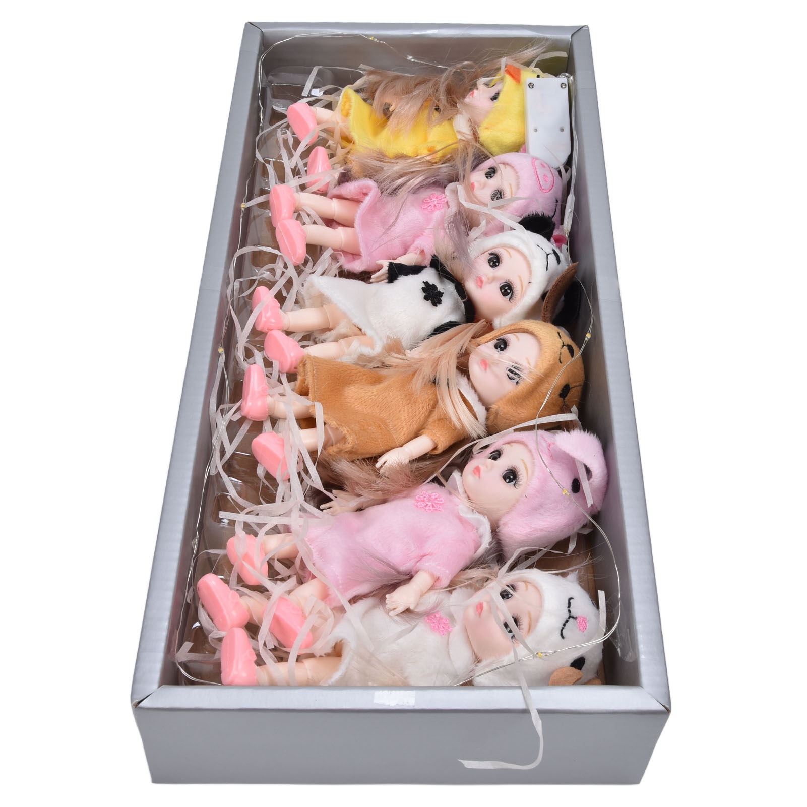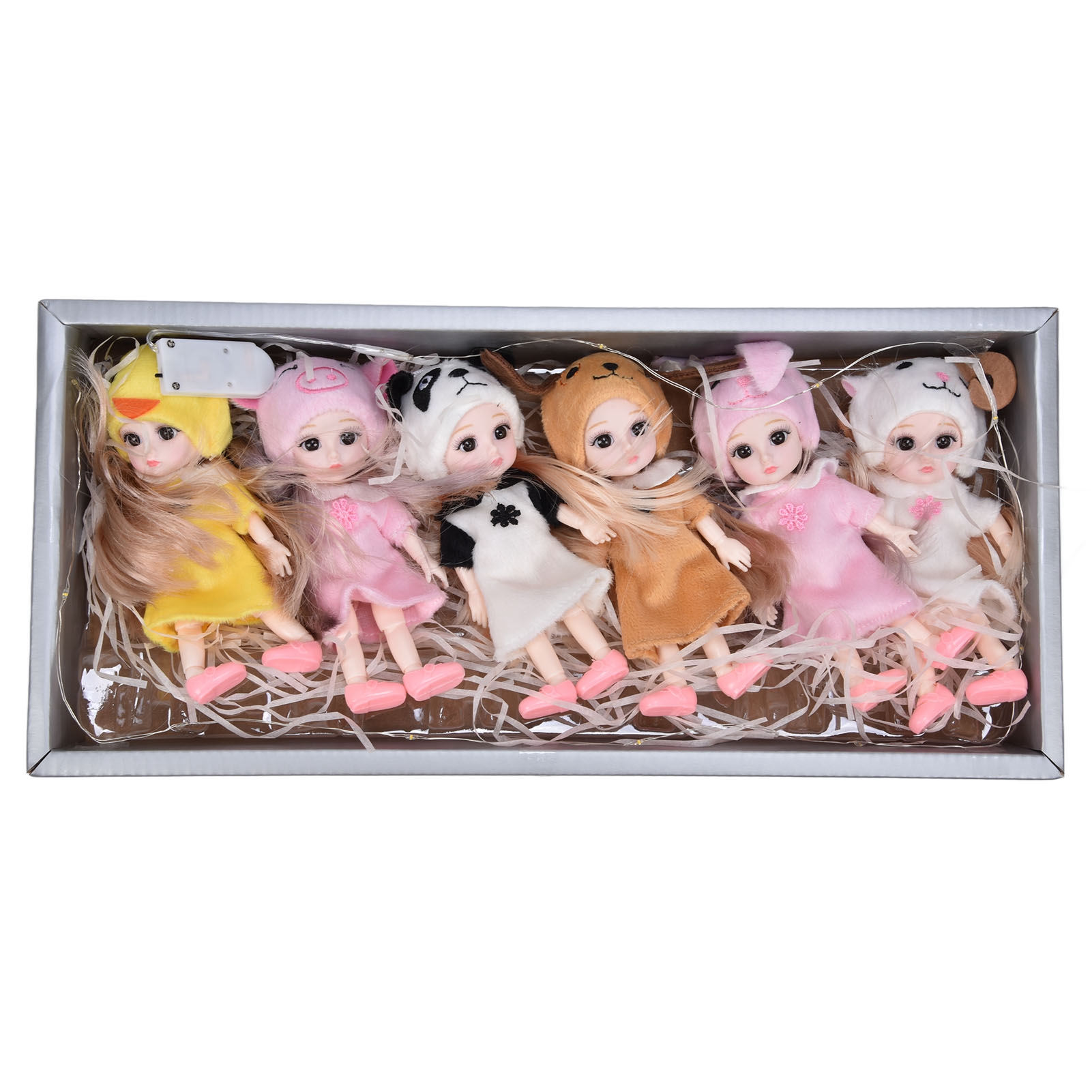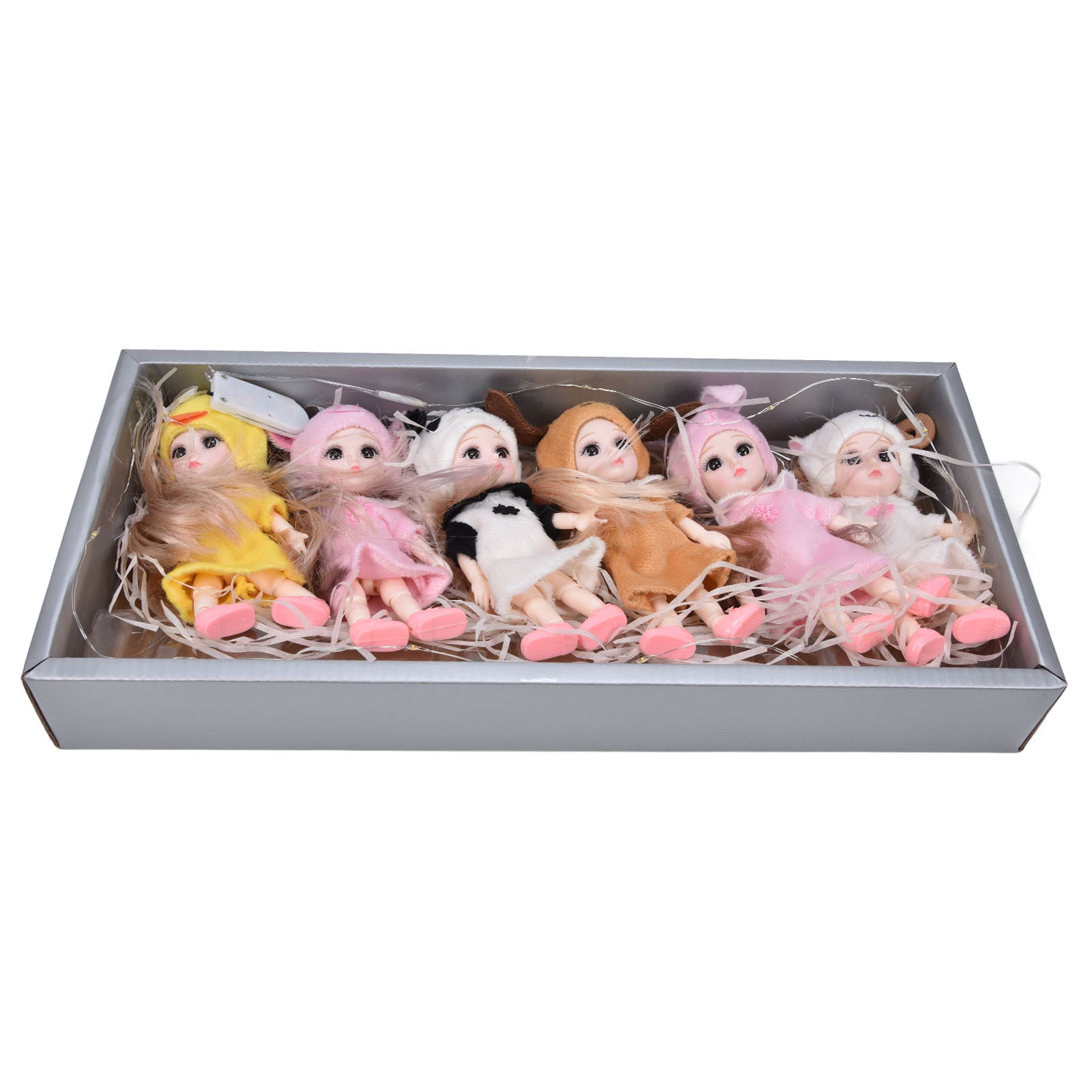 1、Dolls are around 16cm (6.3inches) height, the suitable size is perfect for children to play. 2、Compared with the same kind of dolls, she has rich facial details and with 13 rotatable joints, which can have more poses. 3、Contains six different cute dolls and each doll is equipped with one suit of beautiful clothes. 4、Made of a safe material, non‑toxic and odorless, you can let your child play with them at ease. 5、A nice gift for children's birthday, Children's Day, Christmas, Halloween and some other festivals.