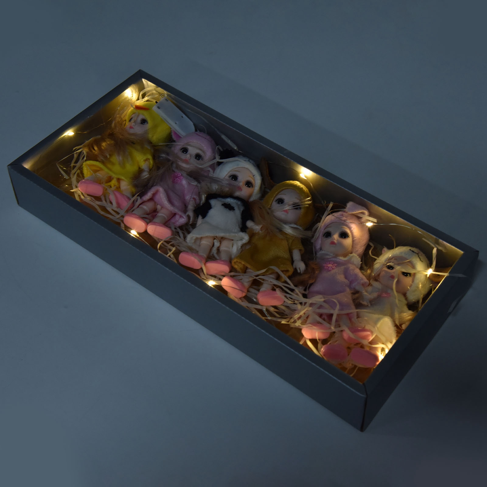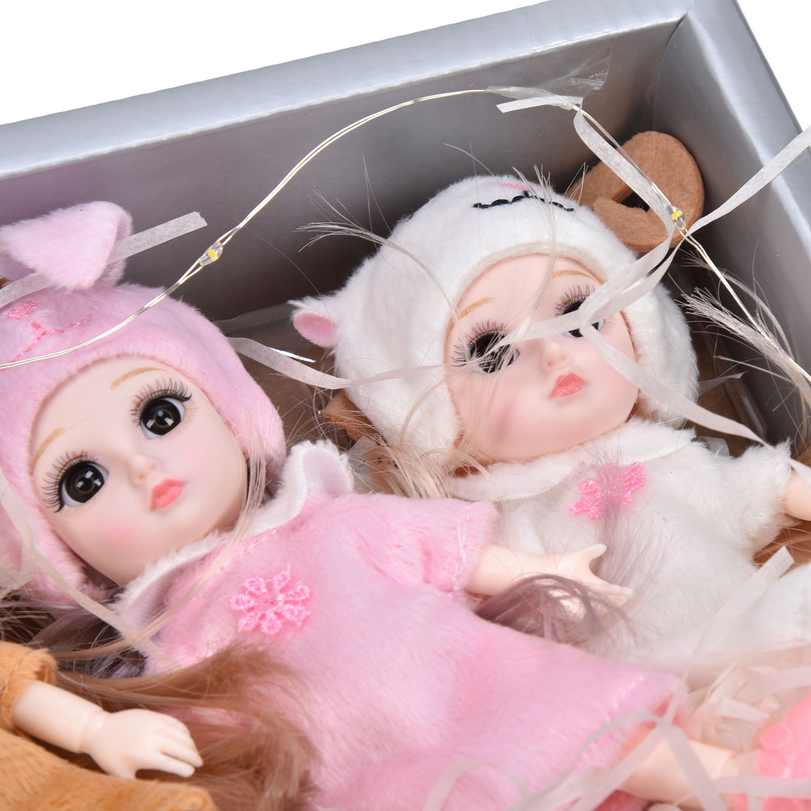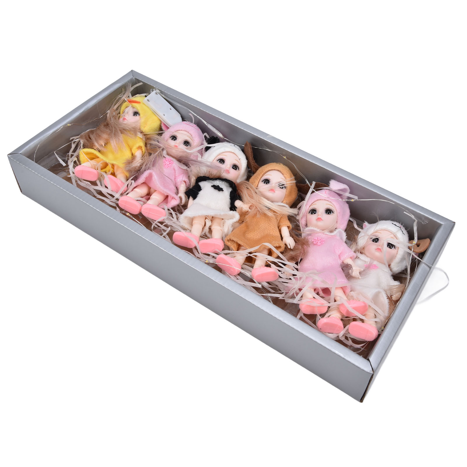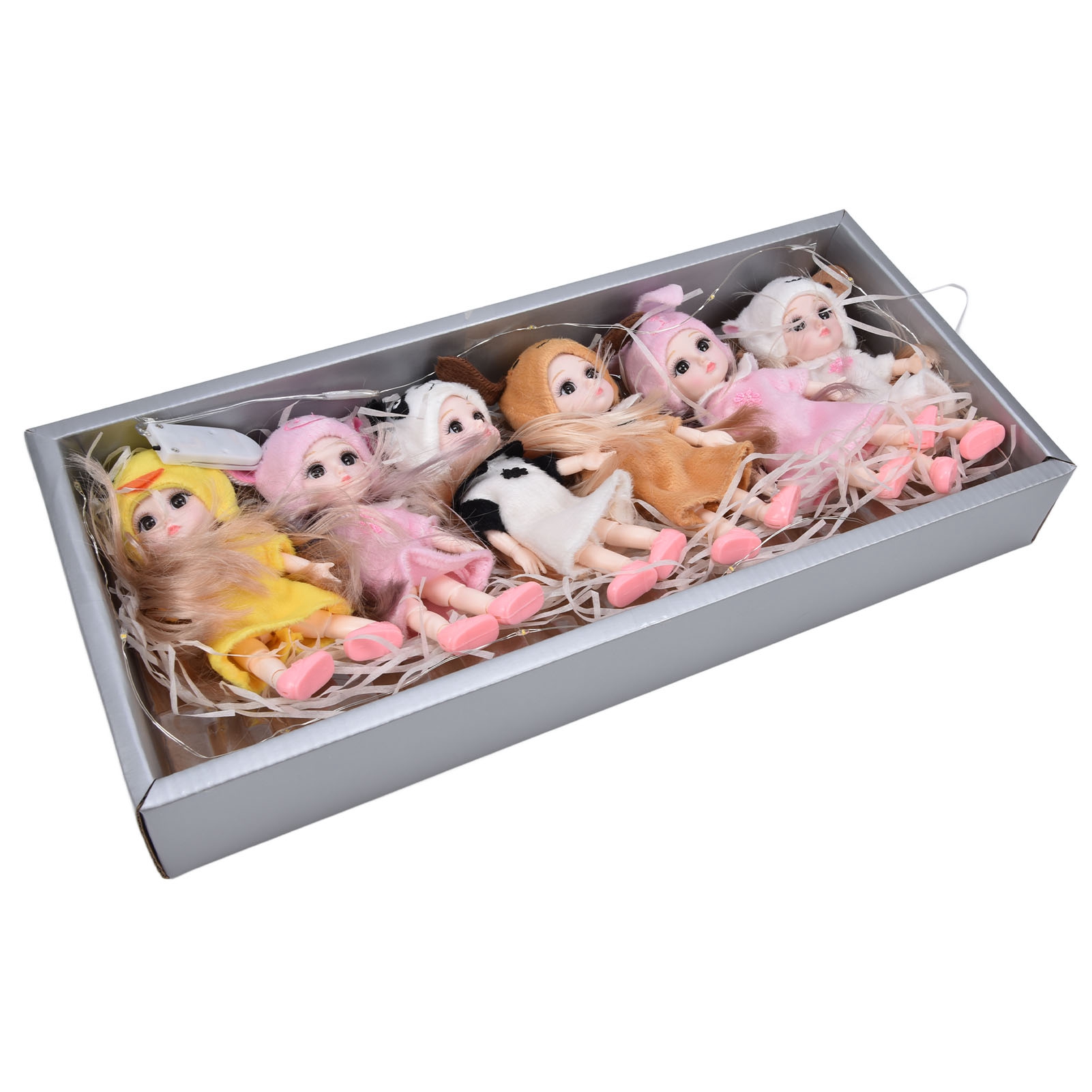 1、Dolls are around 16cm (6.3inches) height, the suitable size is perfect for children to play. 2、Compared with the same kind of dolls, she has rich facial details and with 13 rotatable joints, which can have more poses. 3、Contains six different cute dolls and each doll is equipped with one suit of beautiful clothes. 4、Made of a safe material, non‑toxic and odorless, you can let your child play with them at ease. 5、A nice gift for children's birthday, Children's Day, Christmas, Halloween and some other festivals.