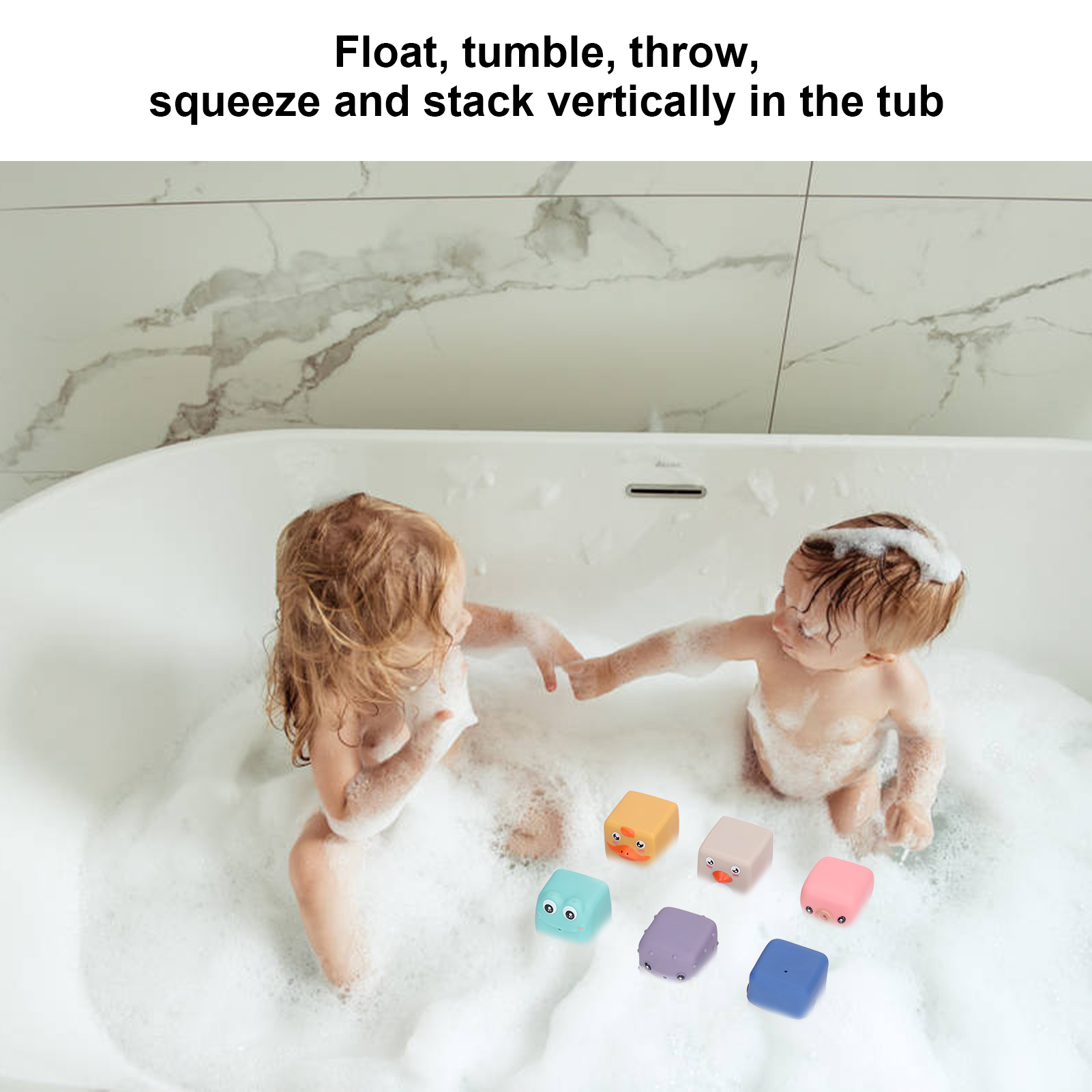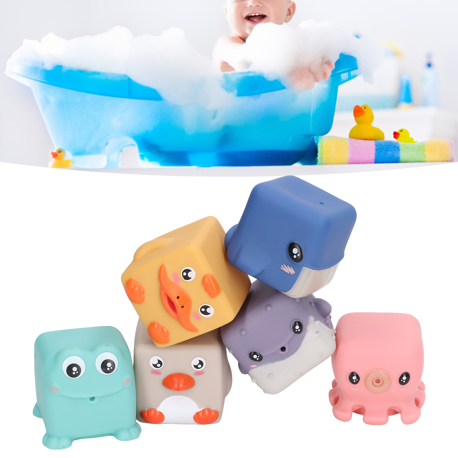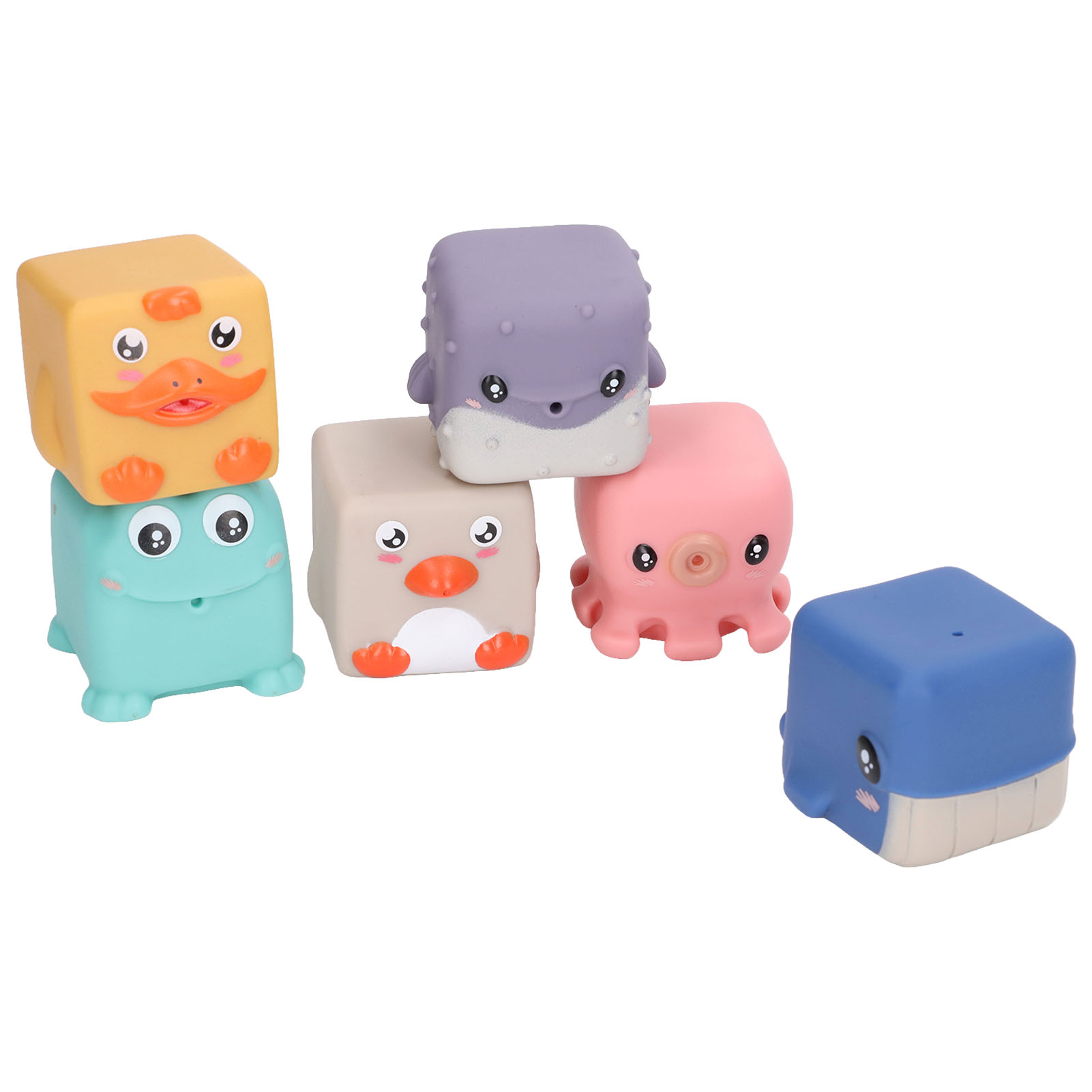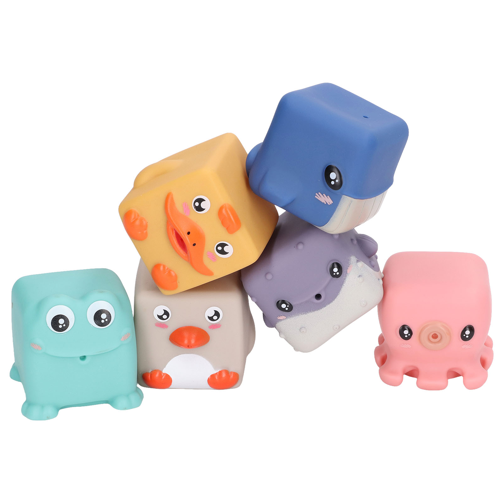 1、6 ANIMAL BLOCK CHARACTERS: A set of 6 soft animal block characters including a fool duck, a cute octopus, a naive penguin and a croaking frog 2、SUBMERGE, FILL UP AND SQUEEZE: Submerge the block sprayer in water, fill up, and squeeze out of the water to spray, easy to operate 3、VERSATILE AND INTERESTING: Bath squirters can float, tumble, throw, squeeze and stack vertically in the tub, very interesting 4、PERFECT GIFT: Made of soft PVC, safe for kids, perfect for kids Easter party favors, egg fillers, Easter basket stuffers, pinata fillers 5、EASY TO GRASP AND SQUEEZE: Compact size makes the squeeze water toys easy for little hands to grasp and squeeze easily, not easy to tired