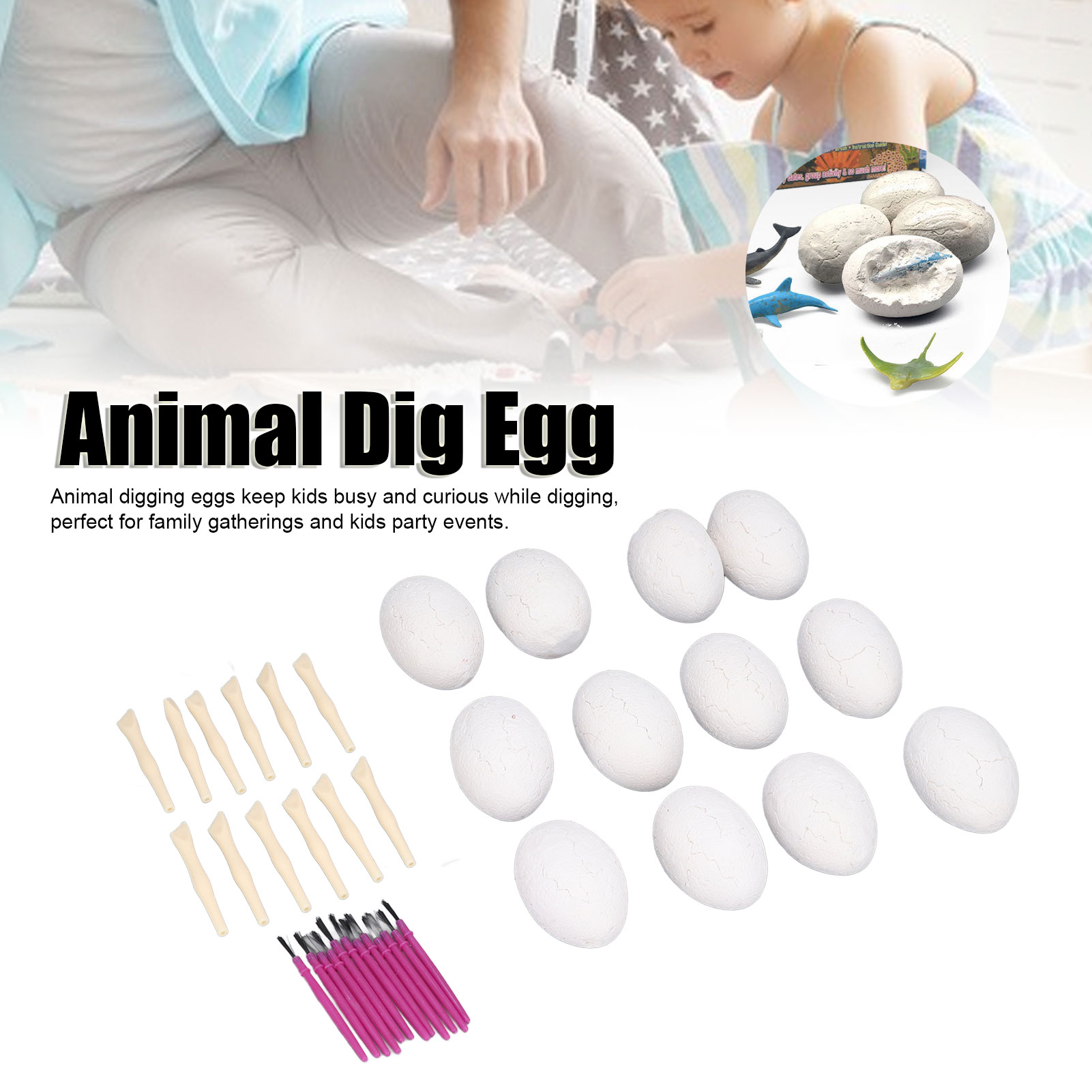 1、Multiple Applicable Scenarios: Animal digging eggs keep kids busy and curious while digging, perfect for family gatherings and kids party events. 2、Ability Training: Not only stimulate children's creativity and imagination, problem solving ability, but also cultivate their interest in animals. 3、Insect Toy: Various kinds of insect model toys, simulated and lifelike appearance, attract children's attention, make it easier for them to get to know different insects. 4、Parent Child Interaction: Perfect birthday or holiday gift for kids, they will like it. Parents can play with their children and teach them knowledge to promote parent child interaction. 5、PVC Material: Insect toy is made of high quality PVC material, safe and eco friendly, non toxic, firm and sturdy, stable and wear resistant, durable for use.