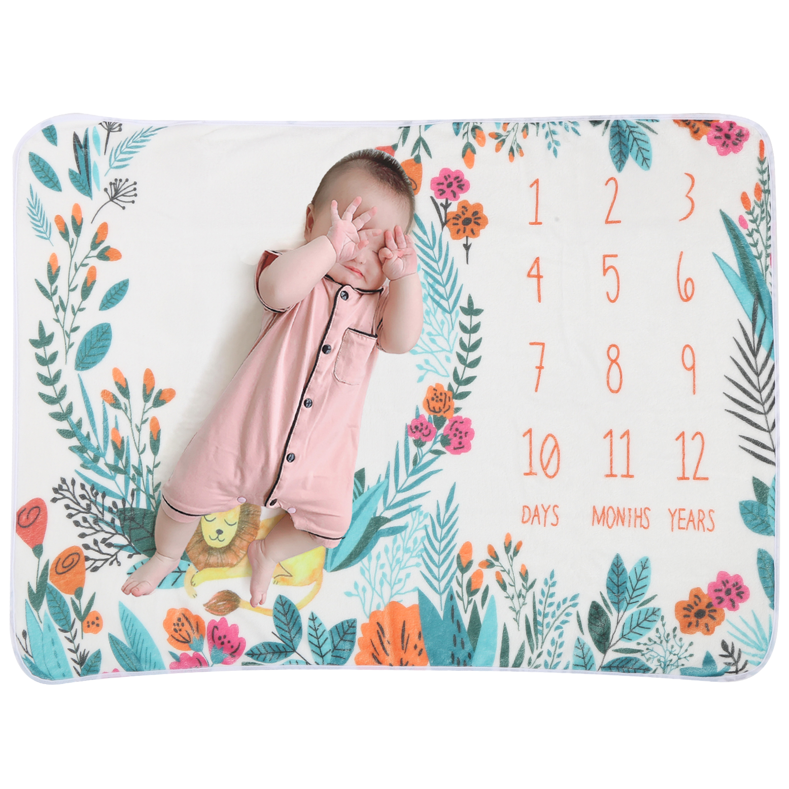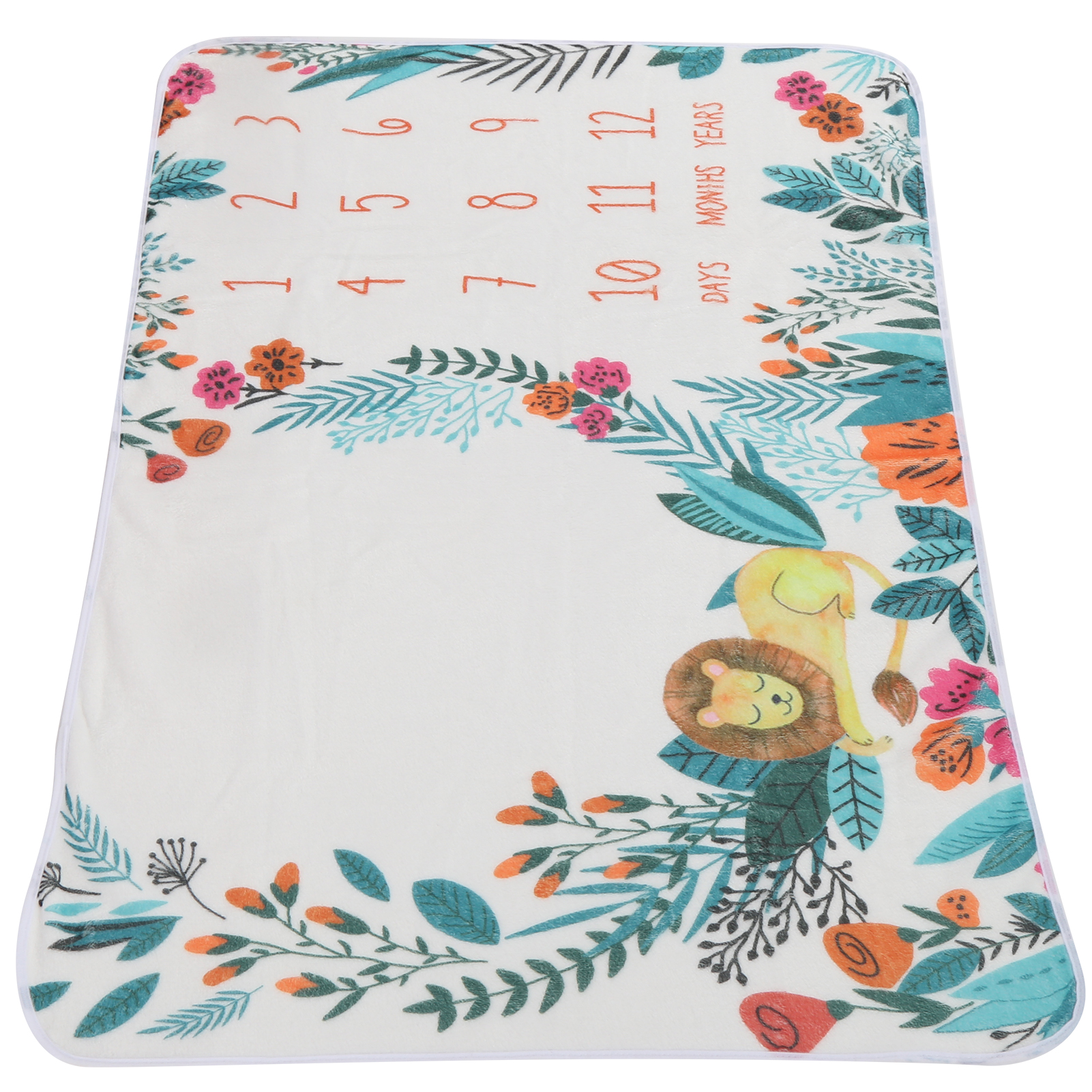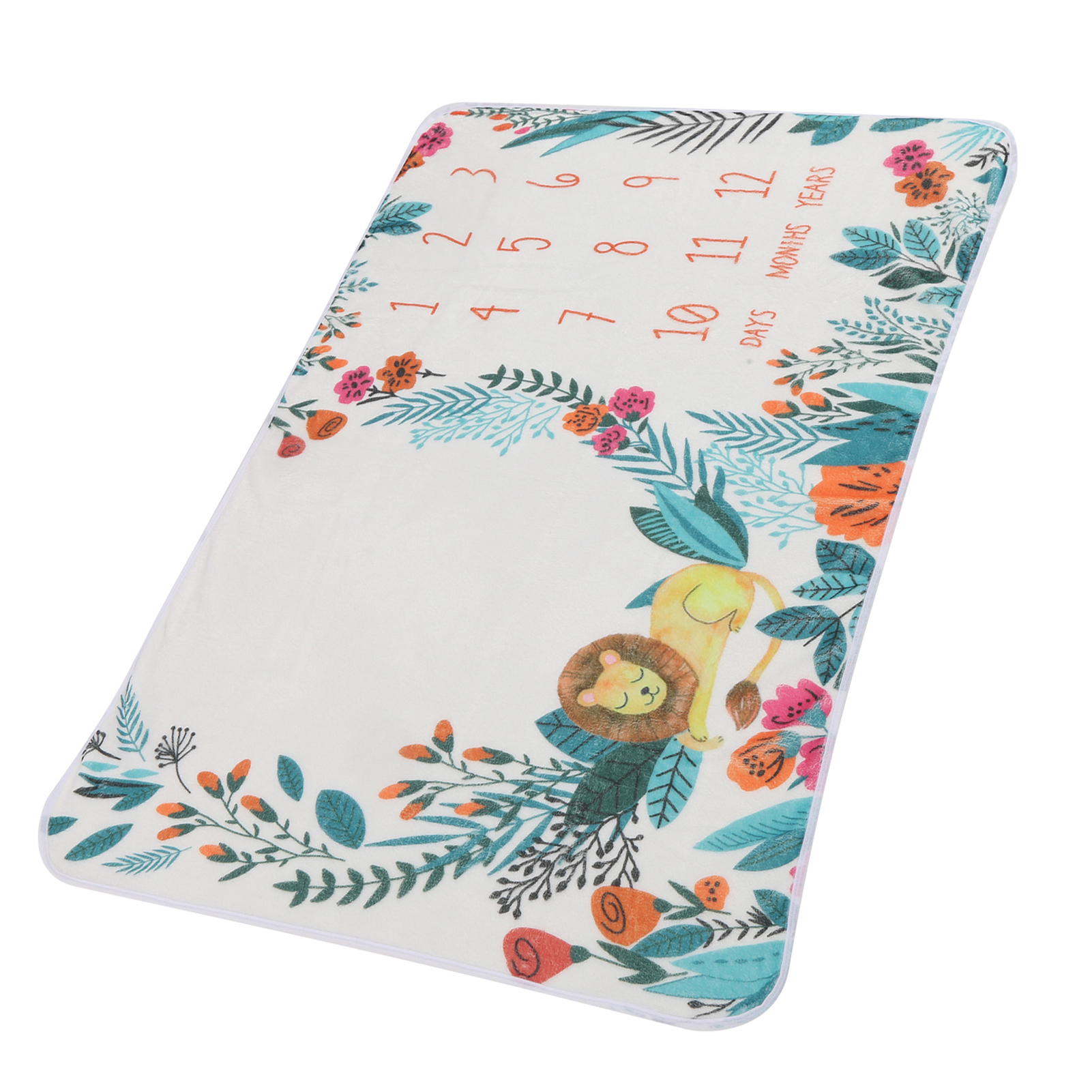 1、Made of high quality flannel, soft and skin‑friendly, dense and no lint, exquisite edging, durable. 2、Cartoon animal and flower pattern on the blanket, bright color, overall looks exquisite and beautiful. 3、Can be used as photography blanket, photography background cloth, photography props, bath towels, wraps, blankets. 4、A simple yet cute photography blanket allows mom to record every moment of baby's growth. 5、Foldable design, light weight and portable, easy to store and carry, perfect for travel use.
