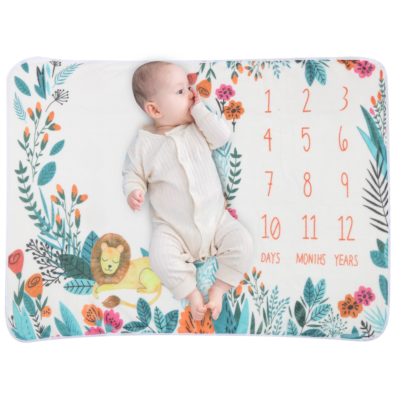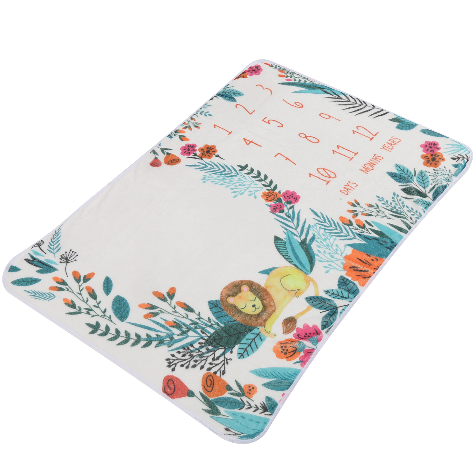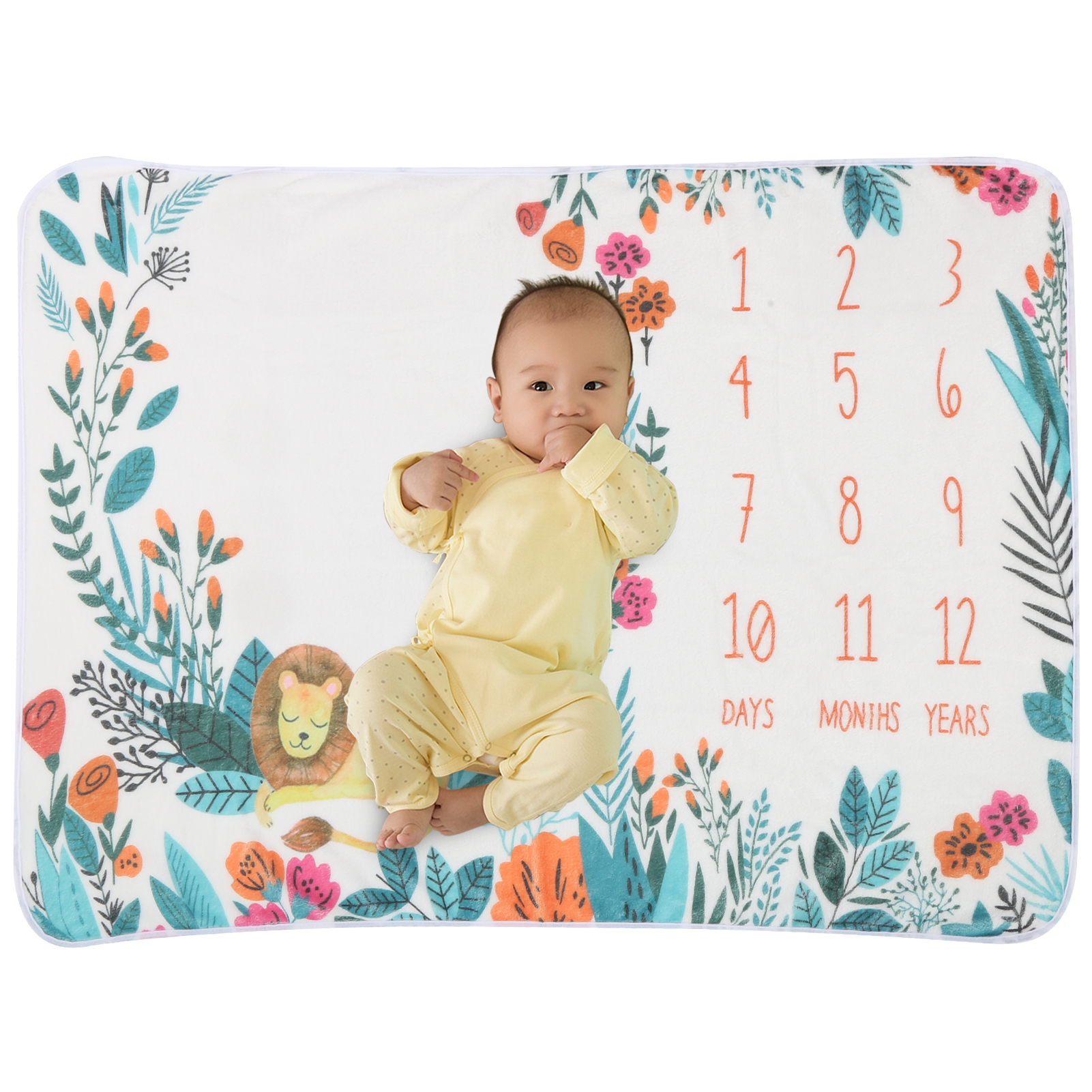 1、Made of high quality flannel, soft and skin‑friendly, dense and no lint, exquisite edging, durable. 2、Cartoon animal and flower pattern on the blanket, bright color, overall looks exquisite and beautiful. 3、Can be used as photography blanket, photography background cloth, photography props, bath towels, wraps, blankets. 4、A simple yet cute photography blanket allows mom to record every moment of baby's growth. 5、Foldable design, light weight and portable, easy to store and carry, perfect for travel use.