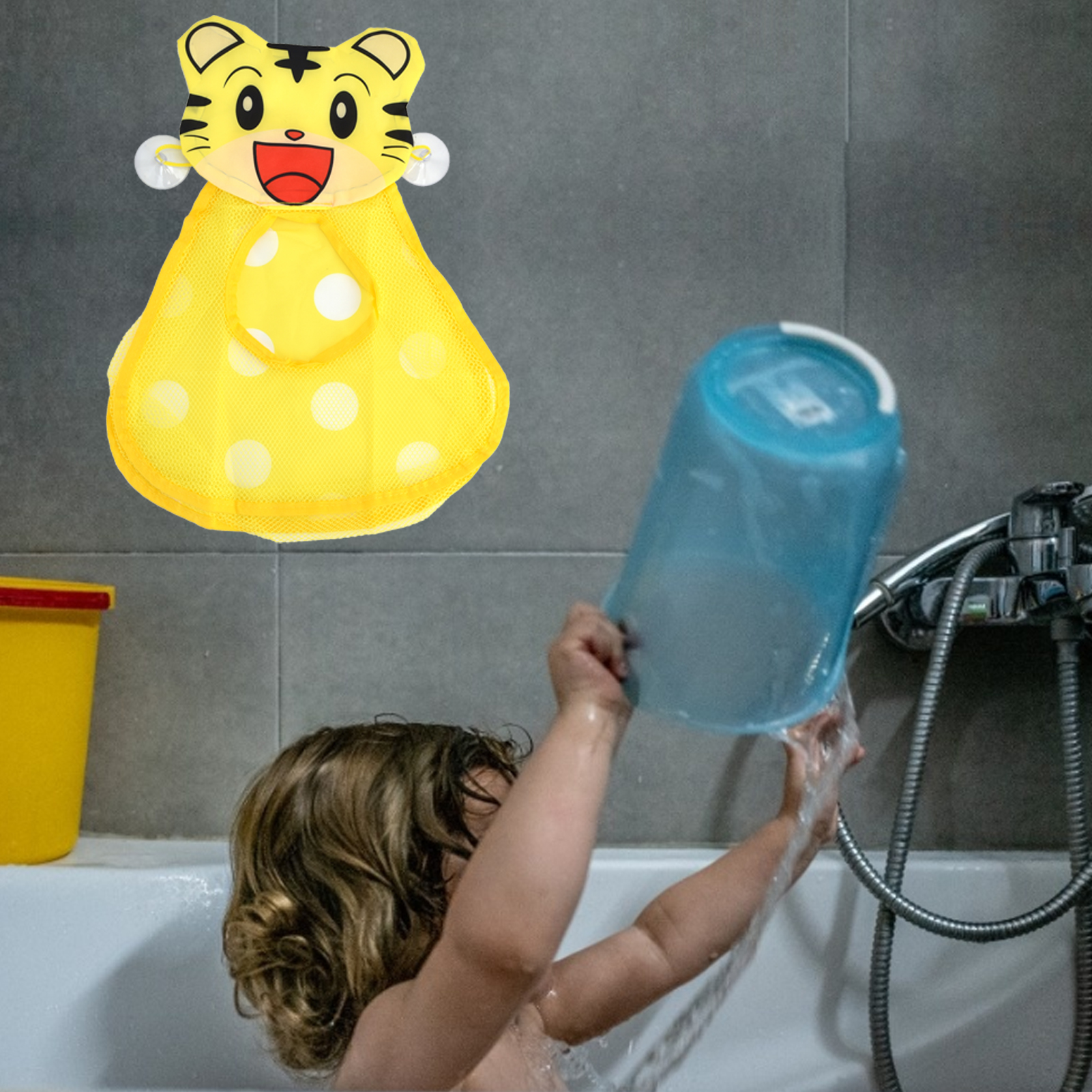 1、The bathtub toy storage bag is specially designed to store your baby's bath toys. 2、The unique tiger shape design can provide babies with different visual and sensory experiences. 3、Equipped with two suction cups, allowing you to easily hang the storage bag on the wall. 4、Made of high quality raincoat cloth material, stable and durable, can be used for a long time. 5、Washable and reusable, this storage bag can be used for many times after washing.