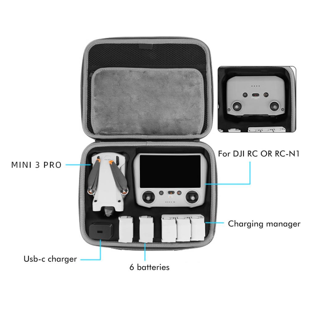 1、1. Using high-quality materials, and wear-resistant materials, effectively protect the drone and its accessories; provide 360-degree protection for your compatible for Mini 3 Pro drone and accessories to avoid collision damage and scratches. 2、2. The shape is simple and stylish, and the large capacity can accommodate small accessories such as drones, remote controls, batteries, and charging housekeepers. 3、3. There is a mesh bag for accessories on the top cover, and accessories such as data cables, memory cards, filters, etc. can be placed as needed. 4、4. It can be carried by hand or shoulder strap, which is comfortable to carry, easy to travel, and convenient to travel. 5、5. Applicable models: Portable bag compatible for Mini 3 Pro drone/remote control and accessories.