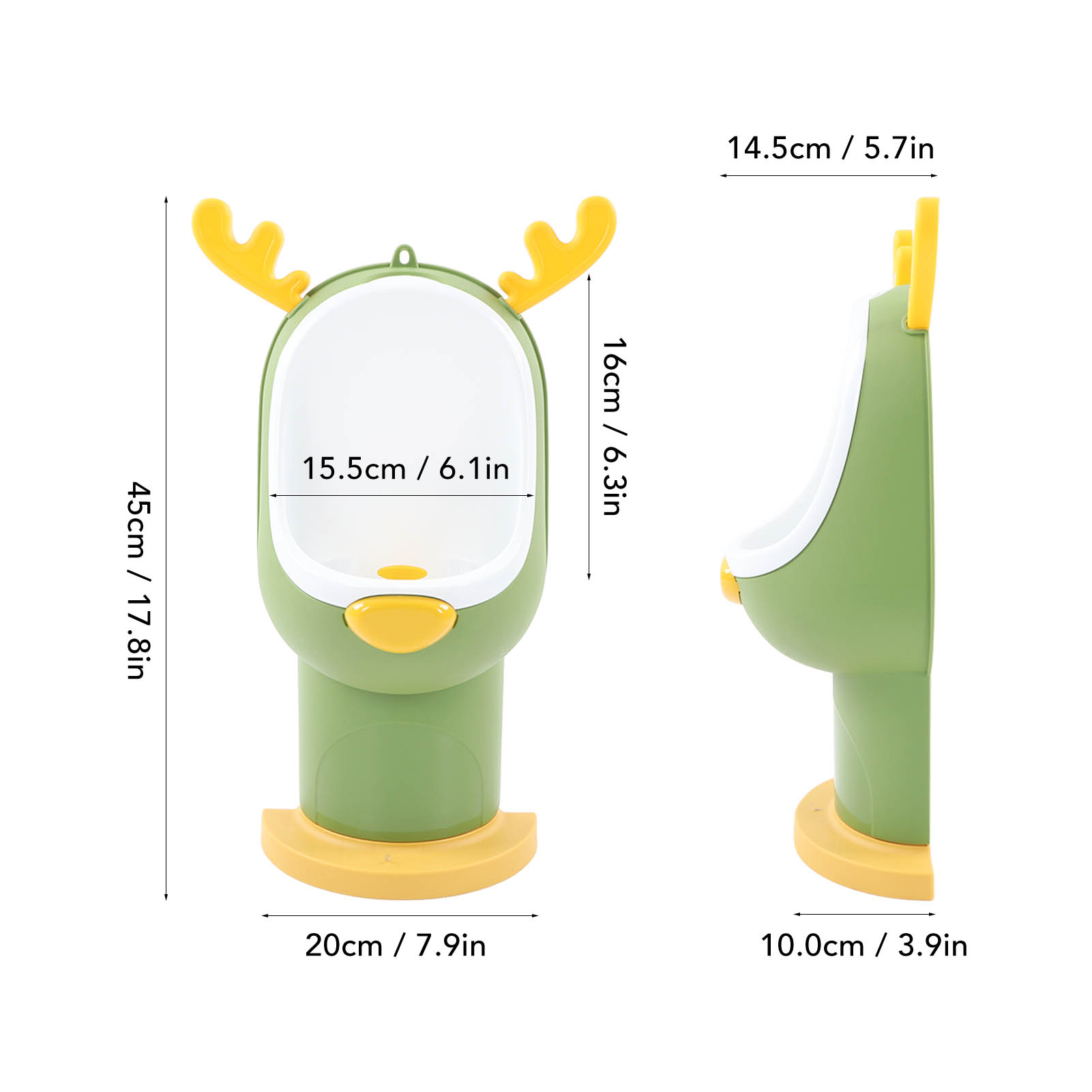 1、Fun Potty Training: Cute and lovely potty toilet provides fun targets for boys to aim at during their potty time adventures, take pleasure in developing the habit of going to the toilet independently. 2、Adjustability: Children urinal potty comes with a 6.6ft tube and adjustable three sizes. It can be easily disassembled, lightweight, and easy to clean. 3、Drainage Design: Potty training urinal comes with a drainage tube to assist with capturing waste and redirecting water into the floor drain to save energy. 4、Cute Shape: Standing potty practice urinal has a cartoon animal shape, making it the perfect collectible to help boys pee comfortably and conveniently. 5、Great Gift Choice: Children potty urinal is the perfect gift to family, friends, and parents expecting a baby or as a surprise on Halloween, Christmas.
