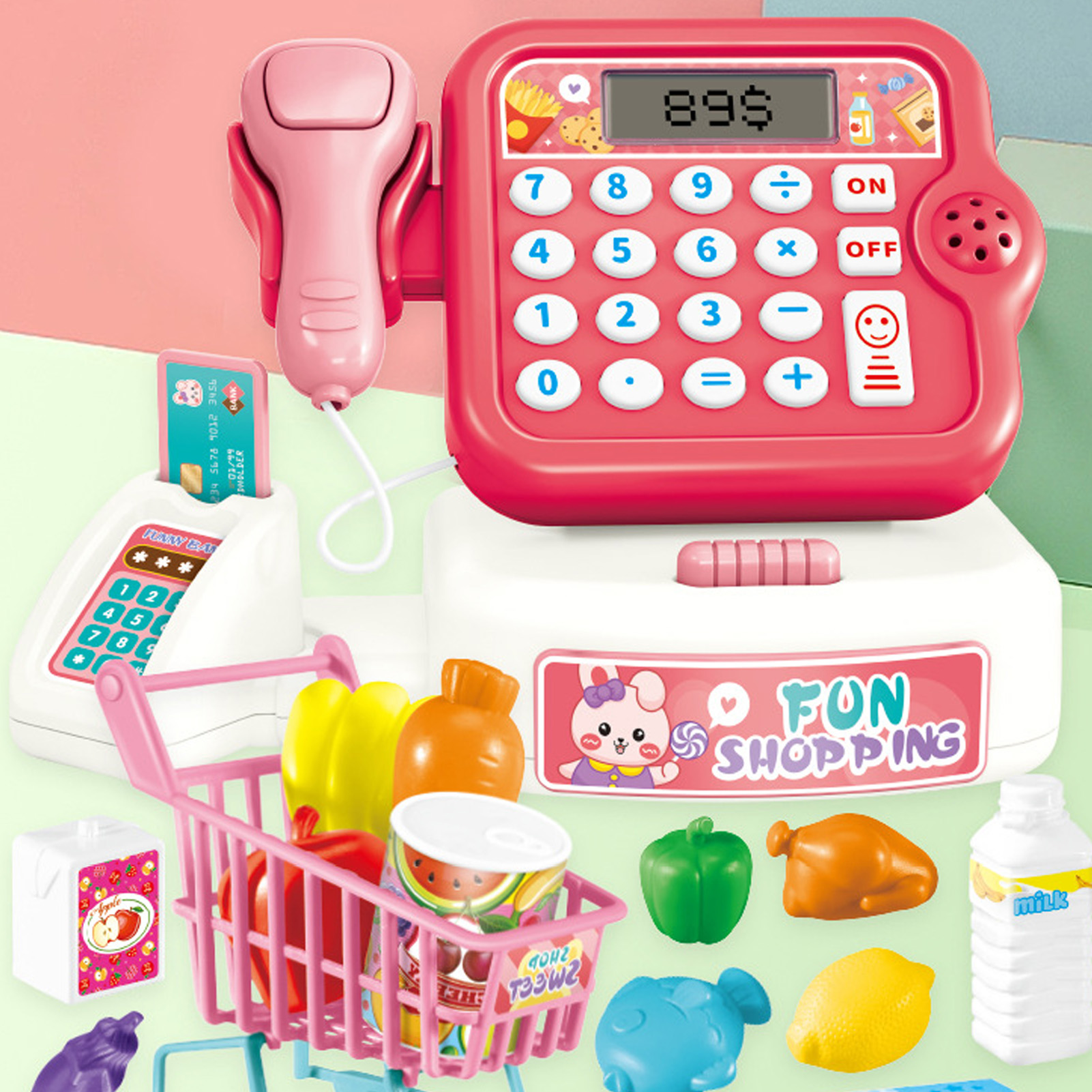 Cash Register Playset Stimulation Cosplay Learning Calculation Shopping Checkout Money Till Toy for Children