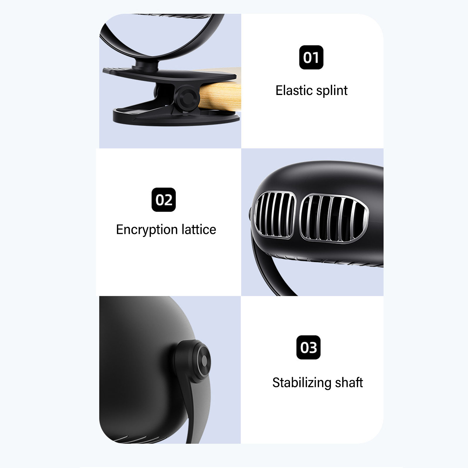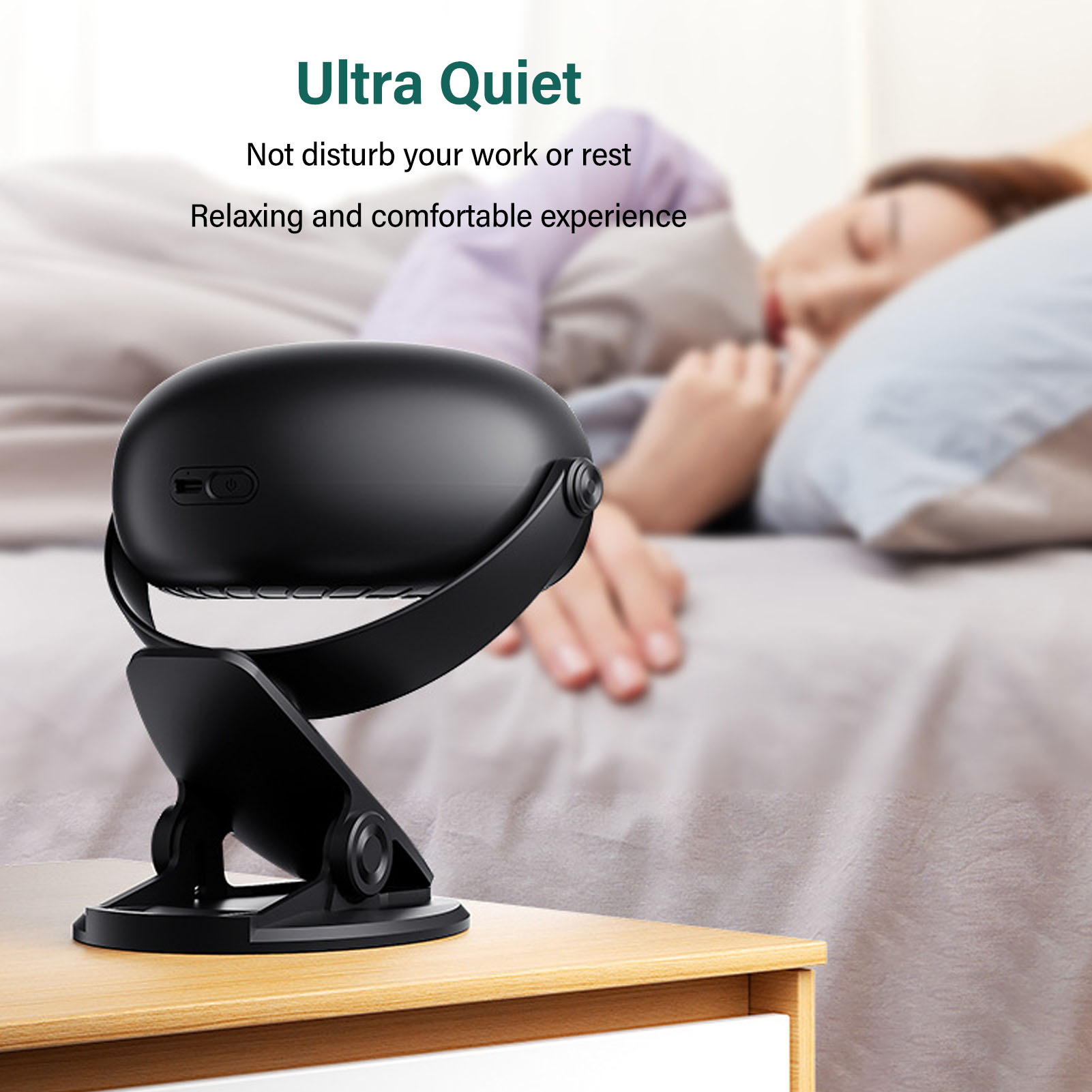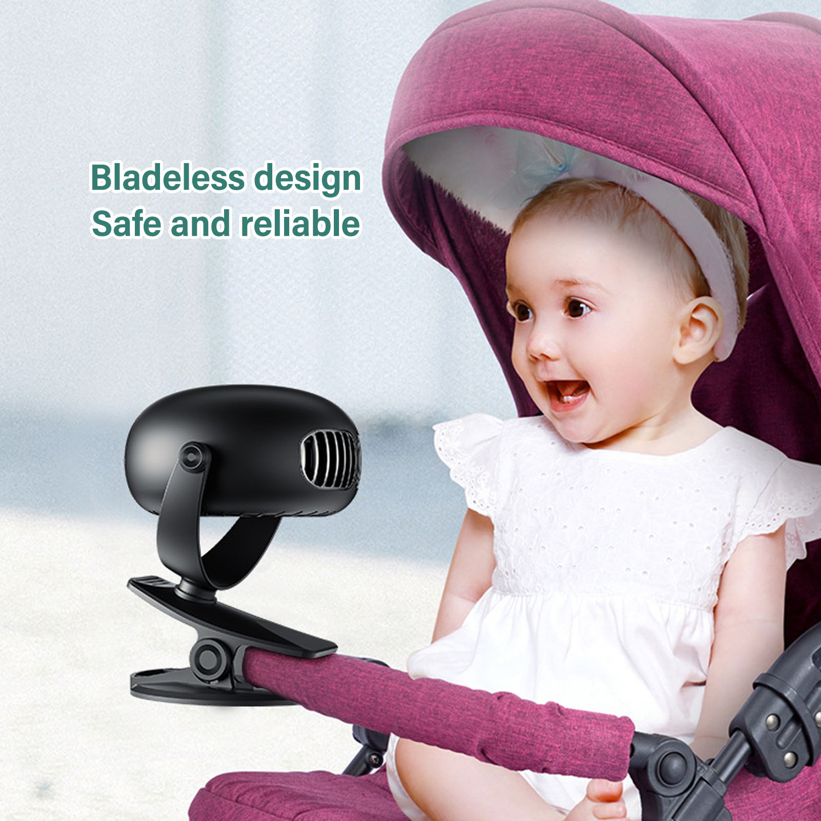 1、Bladeless Design: Clip on fan features a bladeless technology design, safe and reliable, will not harm your fingers, providing powerful yet gentle wind for hot summer use. 2、Ultra Quiet: Portable clip on fan adopted quiet design that will not disturb your work or rest, providing you with a relaxing and comfortable experience. Ideal for travel and camping. 3、For Various Strollers: Desk bladeless fan adopted clip on design, easy to install on a variety of objects, such as baby strollers, desktops, etc., which is easy and convenient to use. 4、Portable Design: Clip on desk fan is compact in size and light in weight, can be carried in a bag, which is perfect for outdoor activities, office, bedroom, camping and travel use. 5、USB Rechargeable: Desk bladeless fan built in 4000mah lithium battery, provide convenient and quick charging, allows you to use it anytime without worrying about battery depletion.