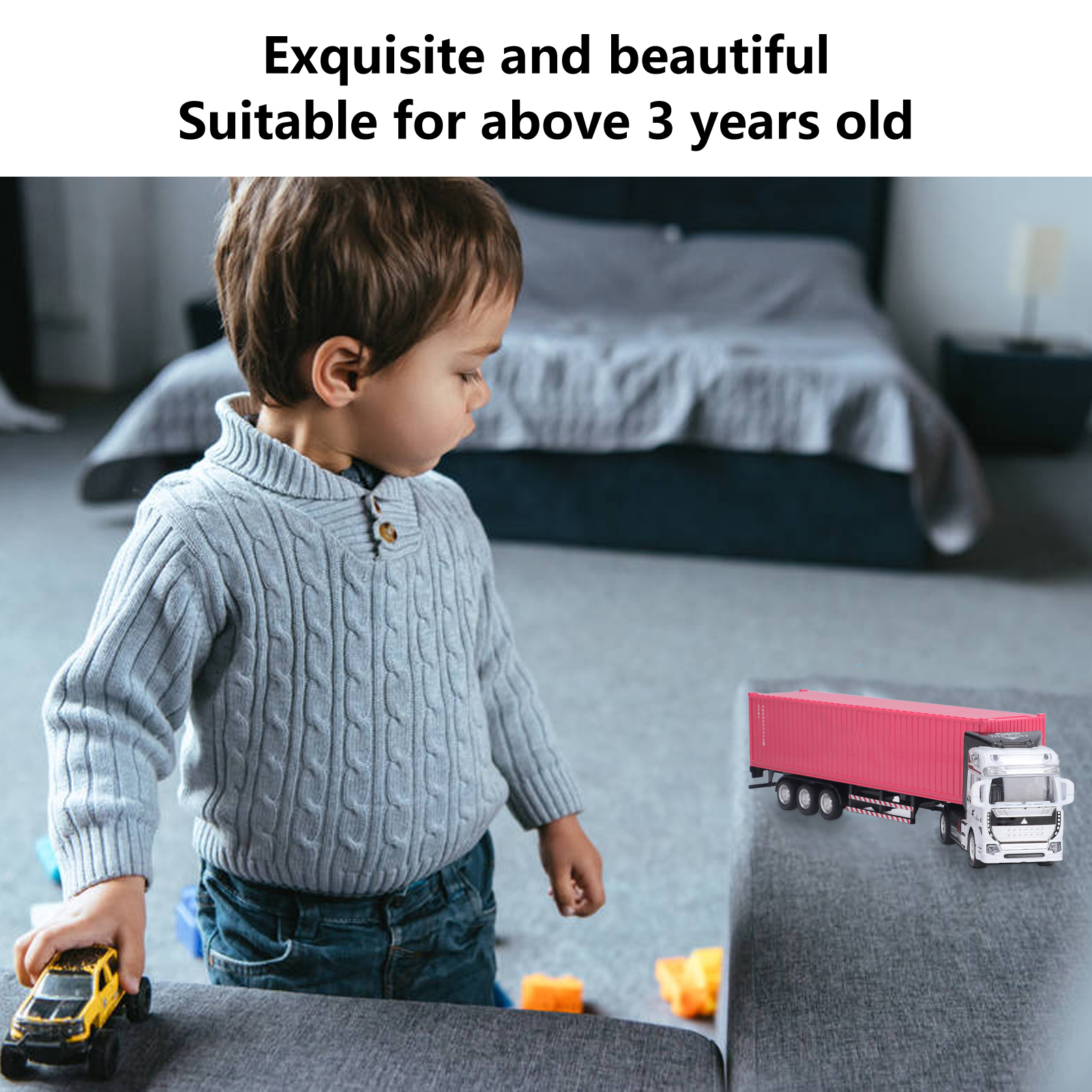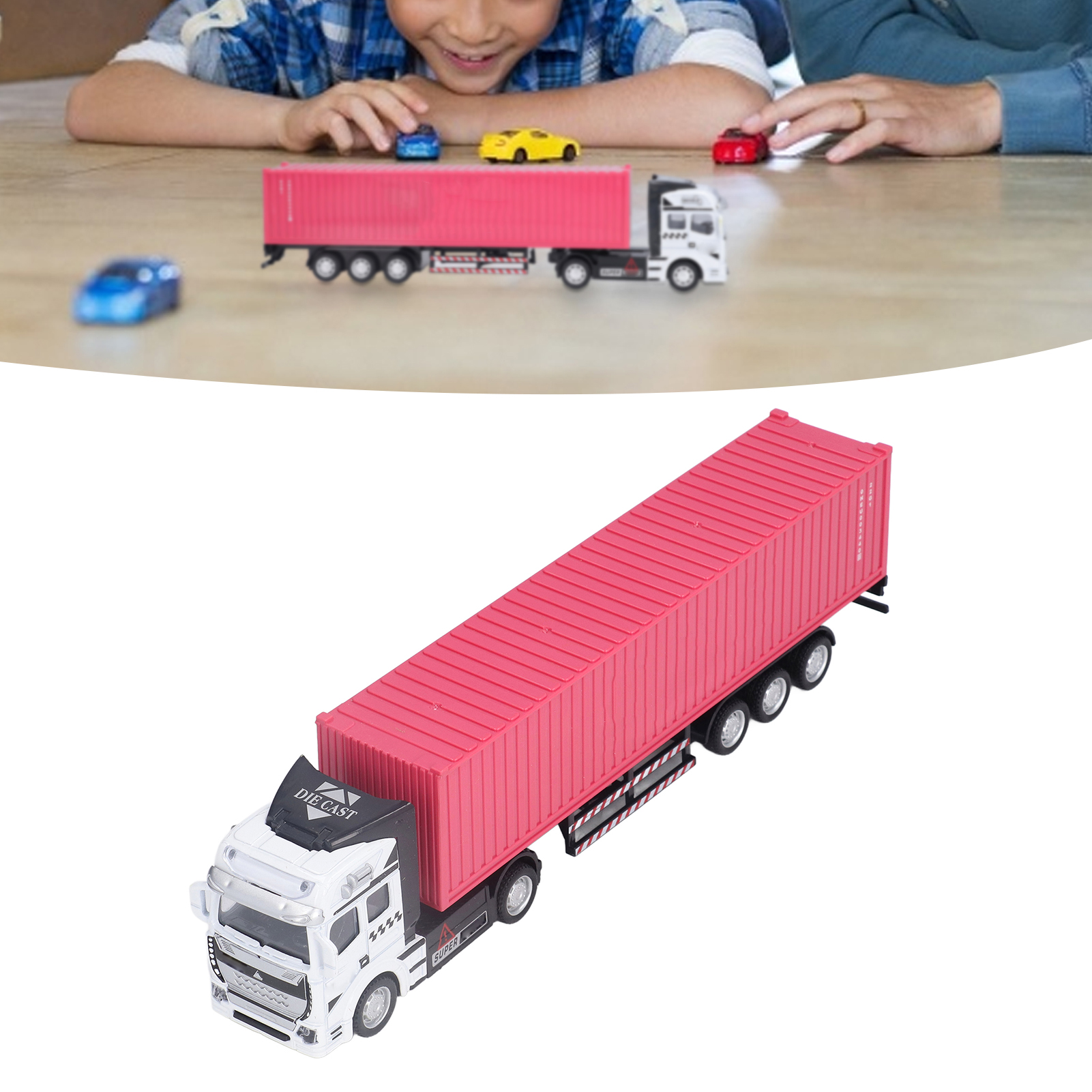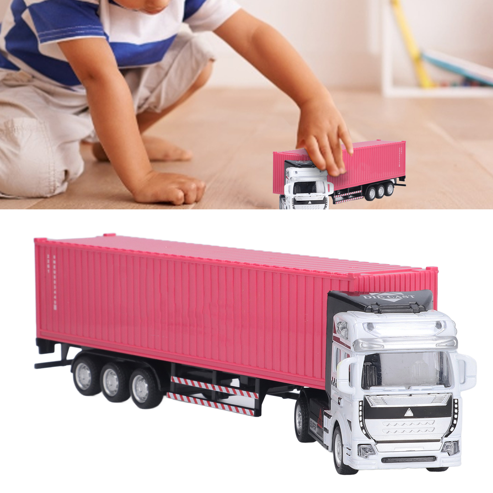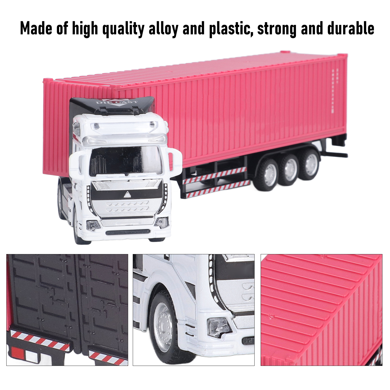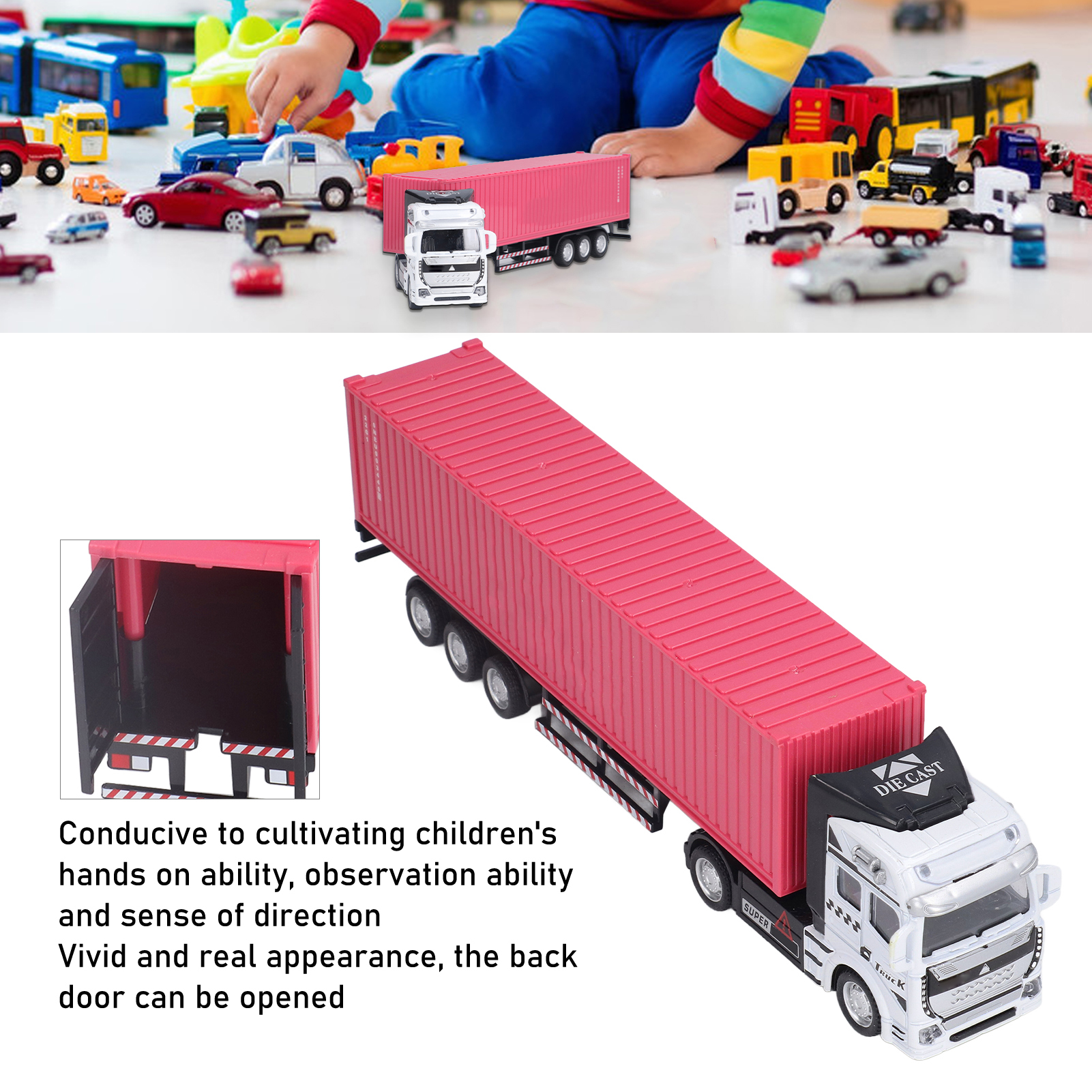 1、Vivid Real: With fine workmanship and excellent craftsmanship, the truck model has a vivid and real appearance, and the back door can be opened. 2、High Quality Materials: Made of high quality alloy and plastic, the container truck model is sturdy, durable, not easily damaged, and has a long service life. 3、Function: Wide range of uses, which is conducive to cultivating children's hands on ability, observation ability and sense of direction. 4、Exquisite Beautiful: Using sophisticated production technology, the container truck model is exquisite, beautiful and attractive. 5、Applicable People: Suitable for above 3 years old, can be used as a perfect gift for children on Children's Day and birthday.