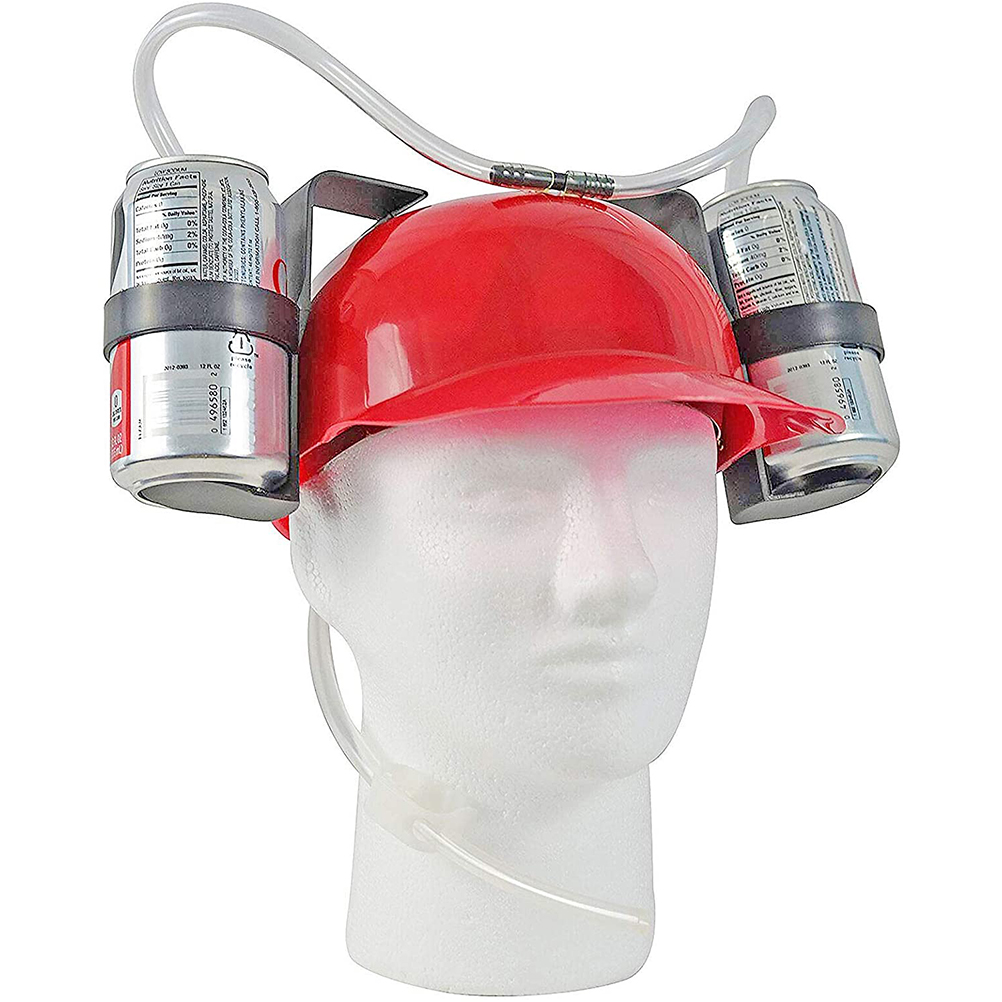 1、COOL PARTY WEAR : This drinking hat has 2 side holsters to fit most 12oz cans, so that's 24oz of one or 12oz of 2 different drinks, whatever liquids you want without using your hands! 2、 BE THE LIFE OF THE PARTY : Nothing brings the action and laughs quite like the classic gag beer helmet! 3、 DRINK UP: Whether you want to drink soda, an alcoholic beverage like beer, or something else, this hat is perfect for your needs. Simply put your drinks in the holsters and drink through the straw! 4、 ONE SIZE FITS ALL: Suitable for kids or adults! One size fits all with adjustable strap inside of the helmet. 5、 BEST PARTY GIFT: Perfect for any party, this drinking hat will have sport enthusiasts, dads, moms. Kids and children can have fun wearing it drinking soda and juice and enjoy their remarkable night.