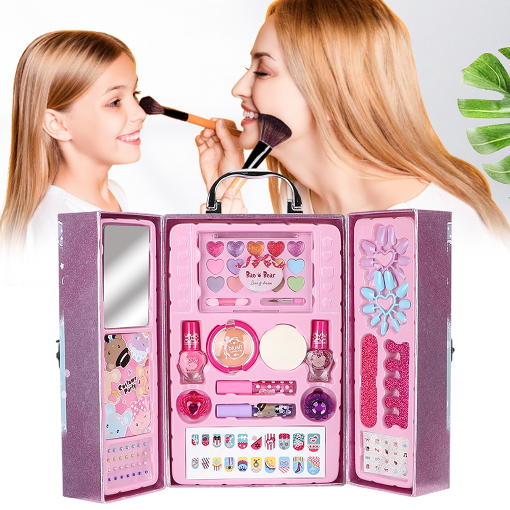 Kids Portable Cosmetics Box Children Realistic Washable Makeup Kit Girl Beauty Makeup Toy Set Gift