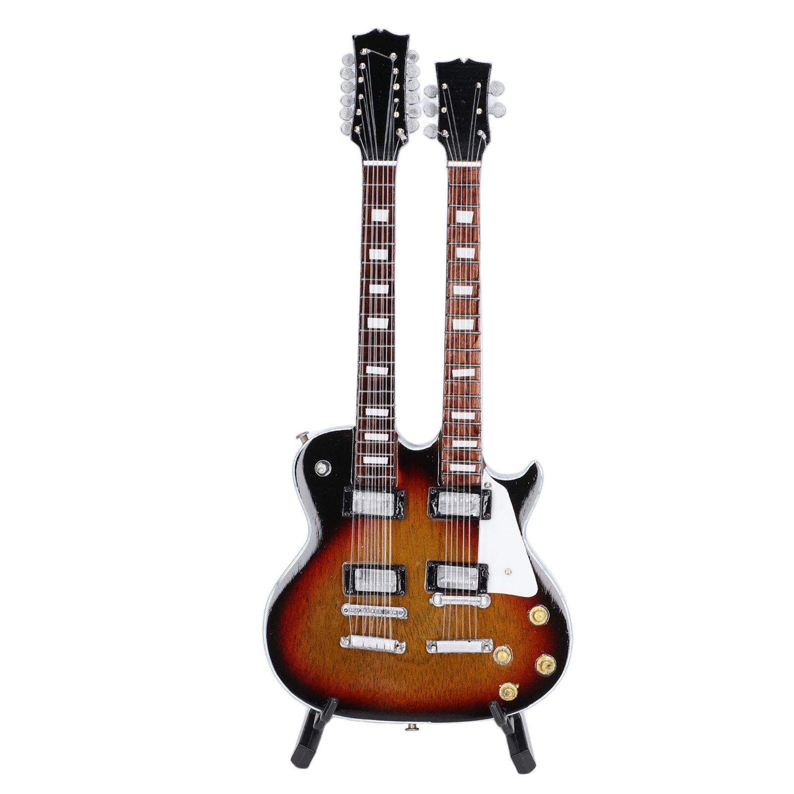 1、Mini Model: Each miniature replica guitar of electric guitar model decor is 1:4 scale with metal tuning keys. 2、Hand Made: Individually hand made with basswood and metal tuning keys, each guitar model is equipped with a high quality guitar stand. 3、Wood Material: Miniature guitar is made of basswood material, hand made, strong, durable, and can be used for a long time. 4、18cm Length: The mini electric guitar model is about 18cm in length. These decorative miniature replica guitars are great gifts. 5、Good Decoration: Model mini musical ornament has many uses, can be used as a holiday gift, but also as a home decoration.