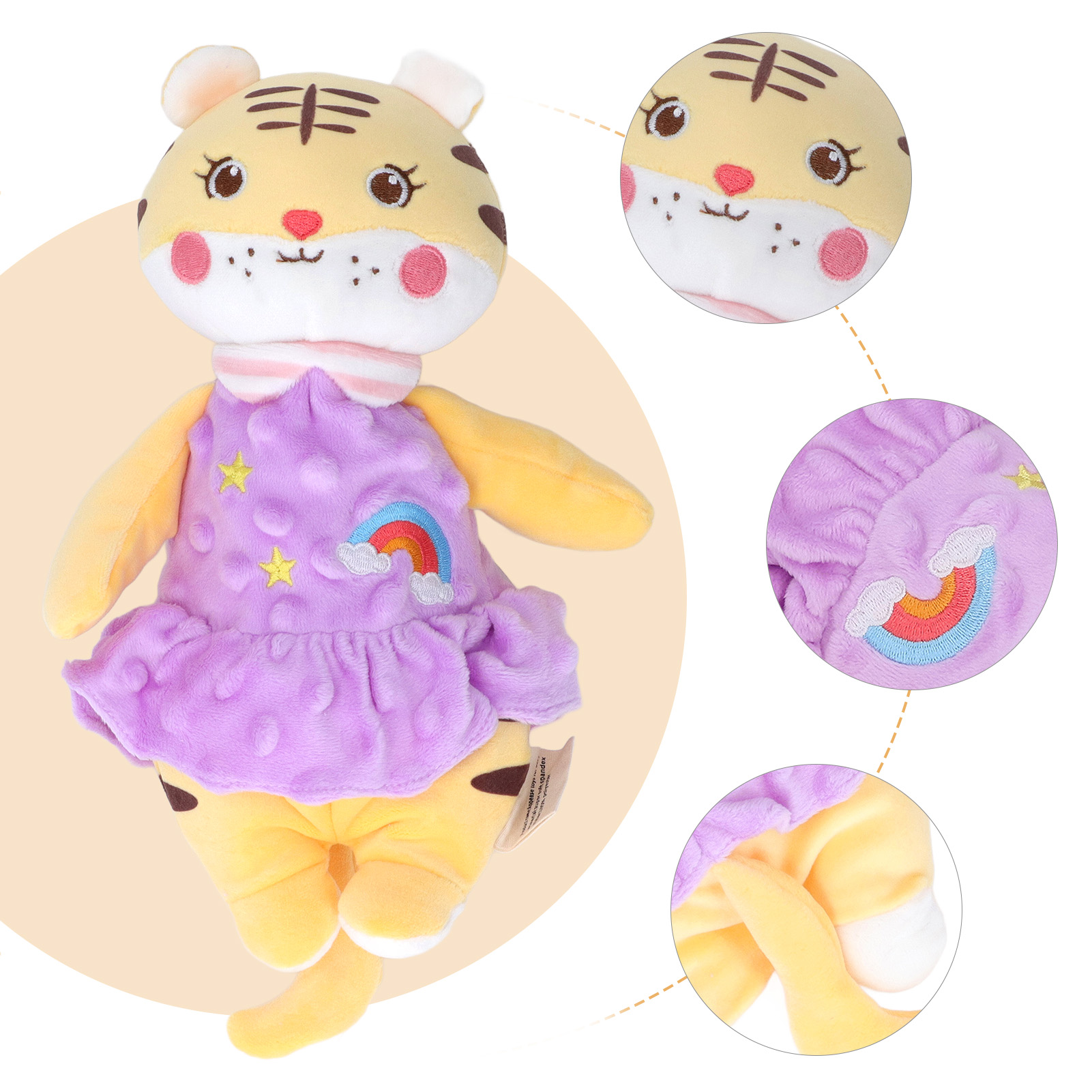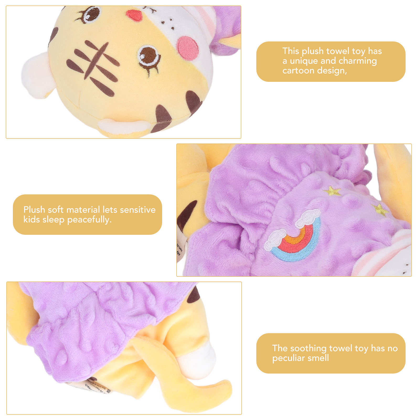 1、Bells: The soft plush comfort toy can be hung on the bed, the bells on the head can make a crisp sound, and the teether can be bitten by the baby. 2、Rich feeling: The comforting toy towel has a 3D particle touch, which promotes the development of the baby's tactile nerve during the touch process and enriches the baby's 5 senses. 3、Cartoon: This plush towel toy has a unique and charming cartoon design, which can attract your baby's attention, and it can also be used as a comfort towel. 4、Relaxing: The cute shape of the soothing plush toy is designed to soothe all of the baby's senses. Plush soft material lets sensitive kids sleep peacefully. 5、Safety: The soothing towel toy has no peculiar smell, the towel is very safe to hold, does not damage the skin, and has no bad impact on the baby's health.