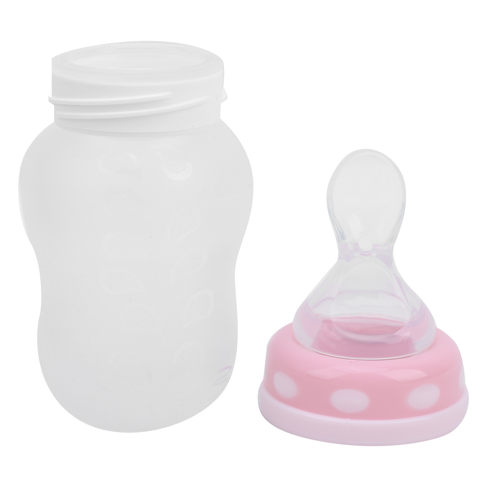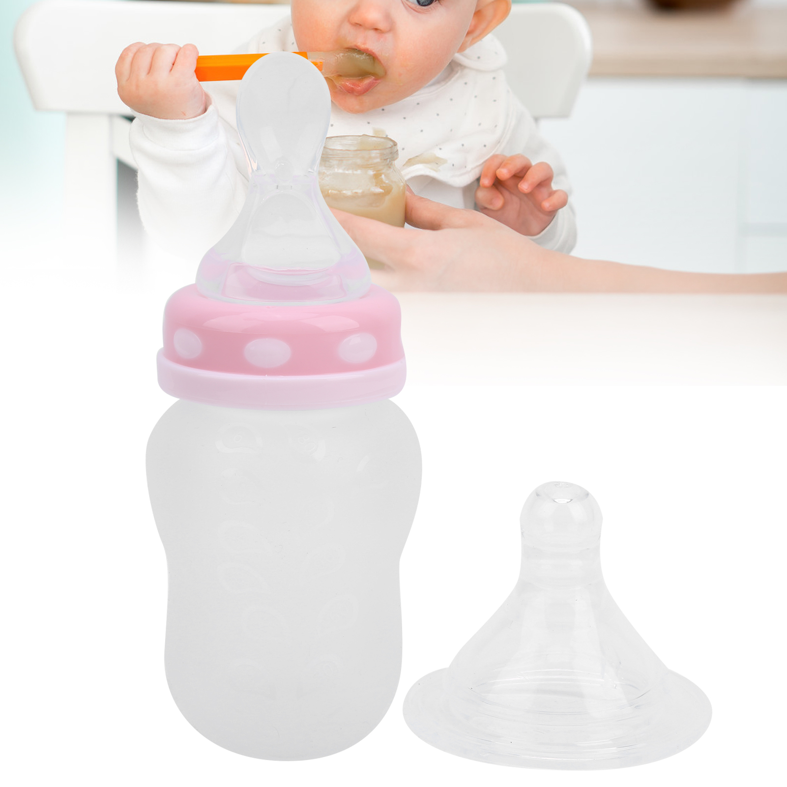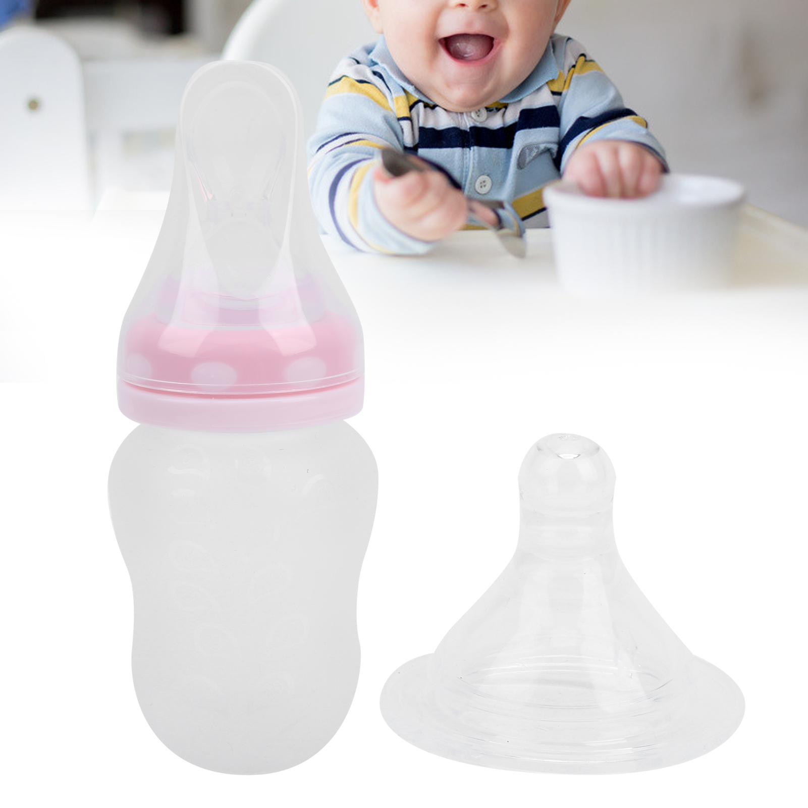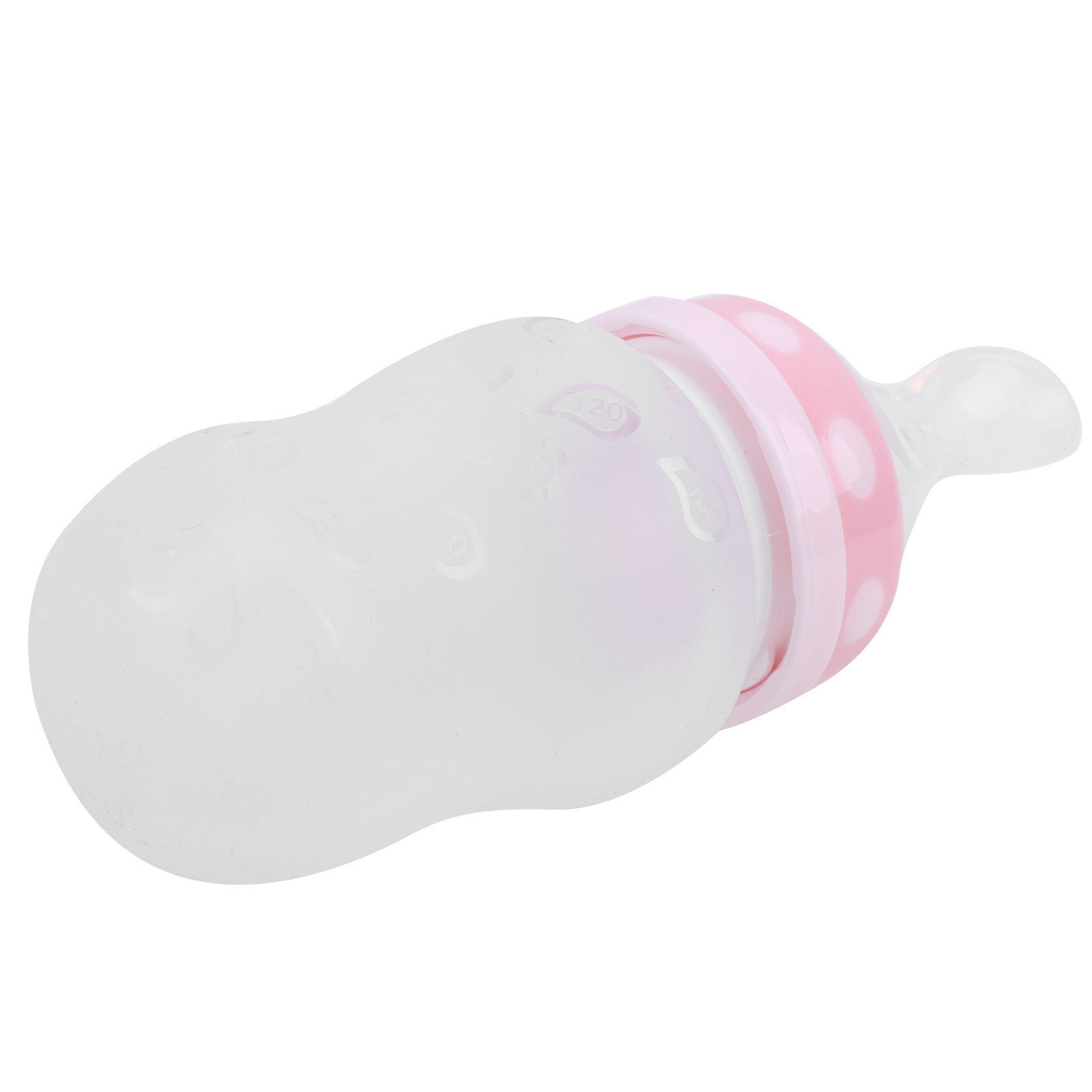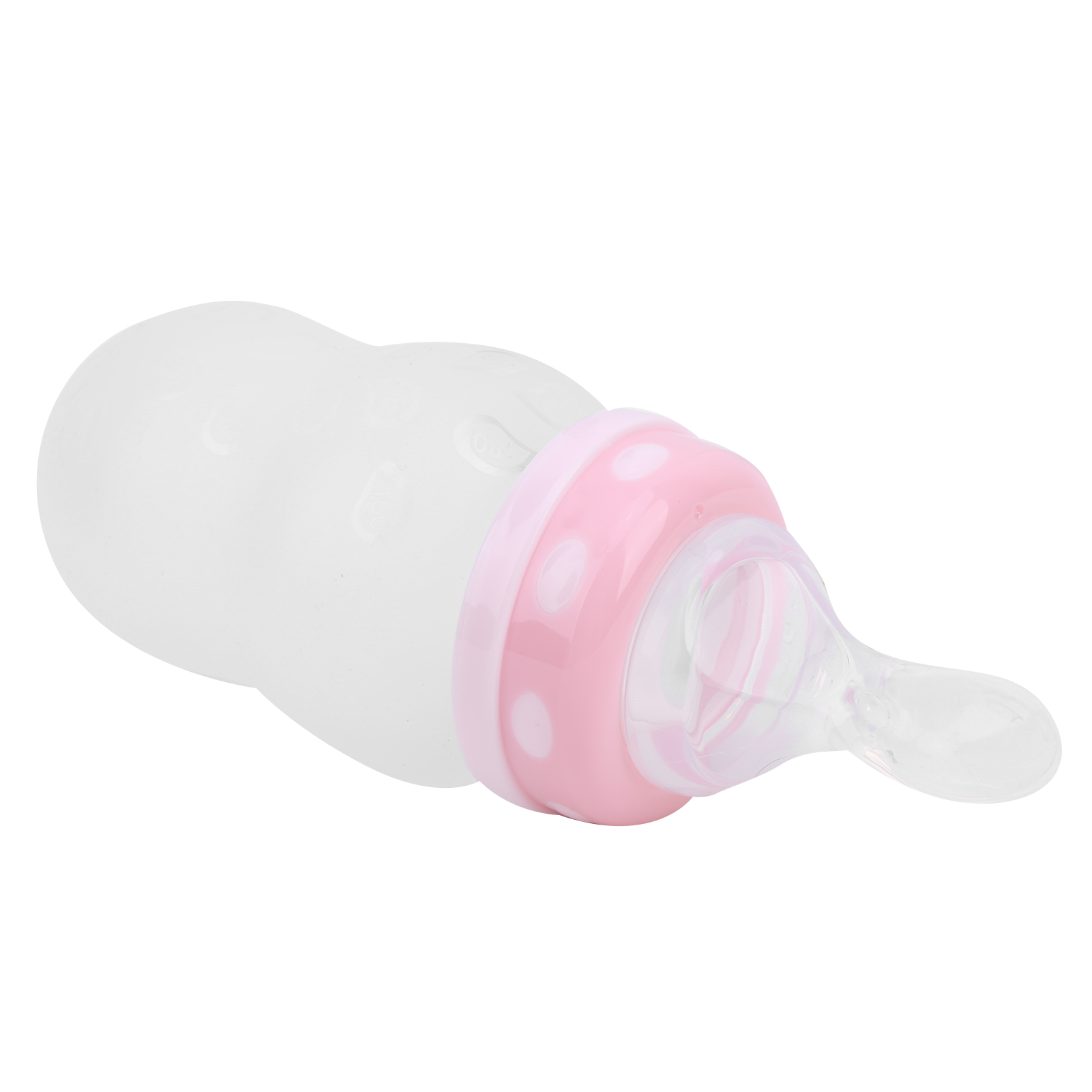 1、Feeding bottle is made of food‑grade silica gel, which is non‑toxic, tasteless, safe and durable. 2、Soft silicone bottle body can come out with a light pinch, and it is durable and not broken. 3、Bottle comes with a spoon, which effectively trains the baby to transition from the nipple to the spoon. 4、There is a scale on the bottle, which is convenient for mother to add using dosage. 5、Squeeze‑type controlled‑quantity feeding, gently squeeze feeding, controllable flows, prevent choking and sprinkling, babies can eat safely, saving time and effort. 6、Silicone spoon head, soft and elastic, not hurt gums, and protects mouth, can be used for feeding rice cereal, fruit puree, and children's medicine, can be directly installed with a pacifier as a silicone baby bottle.