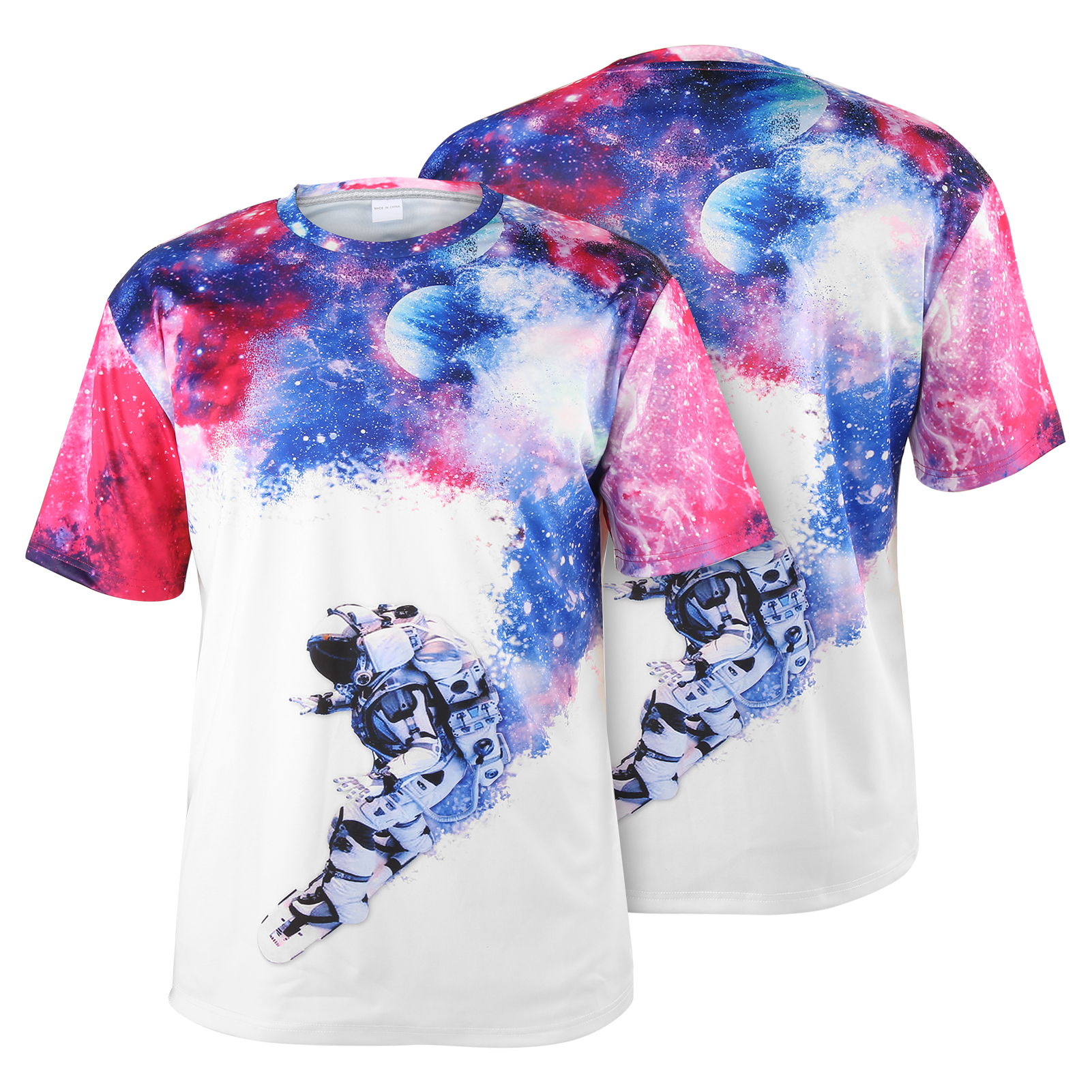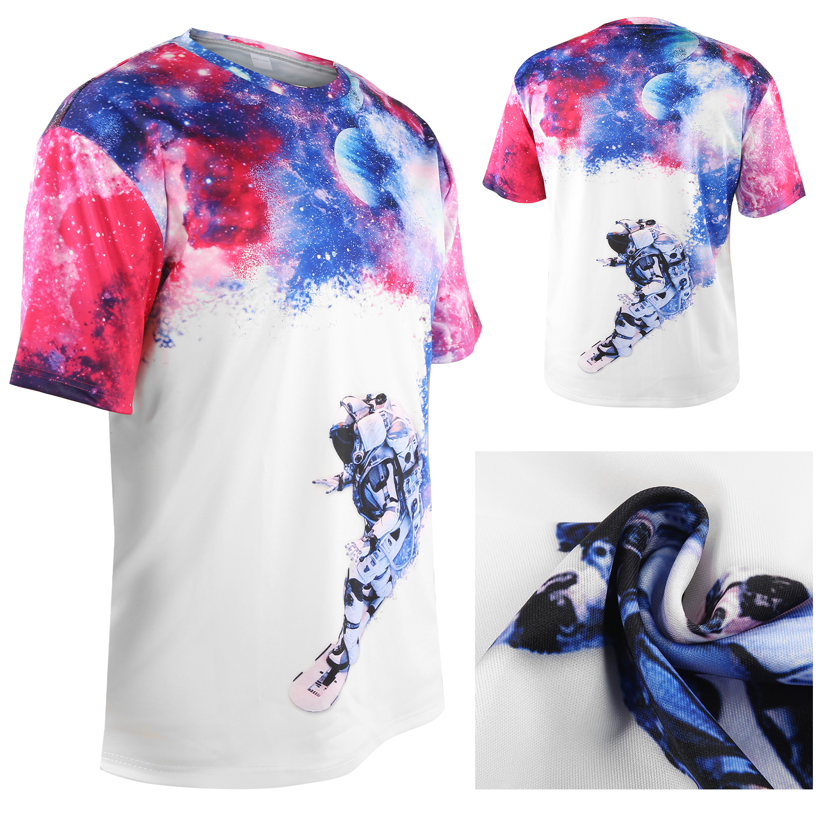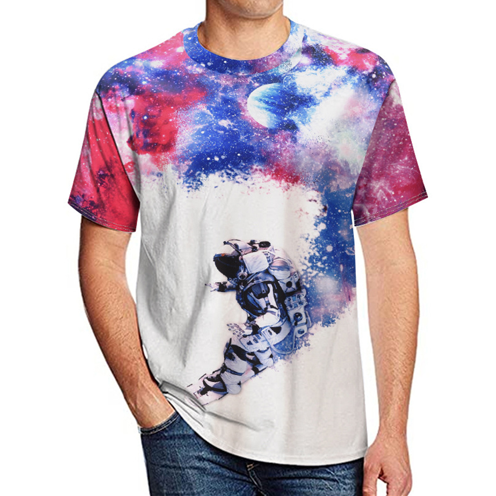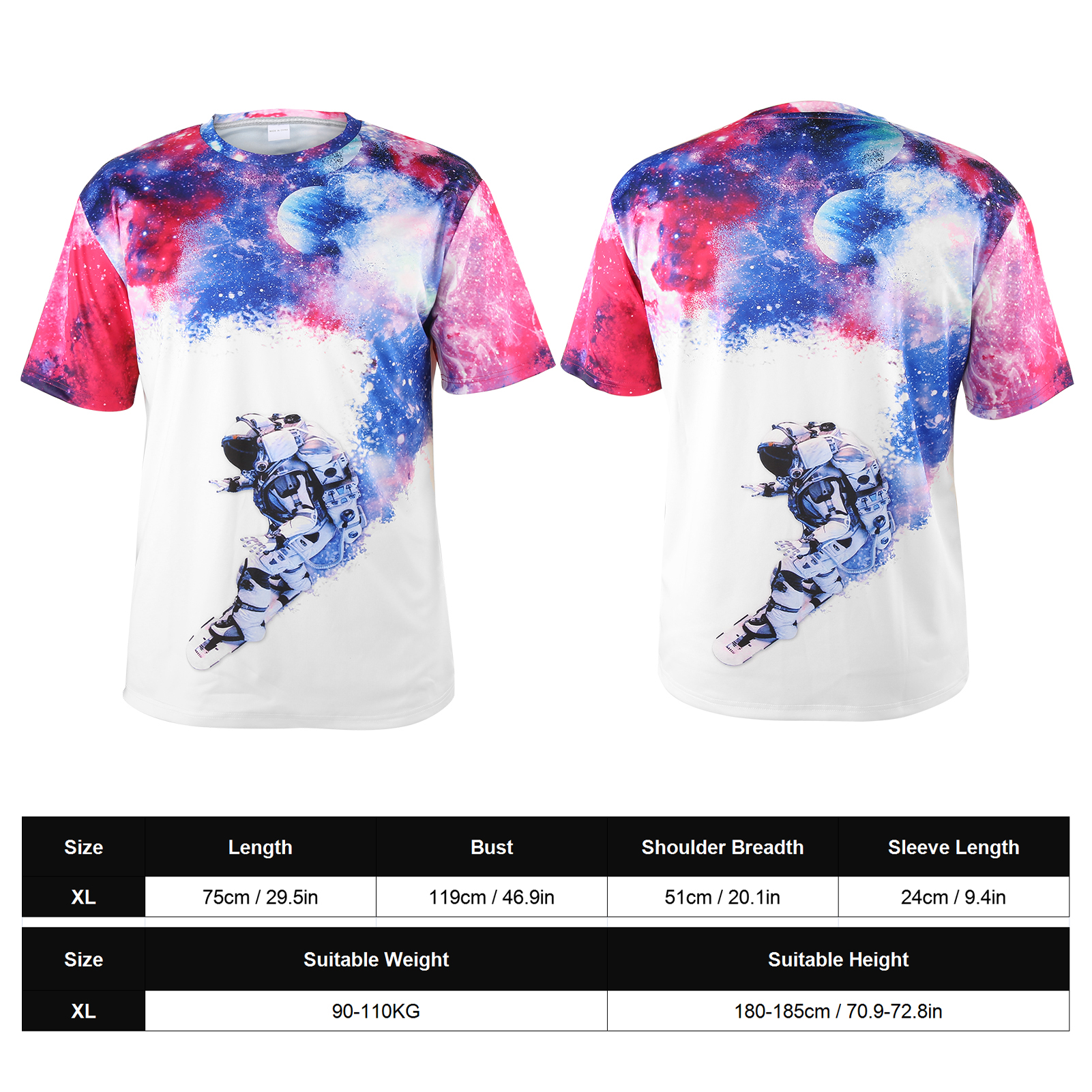 1、Classic round neck design, simple cuffs, fine and fashionable, simple hem. Splicing process, three‑dimensional cut. 2、This casual T‑shirt is suitable for daily life, casual wear, outdoor and office wandering; easy to match with jeans or shorts. 3、Printing and dyeing process, high‑quality fabrics. Soft to touch, not easy to crease or deform, skin‑friendly and elastic. 4、Exquisite printing pattern, eco‑friendly and no pollution, overall looks unique and stylish, suitable for adult men and teen boy. 5、Suitable for different occasion. Multiple sizes of T‑shirt are optional, you can choose according to needs.