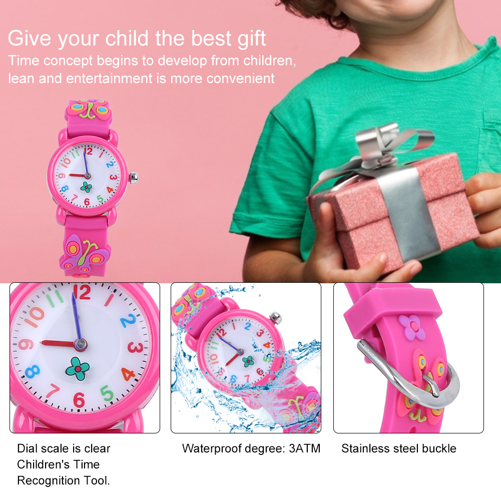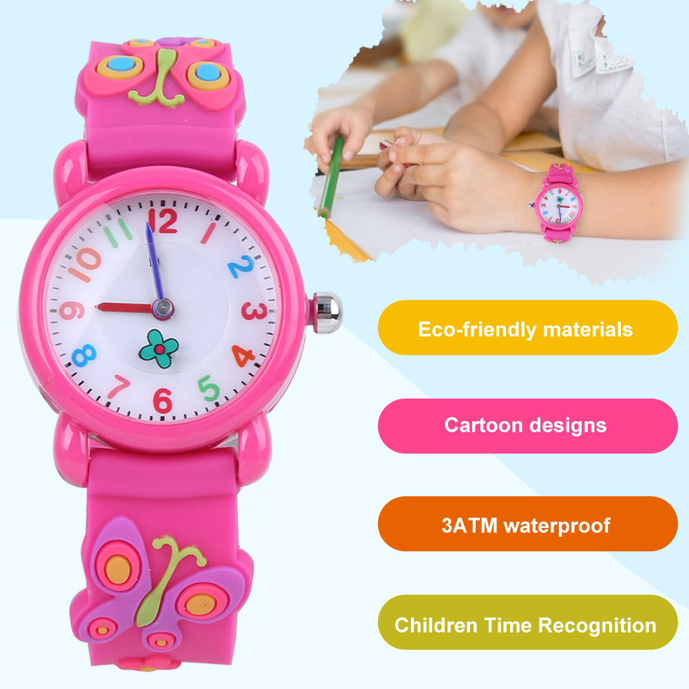 1、Dial scale is clear, an important tool for children to recognize time. 2、Beautiful pattern on the watchband, bright color, overall looks cute and exquisite, children will like it. 3、Adopt quality movement to provide accurate time keeping, long service life. 4、Easy to adjust the length, convenient to put on and take off. 5、Made of eco-friendly material, waterproof designs, safe and durable.