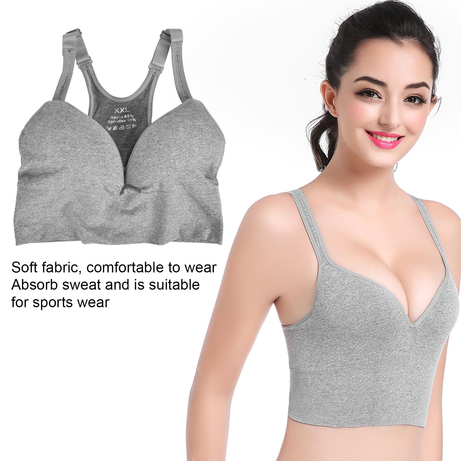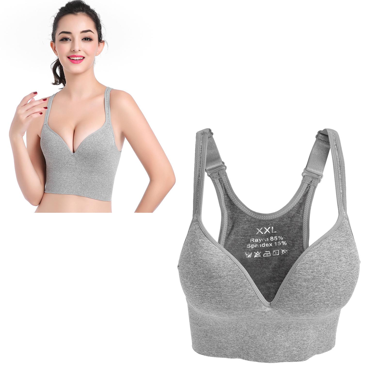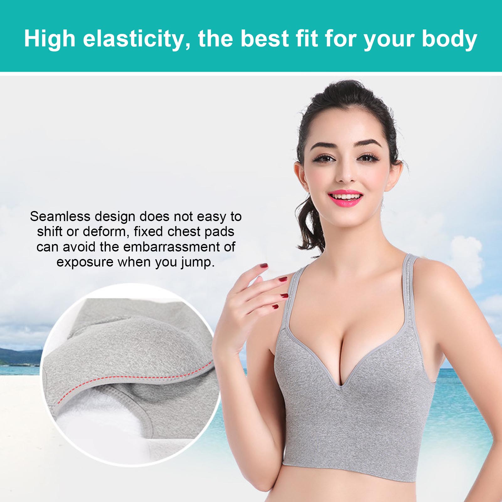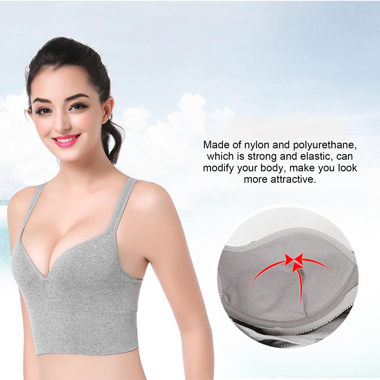 1、This sports bra provides good support for your breasts without causing them to feel depressed when you doing exercise. 2、Made of nylon and polyurethane, which is strong and elastic, can modify your body, make you look more attractive. 3、Seamless design does not easy to shift or deform, fixed chest pads can avoid the embarrassment of exposure when you jump. 4、Three‑dimensional design can gather the auxiliary breast, make your breast looks more round and full! 5、You can wear it as running, playing basketball, tennis, boxing or you can also wear it when you are pregnant.