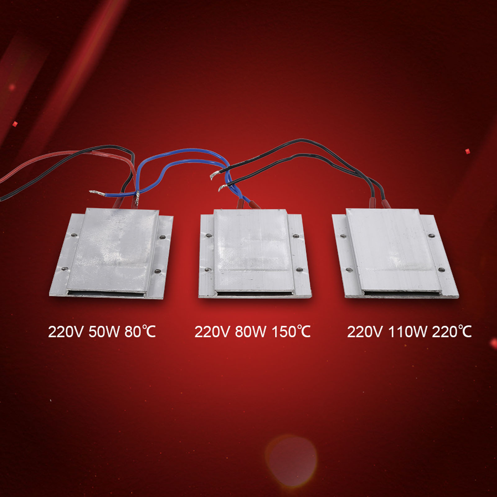 1、Made of Aluminum shell, eco-friendly, durable and study to use 2、Constant temperature, surface insulation, safe to use and can be dry heated for a long time 3、3 types with big power for you to choose: 50W, 80W and 110W. All can be easily used to heat solids and gases 4、Having a 15cm lead wire provided to you, which is high temperature resistant, easy installation 5、Widely used in foot bath devices, water boiler, yogurt maker, chocolate extrusion, coffee maker. Also used for car and components preheating