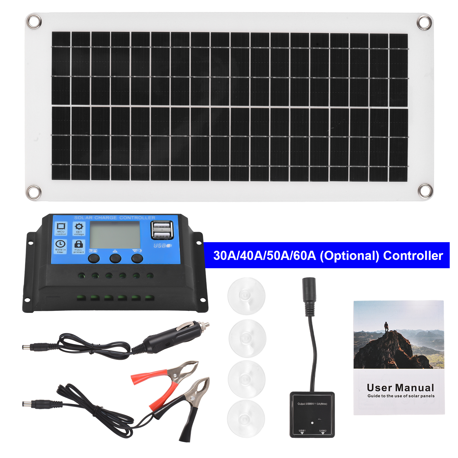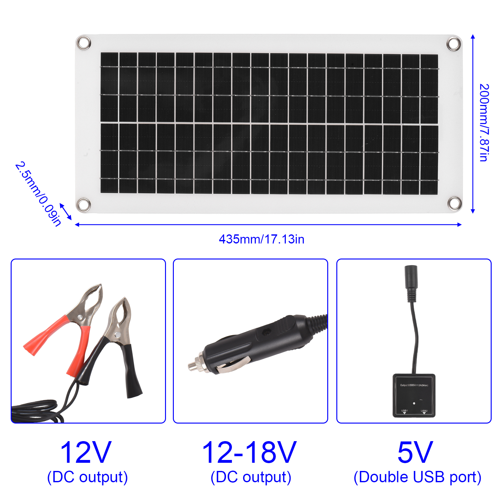 1、【High Efficiency】 The 20W polycrystalline solar panel kit is designed to provide high efficiency power generation. With its advanced technology, it can convert sunlight into electricity with maximum efficiency, ensuring optimal performance and energy output. 2、【Versatile Charging Options】 Equipped with a 12V dual USB output battery panel controller, this solar kit offers versatile charging options. It can be used to charge various devices such as mobile phones, car batteries, and RV batteries, making it ideal for automotive, boating, and camping applications. 3、【Reliable and Durable】 Built to withstand harsh weather conditions, this RV solar panel kit is made from high-quality polycrystalline silicon materials that are resistant to corrosion. It is designed to be durable and long-lasting, providing reliable power generation even in challenging environments.