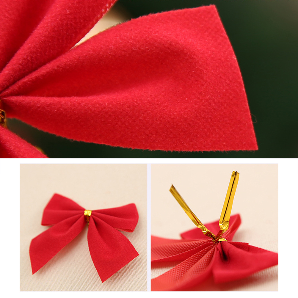 1、Small bow: Mini cute bow, can be used for decorative parties, weddings, etc. 2、 Applicable to: You can use them to decorate Christmas trees, garlands, rattan, etc., to create a romantic atmosphere. 3、 A variety of colors: Red, gold, silver three colors, to give you more choices. 4、 Exquisite craftsmanship: Smooth surface, not easy to fade, durable. 5、 Outstanding quality: Made of non-woven and polyester, lightweight and reusable.