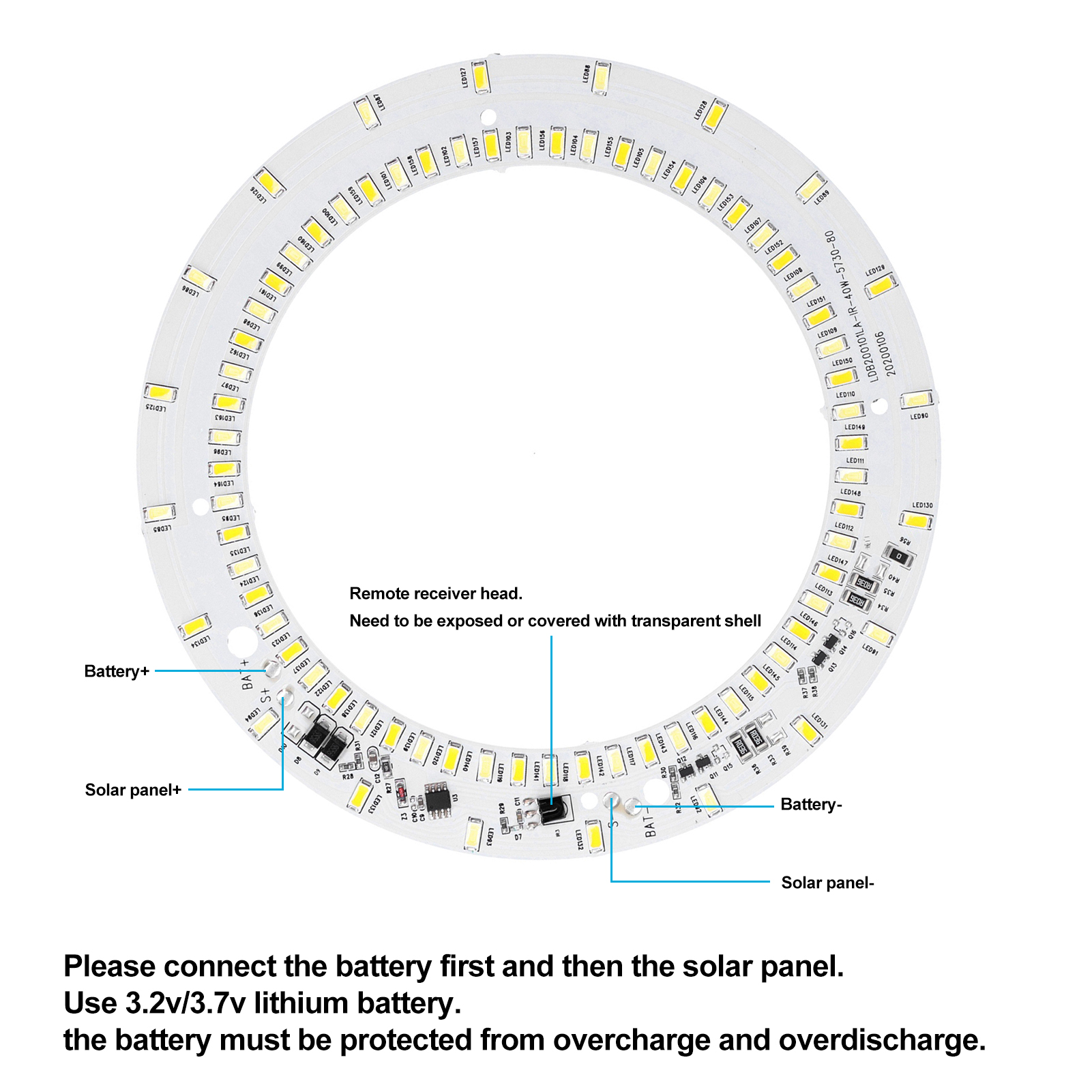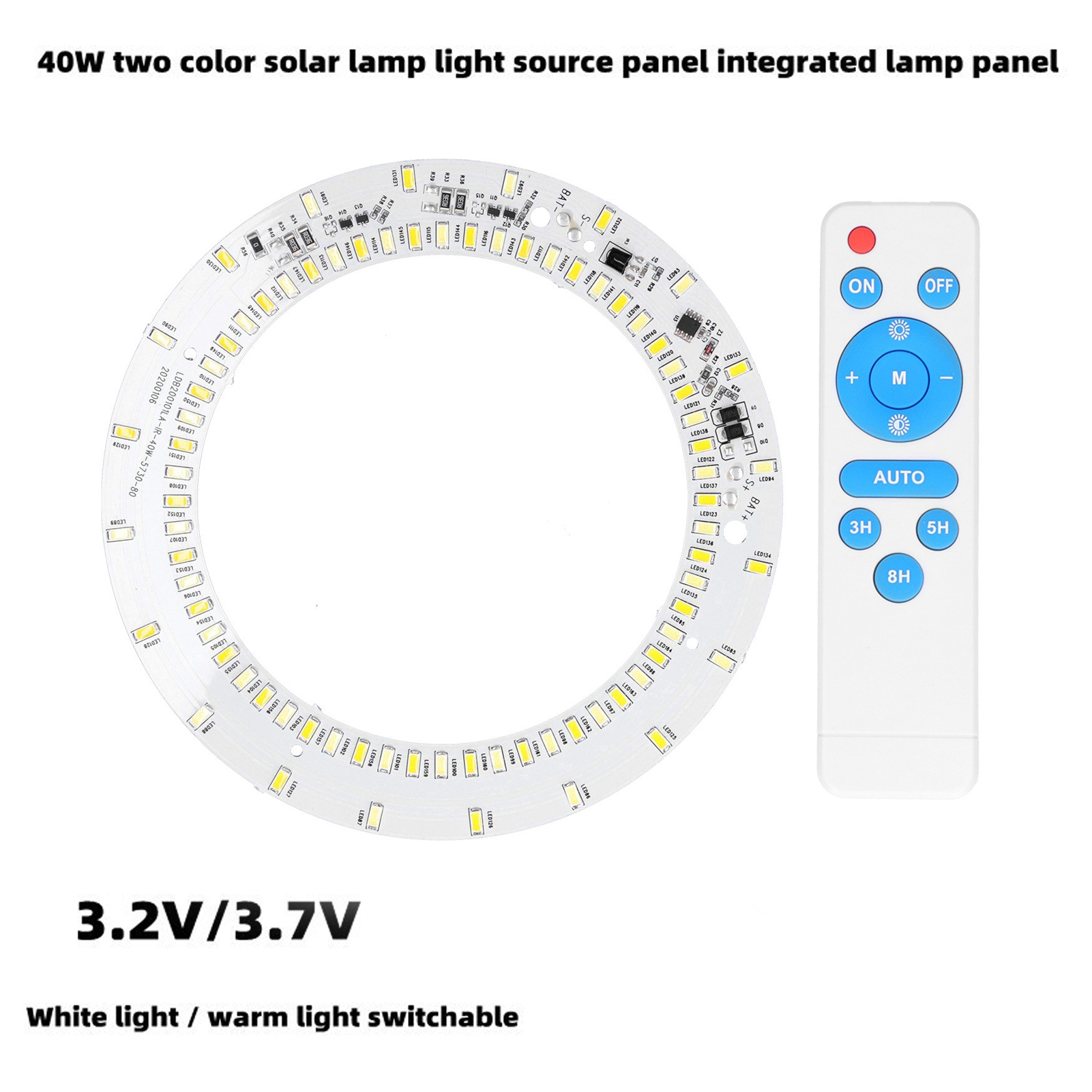 1、40W 3.2V/3.7V solar ceiling light source board, built‑in white light + warm light dual color, the light color can be switched. 2、Easy to install, it can be used for solar garden lights, solar flood lights, solar ceiling lights, and other solar lighting fixtures. 3、Using high‑quality aluminum substrate + ABS material, durable, good heat dissipation, not easy to damage, long service life. 4、High brightness, low power consumption, brightness can be adjusted according to needs, remote control timing, easy to operate. 5、Produced under strict quality control and standard requirements, the safety factor is high, stable and reliable to use.