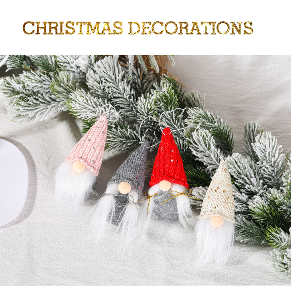 4Pcs Christmas Tree Hanging Gnomes Ornaments Set Swedish Handmade Plush Gnomes Santa Elf Hanging Home Decorations Holiday Decor