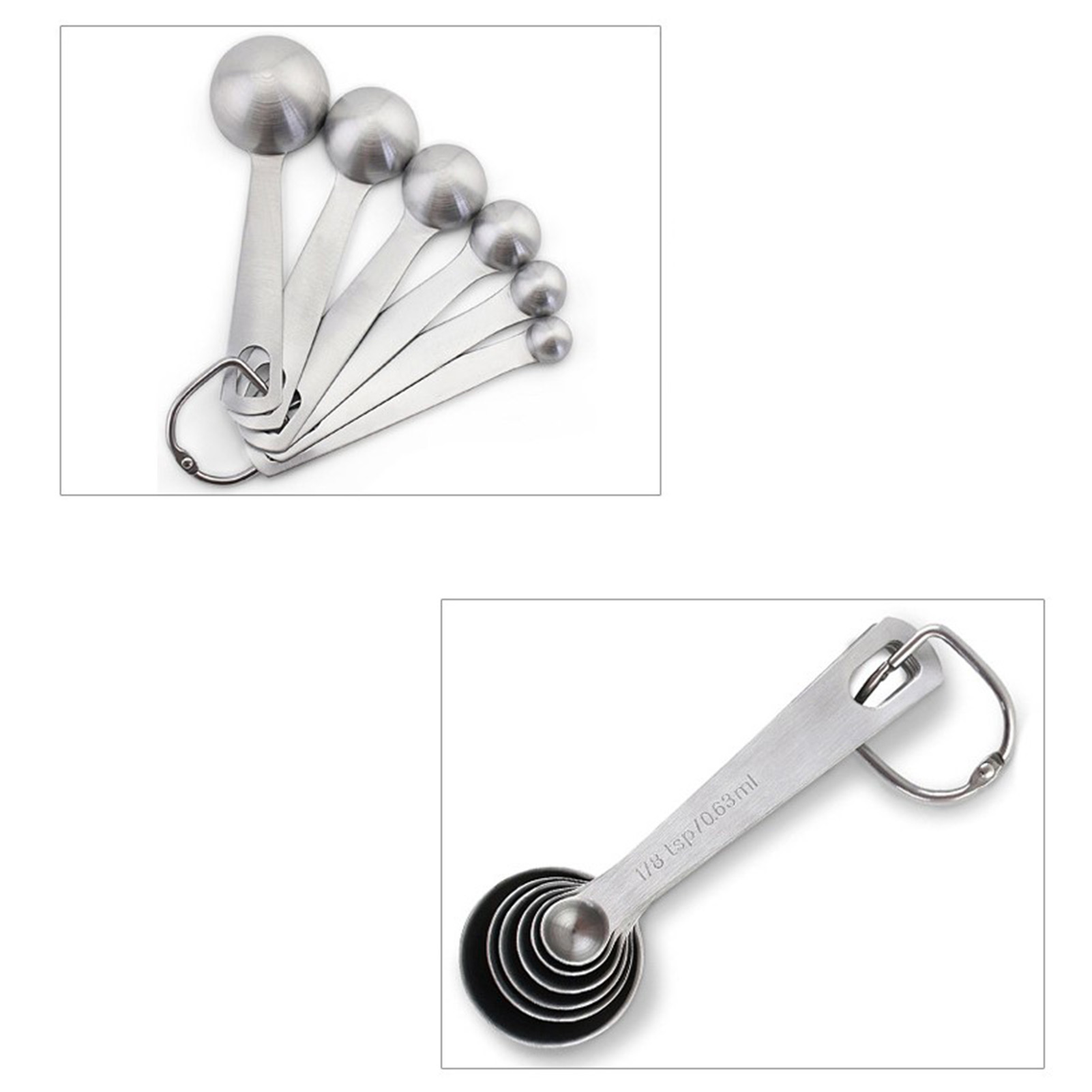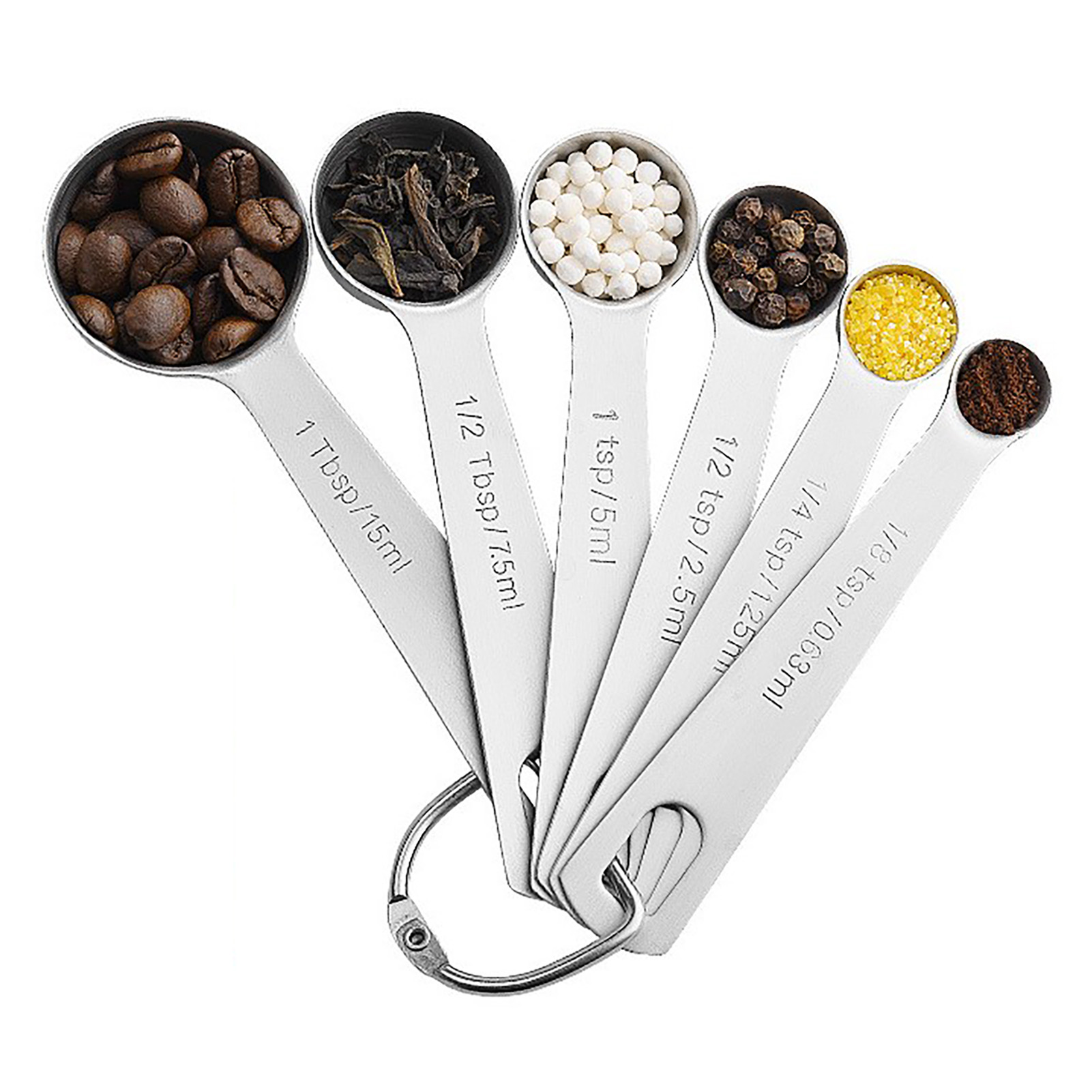 1、[Easy To Clean] The measuring spoon is made of premium stainless steel, brushed inside and outside, not easy to residue, easy to clean. 2、[Clear Scale] These measuring teaspoons are equipped with integrated stamping and engraving scale on the handle, clear, to avoid falling off. 3、[6 Piece Set] A total of 6 different sizes of measuring spoons for your choice, to meet the daily needs of baking. Removable design, easy to use. 4、[Clean And Hygienic] The measuring spoon set uses premium welding and polishing technology, not easy to hide dirt, clean and hygienic. 5、[Multipurpose] These measuring tablespoons can be used for seasoning, coffee powder, flour, etc, so you can enjoy professional cooking.