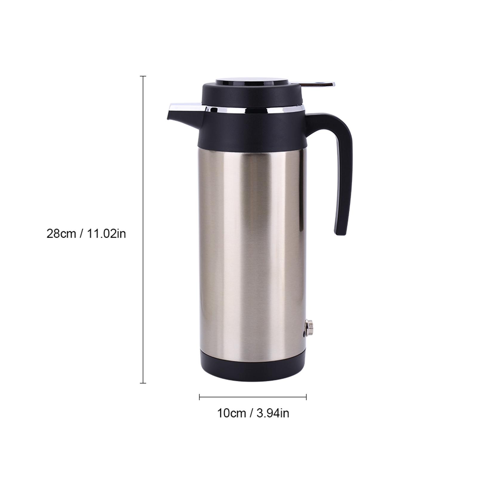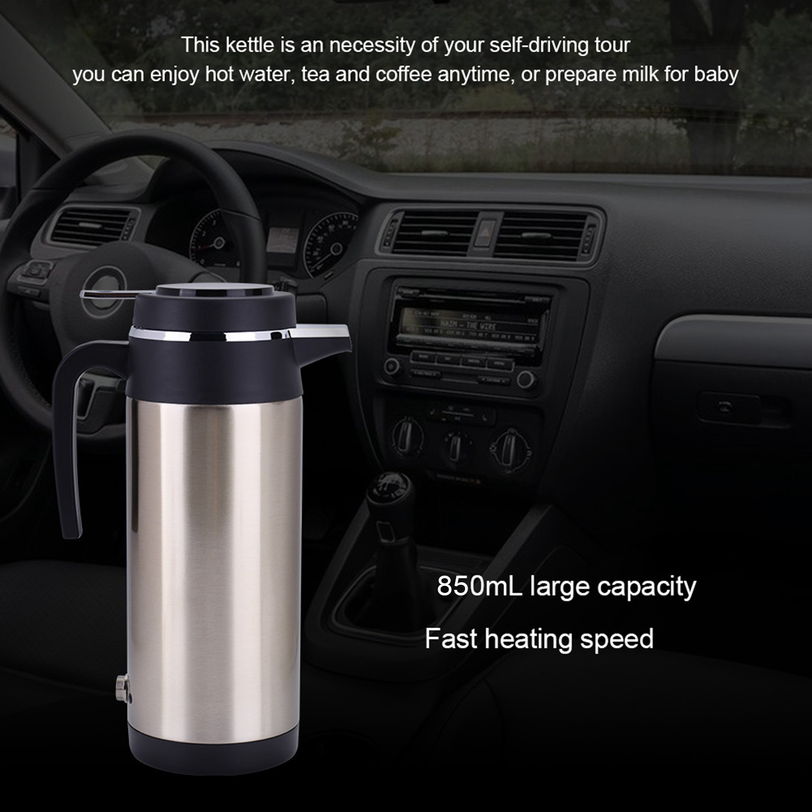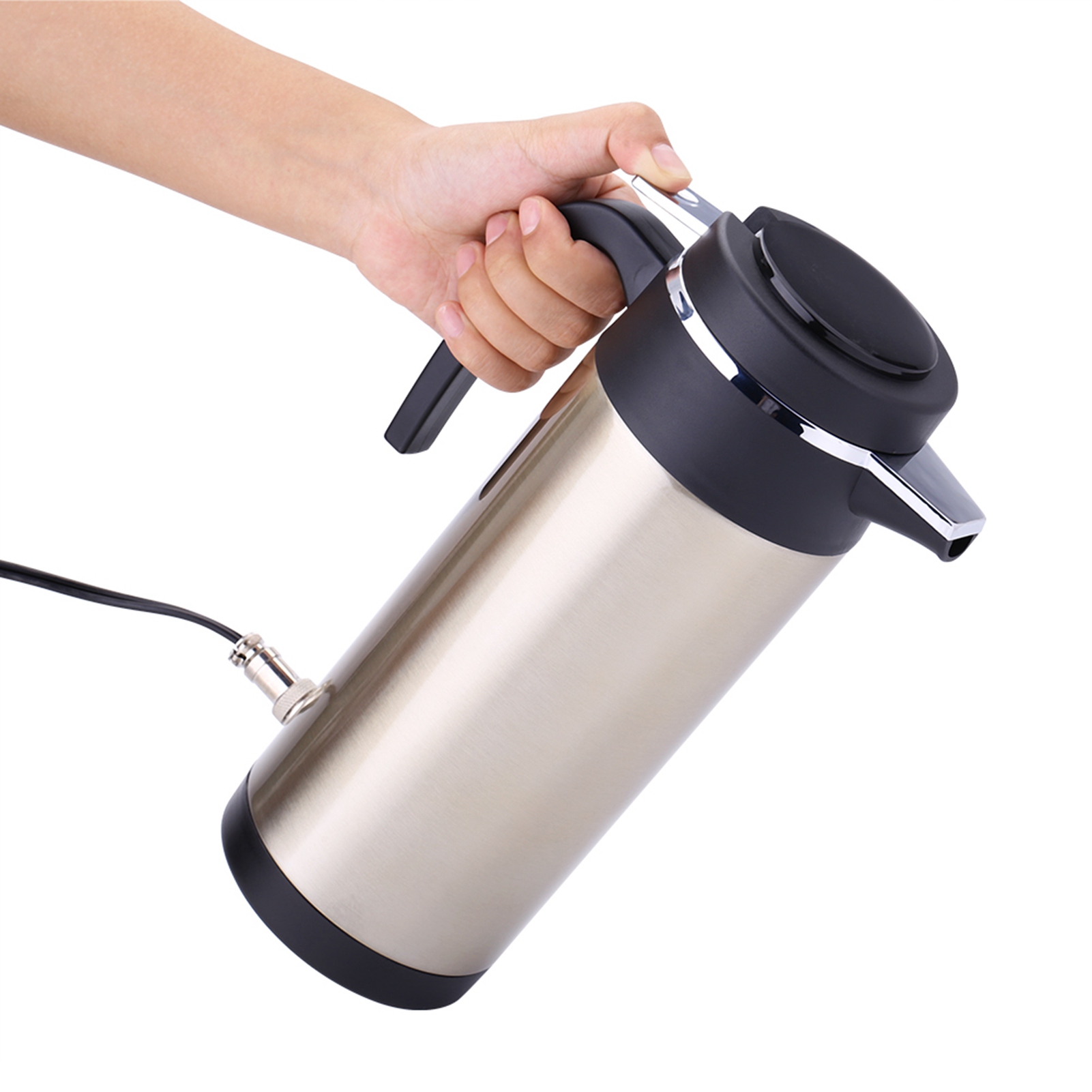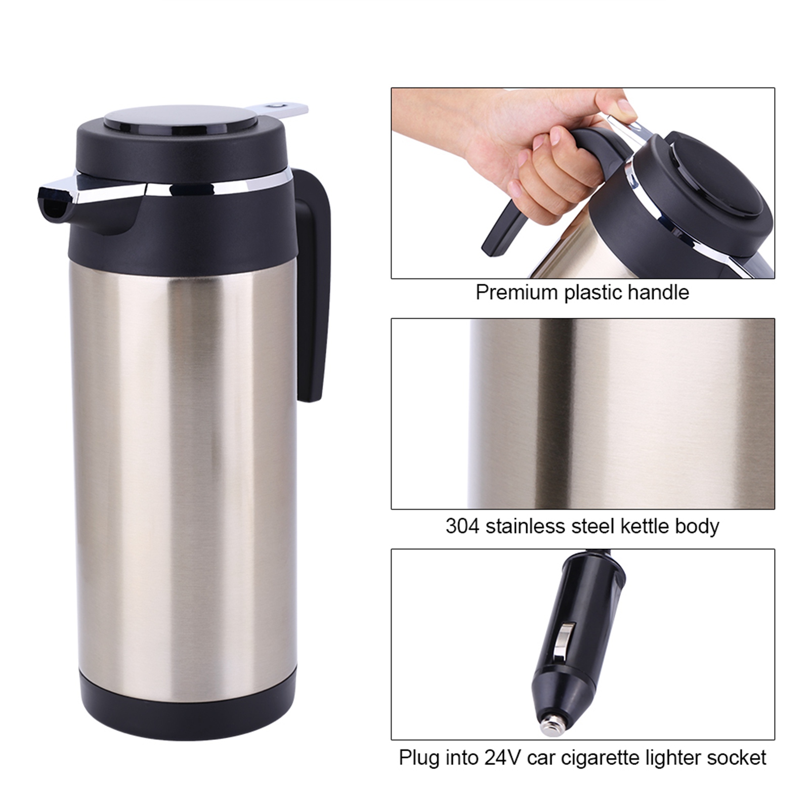 1、The kettle body adopts 304 stainless steel ensuring safe and clean of water 2、Premium plastic handle is comfortable to grip, stable and heat insulation 3、Auto cut off power when water is boiling and the green indicator lights on 4、850mL large capacity, it is more practical and convenient when going out with families or friends 5、24V power supply, plug into the cigarette lighter socket, suitable for self-driving tour
