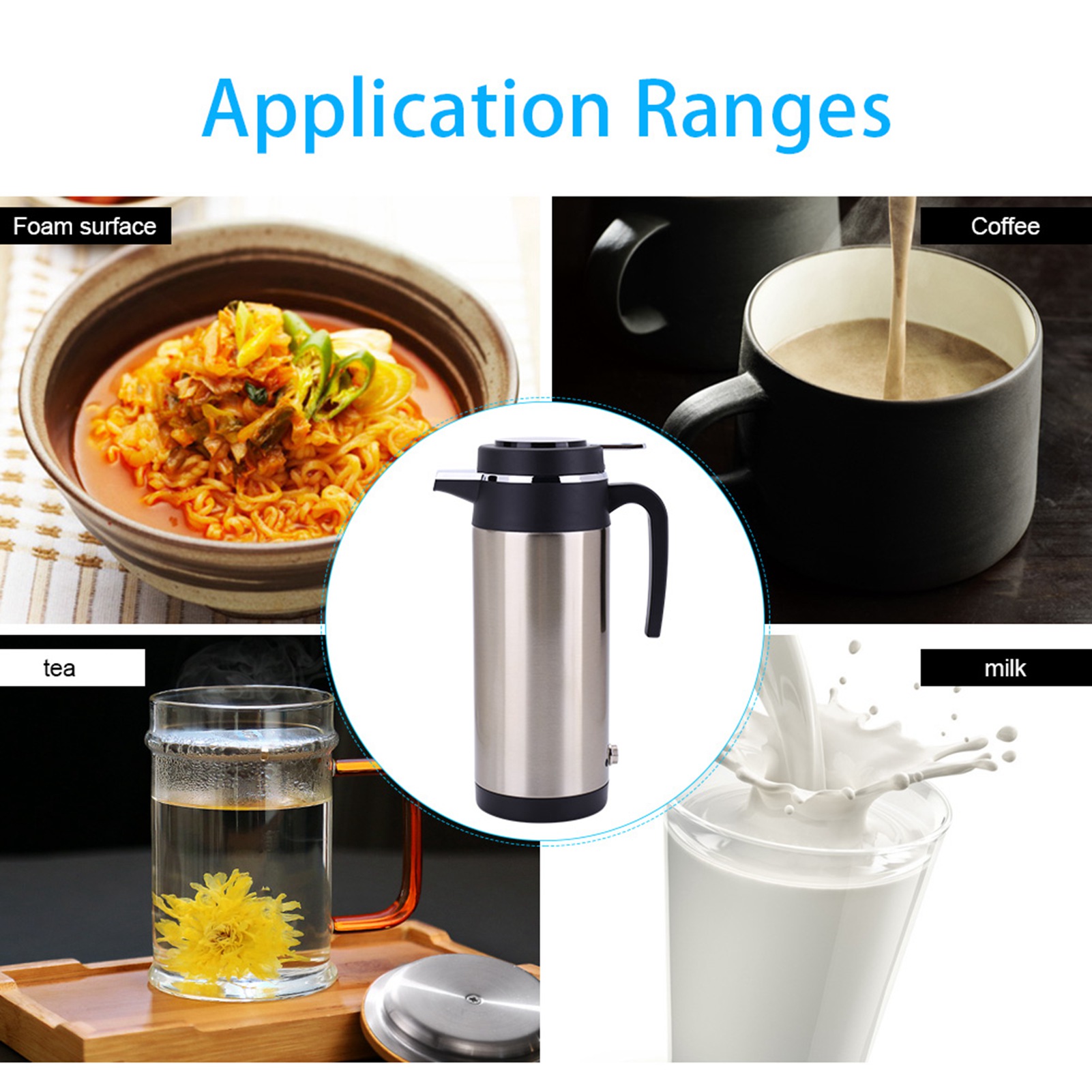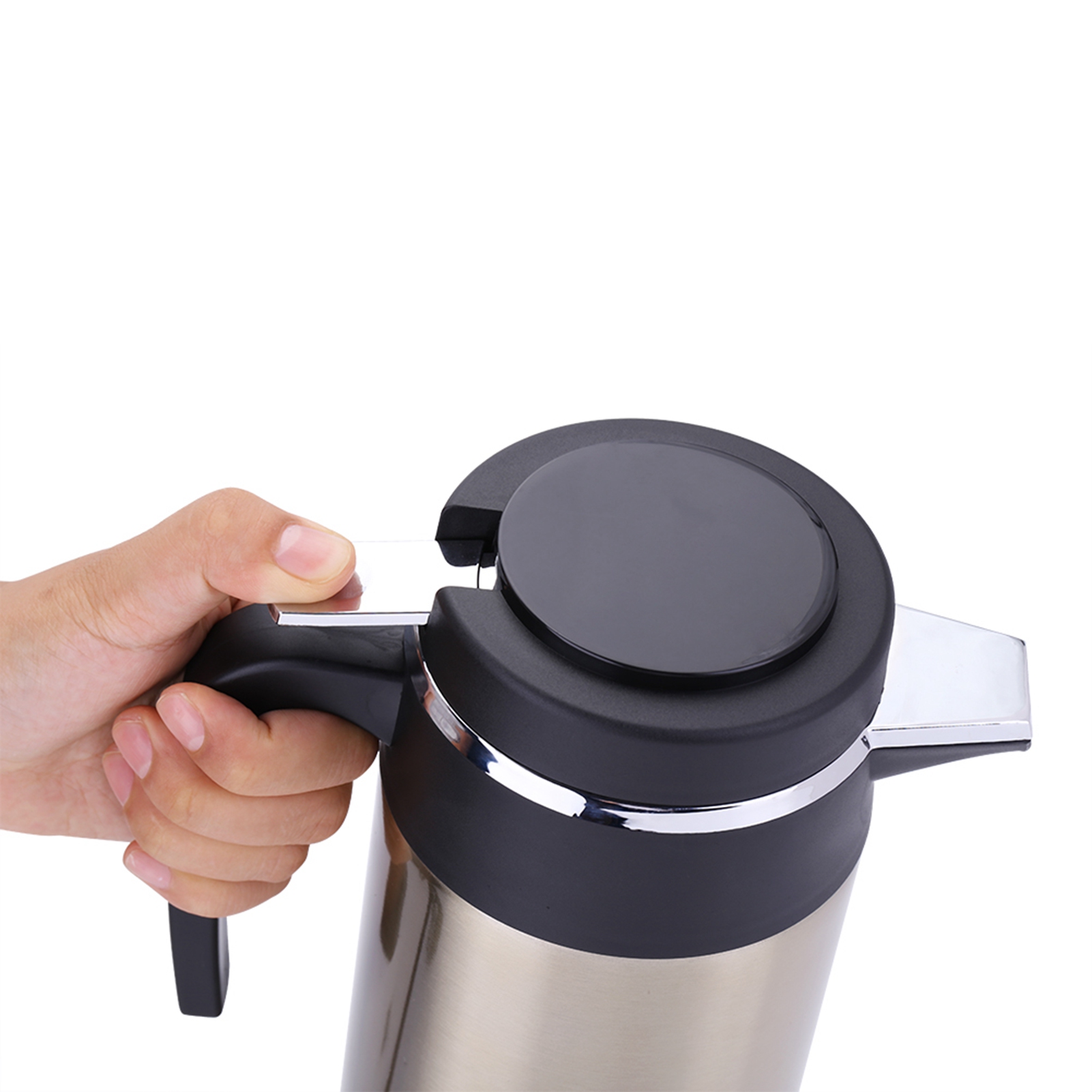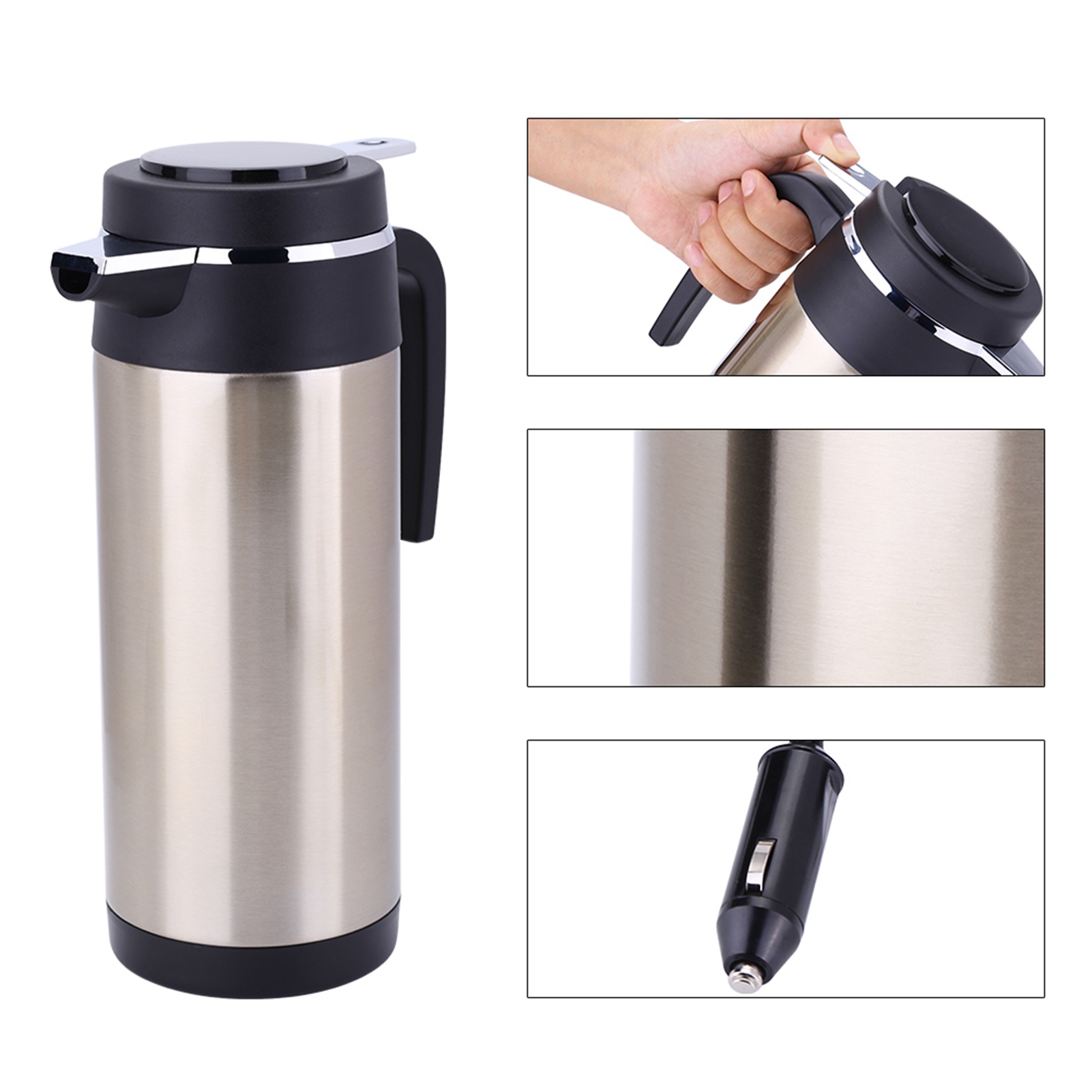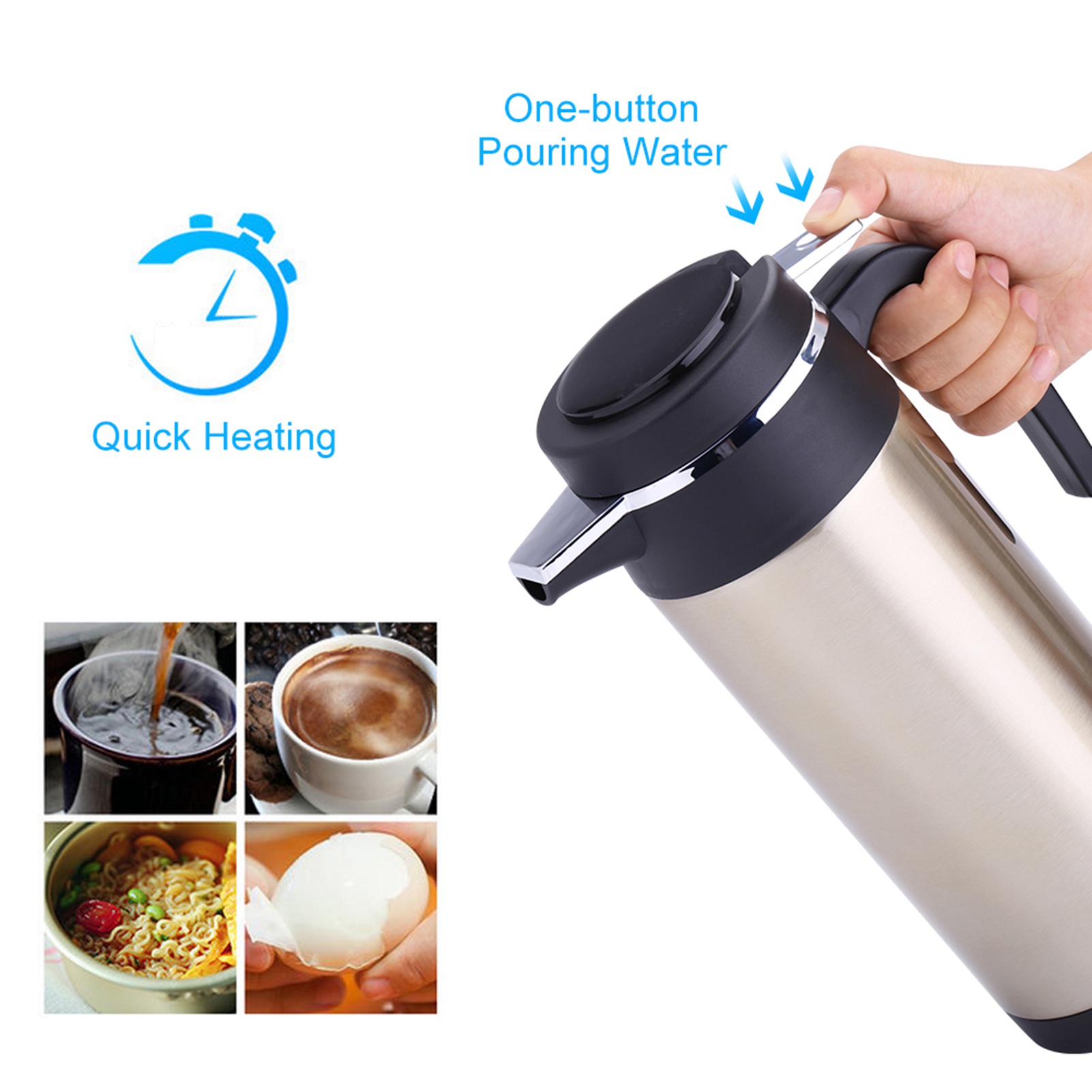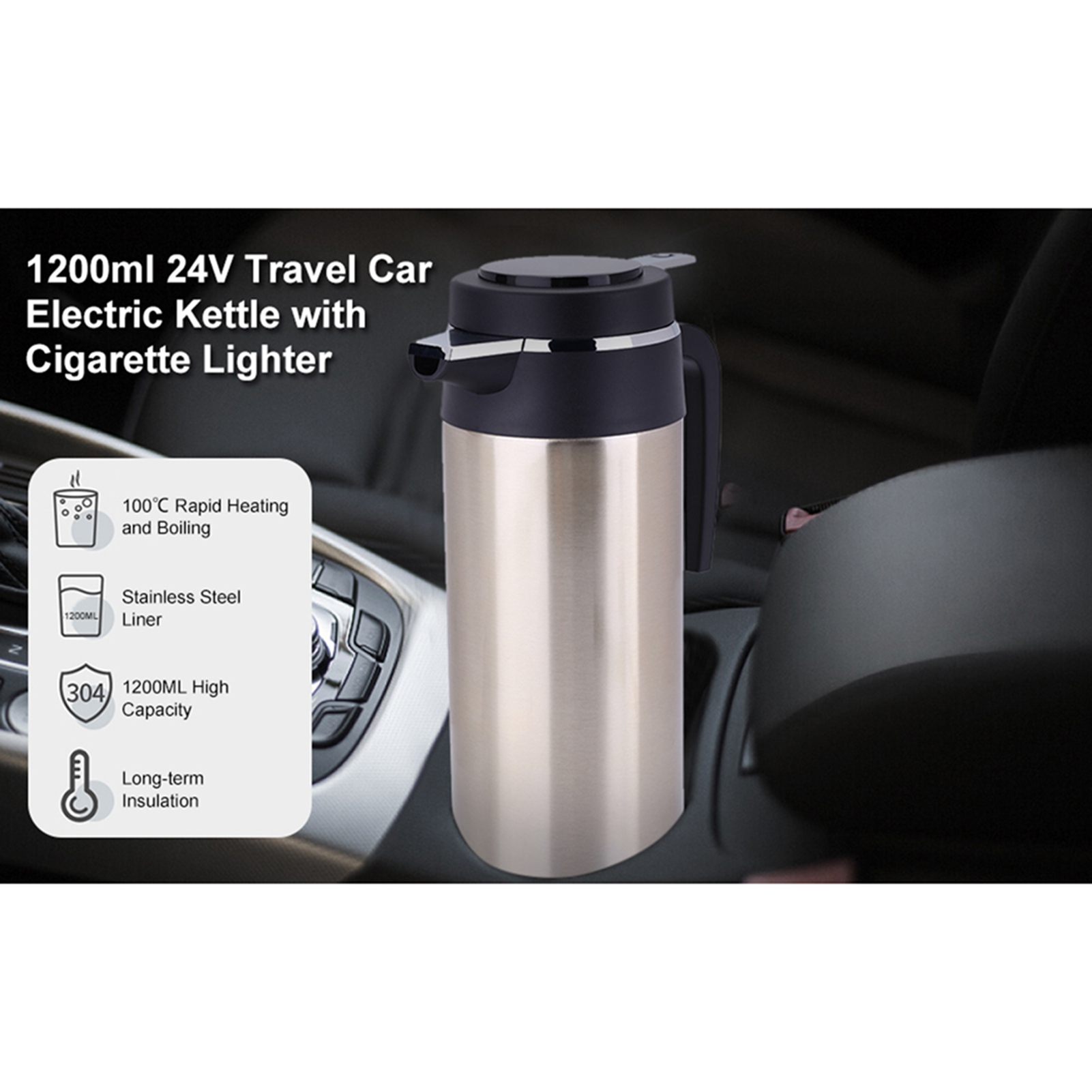 1、The kettle body adopts 304 stainless steel ensuring safe and clean of water 2、Premium plastic handle is comfortable to grip, stable and heat insulation 3、Auto cut off power when water is boiling and the green indicator lights on 4、850mL large capacity, it is more practical and convenient when going out with families or friends 5、24V power supply, plug into the cigarette lighter socket, suitable for self-driving tour