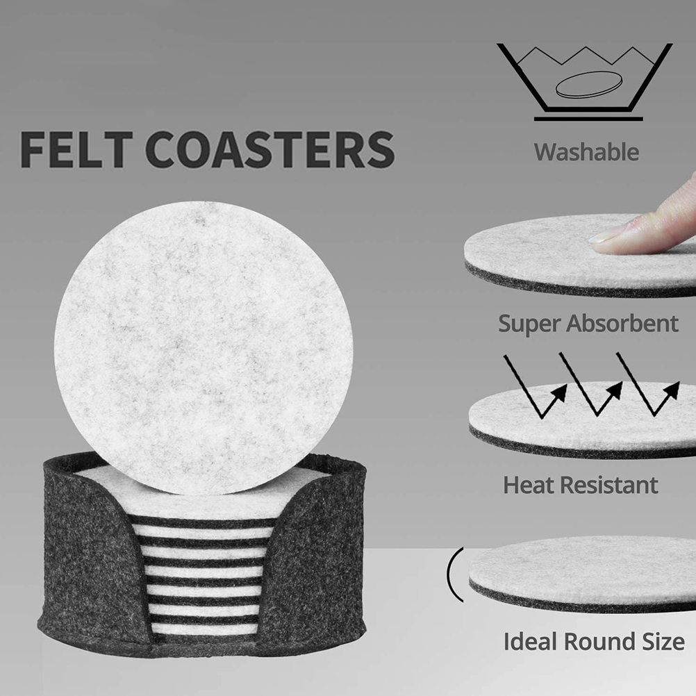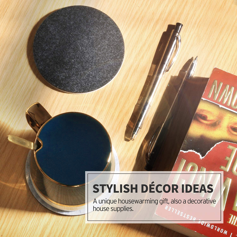 1、1. Excellent water absorbing agent-these modern and practical coasters are perfect accessories for family entertainers and everyday families! Together with the carbon black felt pad holders, they are always stacked and ready for the next happy hour! 2、 2. 100% soft and comfortable cleaning-made of felt material, thicker, larger and more absorbing than artificial coasters, these natural coasters will absorb drips, spills and condensation! They can be machine washed in cold water. 3、 3. Protect your furniture-always protect your valuable table from any potential water droplets, hot soup or stew! There is no need to worry about the glass slipping or tipping, and the disturbing noise caused by the touch between the glassware and the table is also eliminated. 4、 4. Fashionable gift ideas-looking for unique housewarming gifts or decorative household items? This double-sided carbon black felt coaster set is a pragmatic and wise choice. This size is very suitable for most common glassware with sufficient landing area.