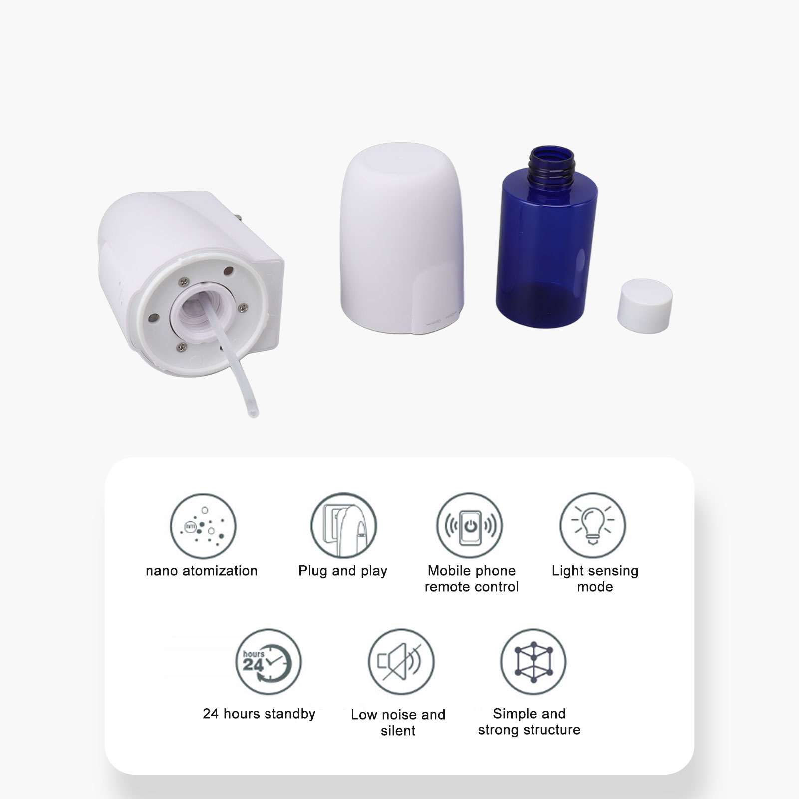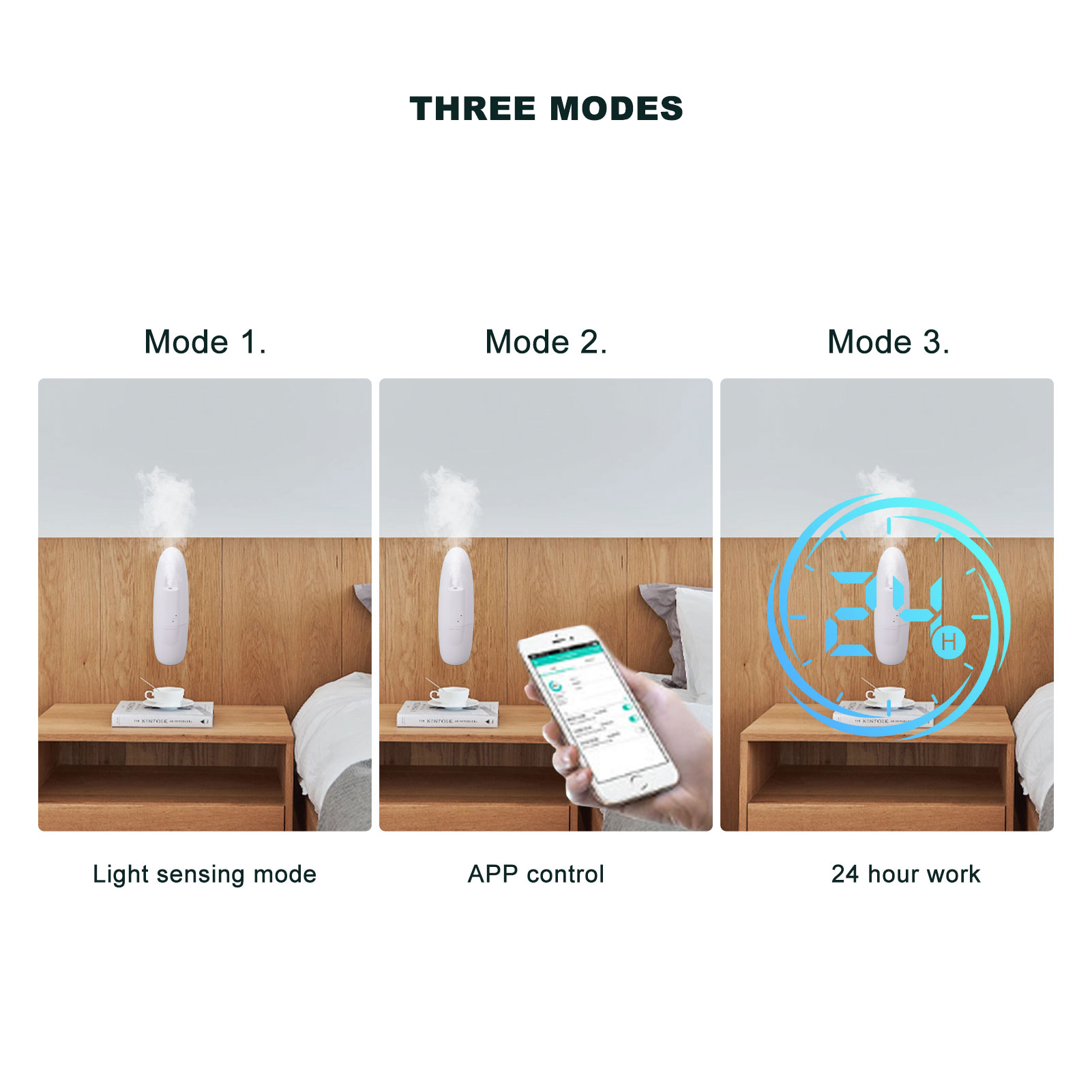1、Nano Mist Technology: The advanced 2 fluid atomization technology utilizes high speed compressed air to quickly and evenly disperse essential oils into the air, providing long lasting and even scent coverage without dampening nearby objects. 2、Easy To Use And Control: Just plug it in and start using. With 3 different modes, you can easily customize your aromatherapy experience to suit your preferences. 3、Quiet And Durable Design: Operates at less than 10db for a near silent experience and features a durable, simple design that will last for years. 4、Light Sensor Mode: Automatically turns on when there is sufficient light and turns off when it detects darkness, making it perfect for use in any environment. 5、Bluetooth App Control And 24 Hour Continuous Operation: With the Bluetooth app, you can easily customize your scent experience and set the device to run continuously for 24 hours. Perfect for small spaces up to 90 cubic meters in size.