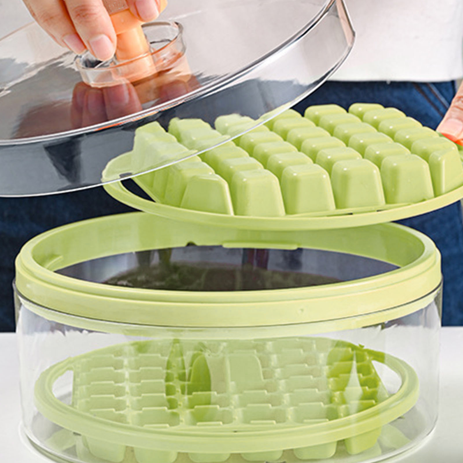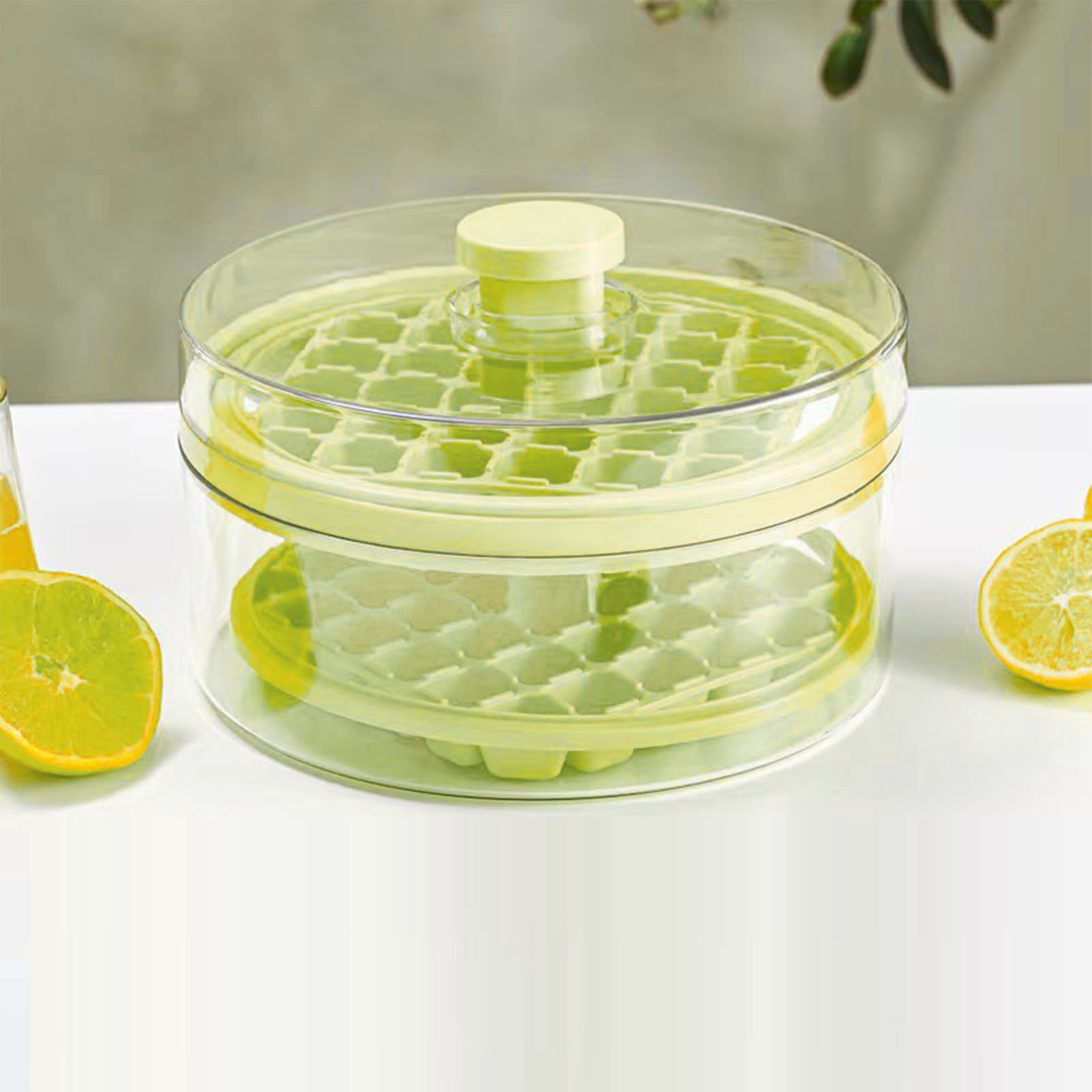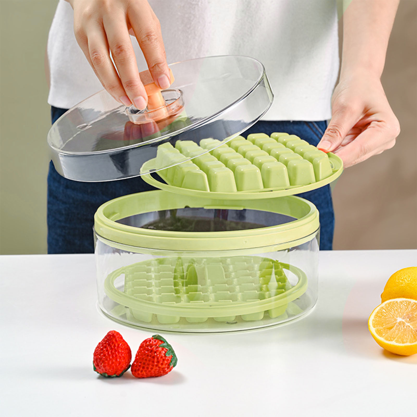 Double Layer Round Ice Box Large Capacity Odourless Ice Cube Trays for Chilling Drinks Coffee Juice Cocktail Green