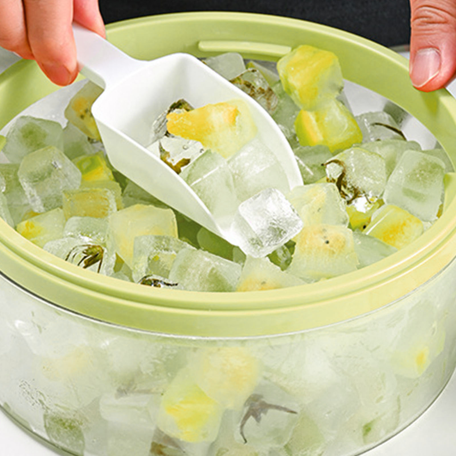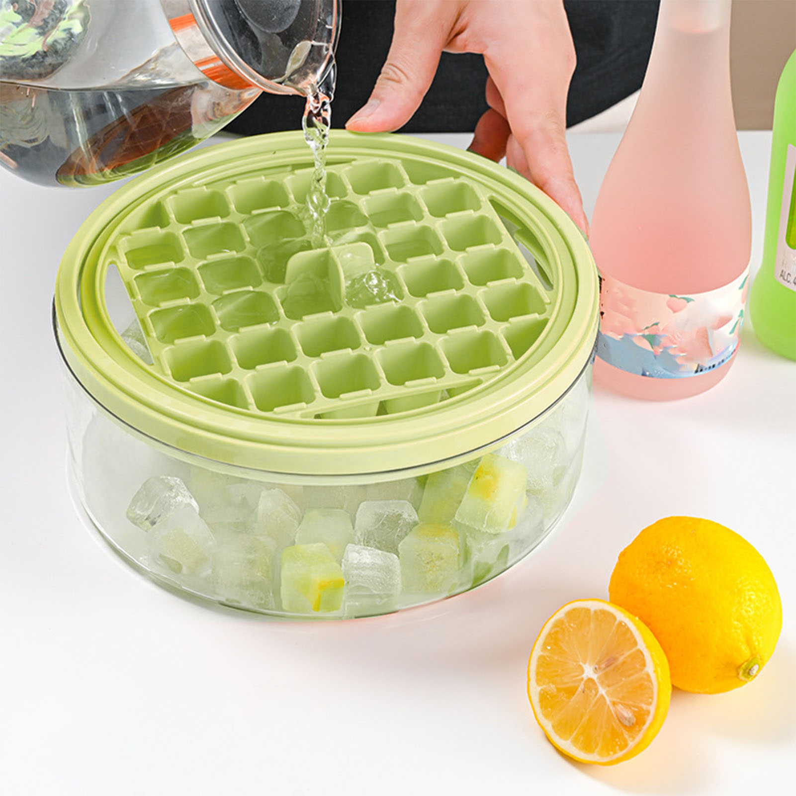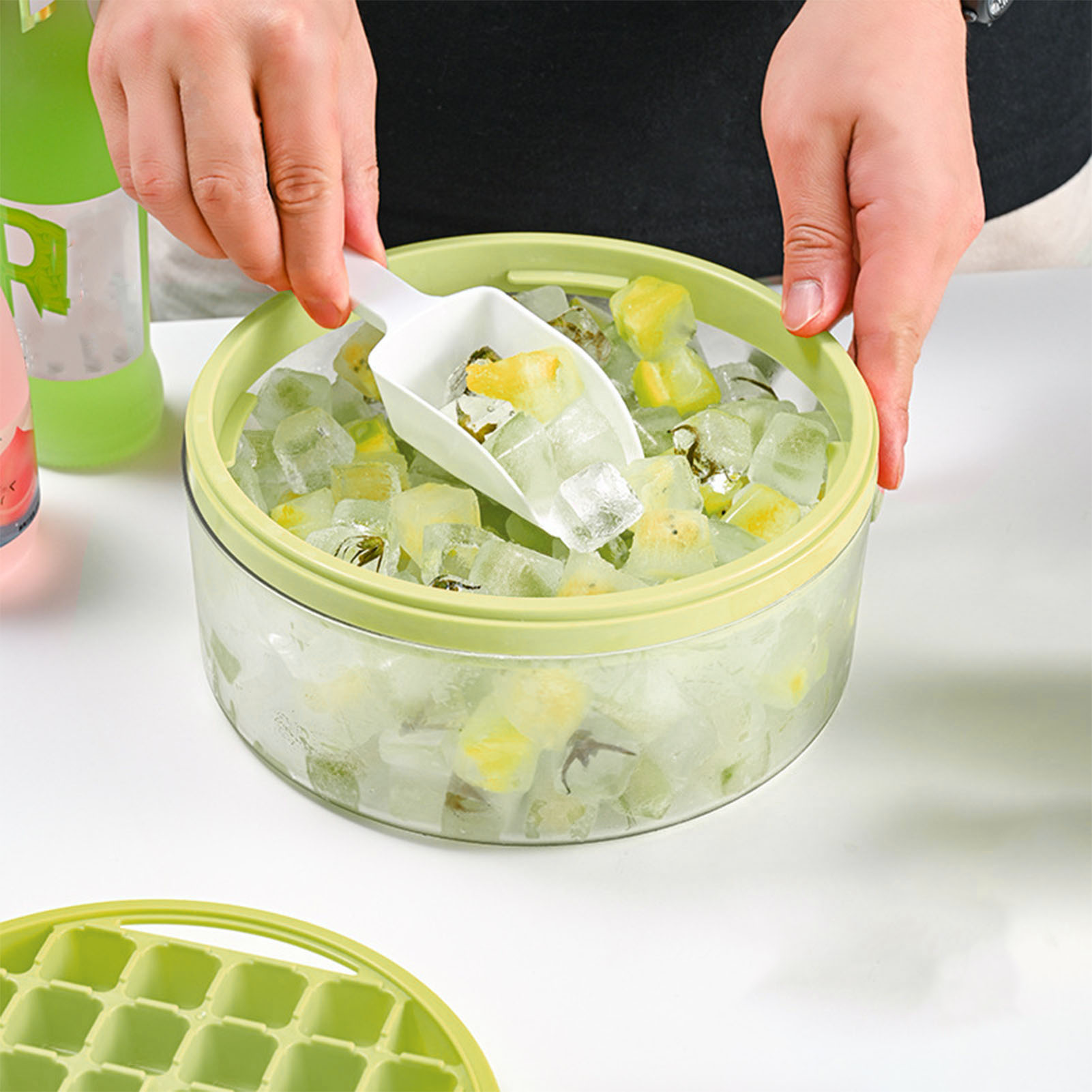 Double Layer Round Ice Box Large Capacity Odourless Ice Cube Trays for Chilling Drinks Coffee Juice Cocktail Green