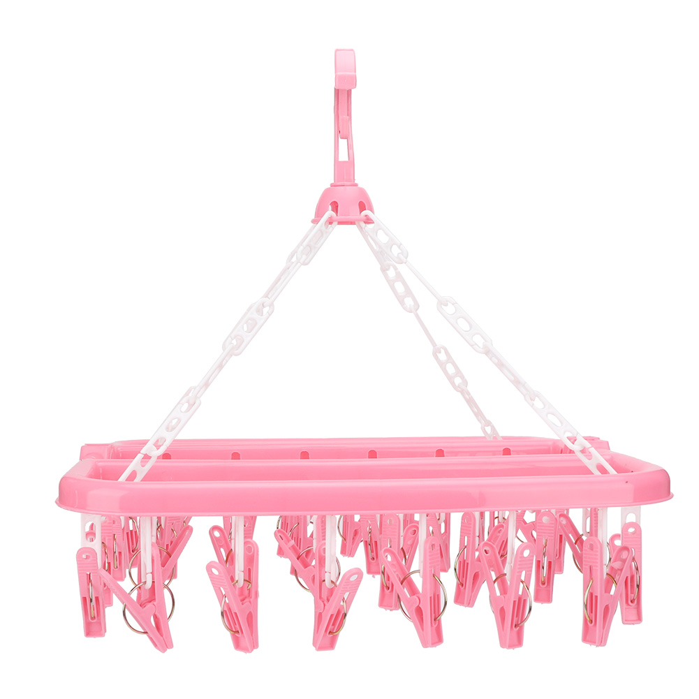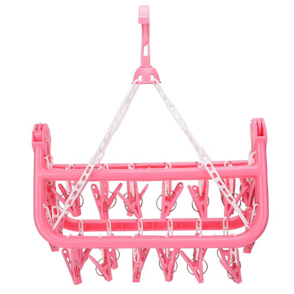 Household 32 Clips Folding Clothes Hanger Dryer Socks Underwear Drying Rack (Pink)