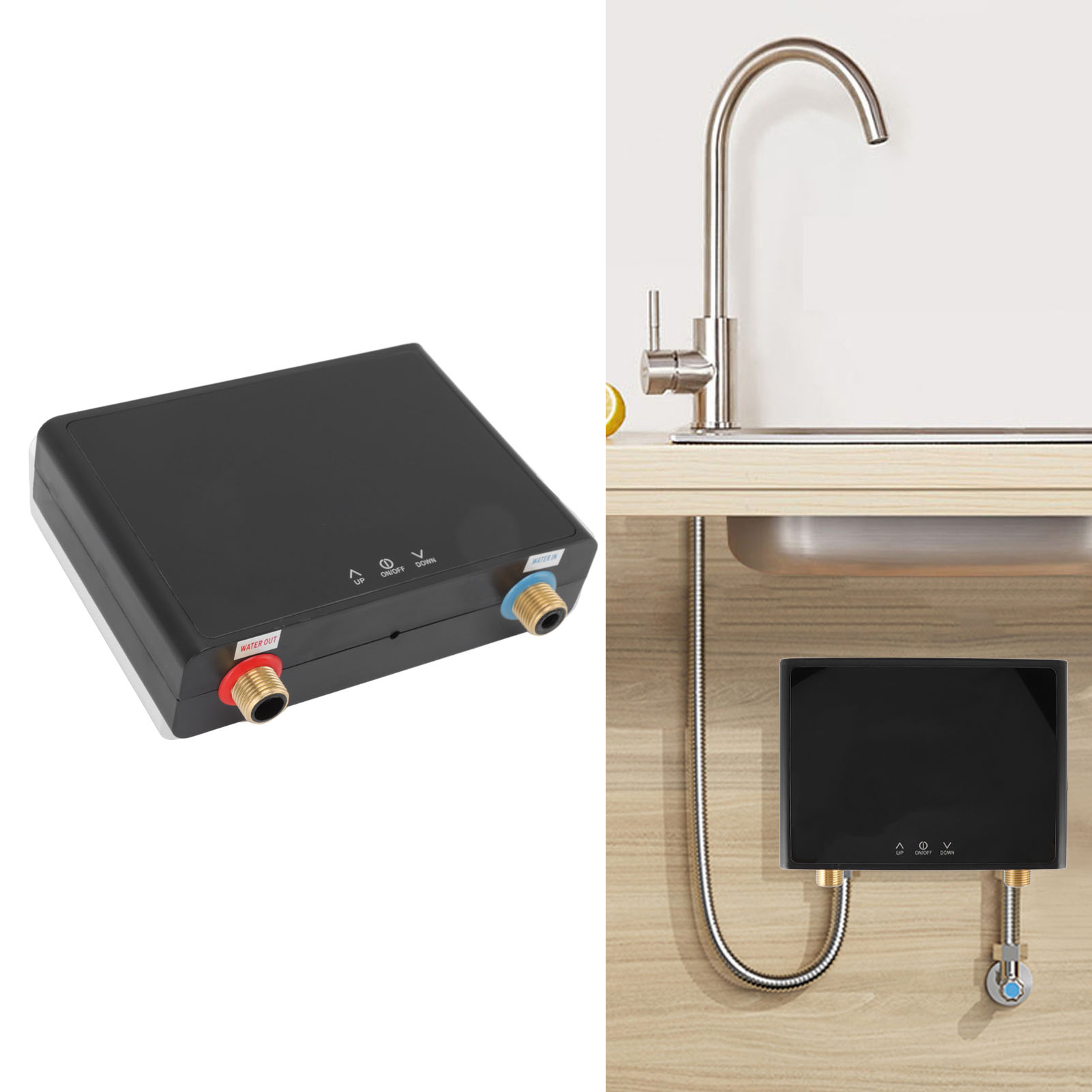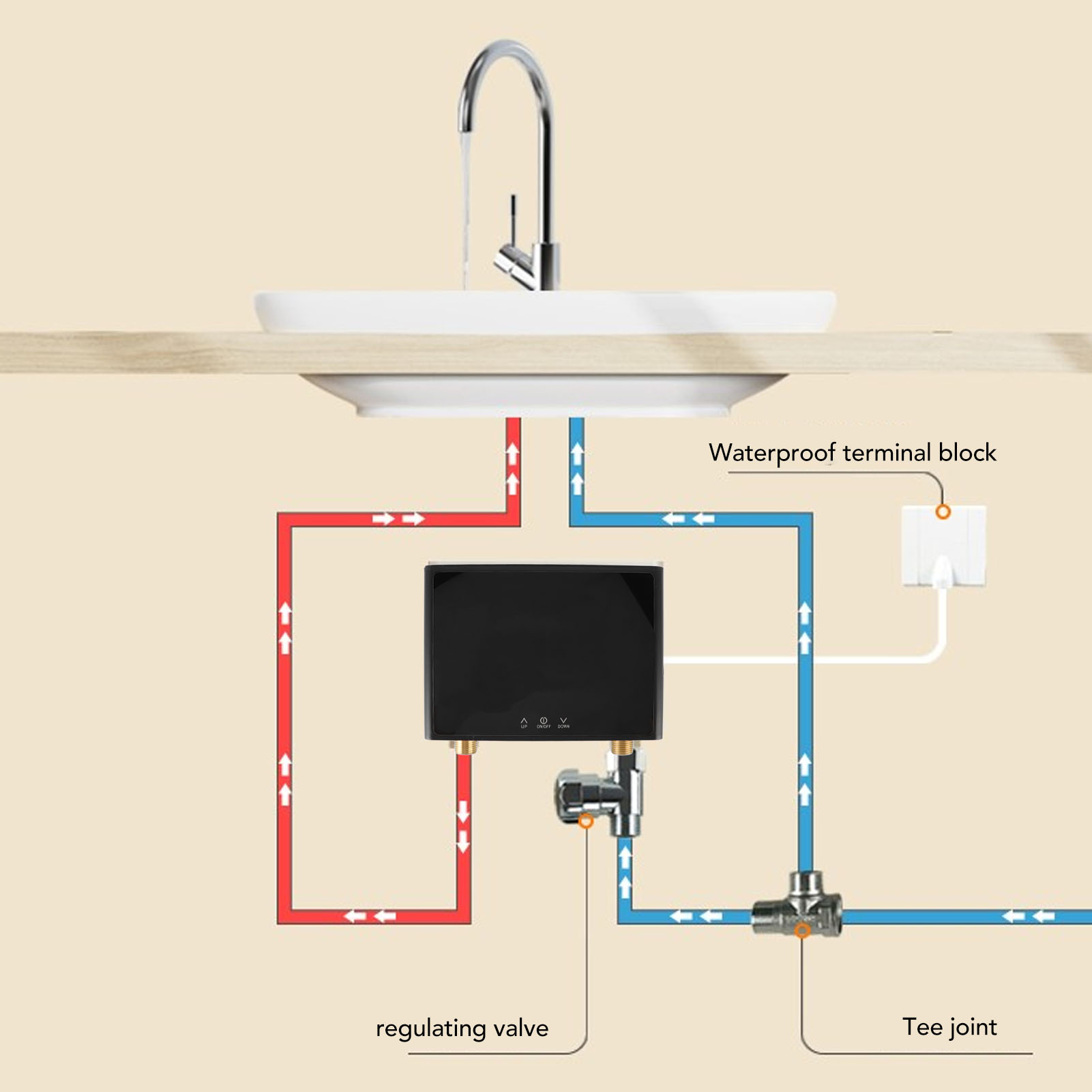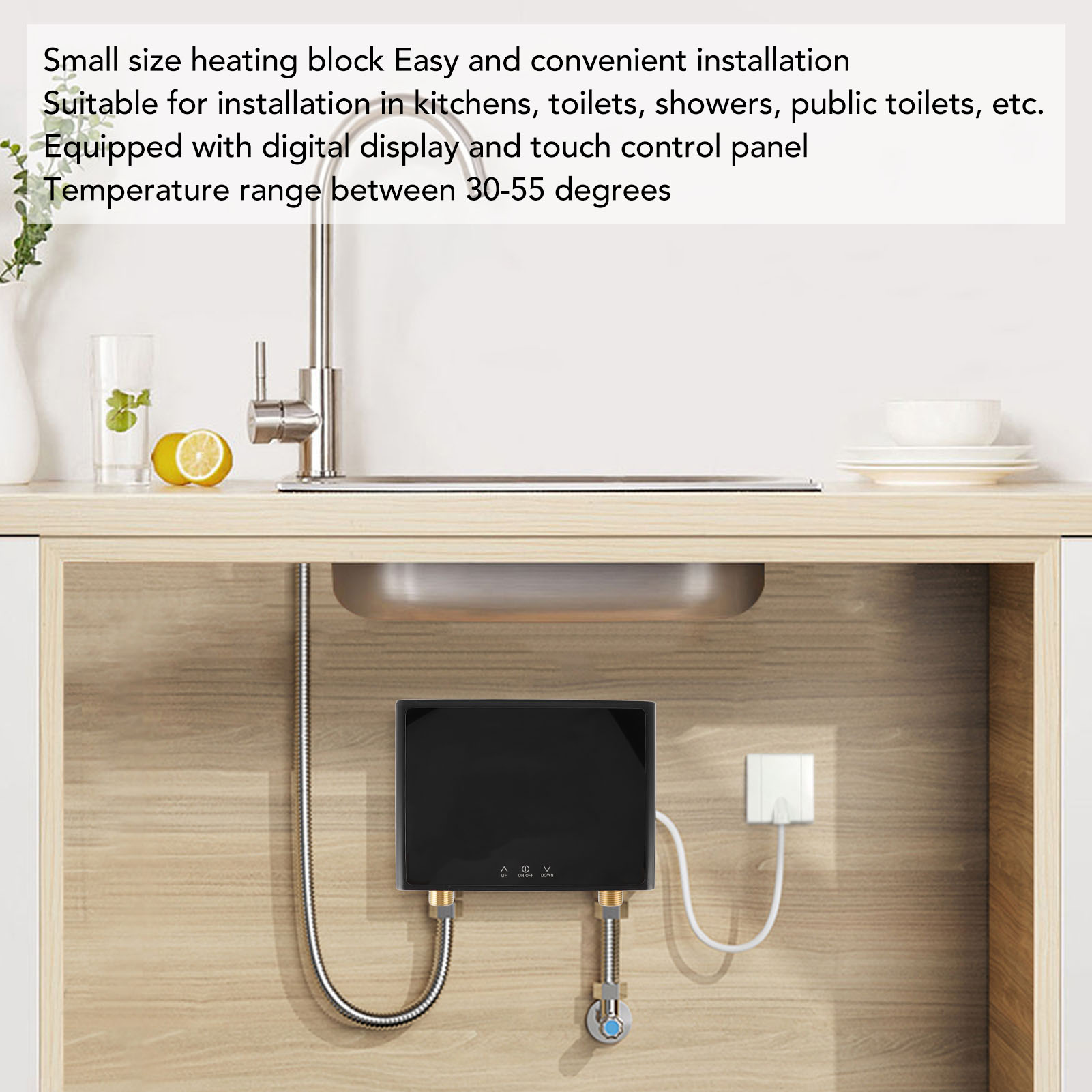 1、Fast: Electric water heaters can instantly provide continuous hot water at 30℃ or higher without waiting for preheating or terrible temperature rises and drops. 2、Constant Temperature: Small size, fast heating, energy saving, temperature range of 30‑55℃, suitable for washing, hands, dishes, vegetables, face, and bath. 3、2 Control Modes: Equipped with digital display and touch control panel, easy to set the temperature, with a remote control, easy to adjust the temperature, you can also use the touch screen button. 4、Safe: Multiple protection devices, each product has been strictly tested, and the internal water and electricity lines are designed for branch operation to avoid water leakage or scale accumulation. 5、Easy to Install: Tankless electric water heater, simple and convenient to install. It is suitable for installation in household kitchens, toilets, showers, public toilets, etc.