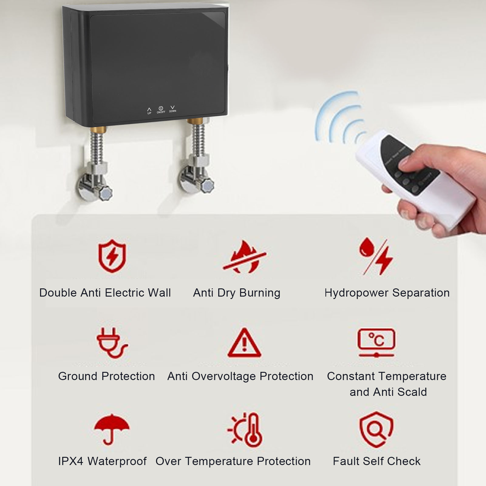 IPX4 Waterproof Tankless Instantaneous Water Heater with Remote Control Touch Panel for Kitchen Bathroom 220V 5500W