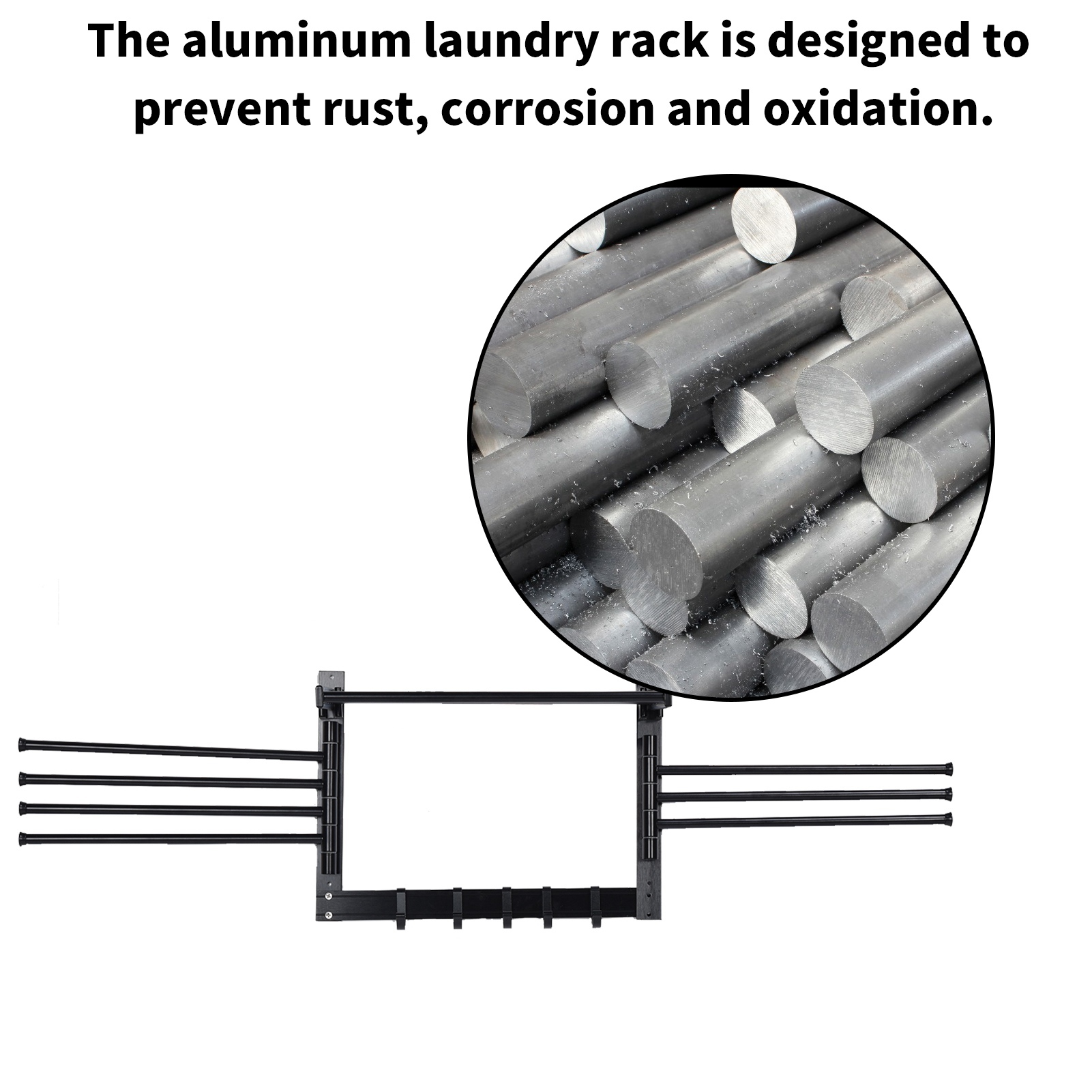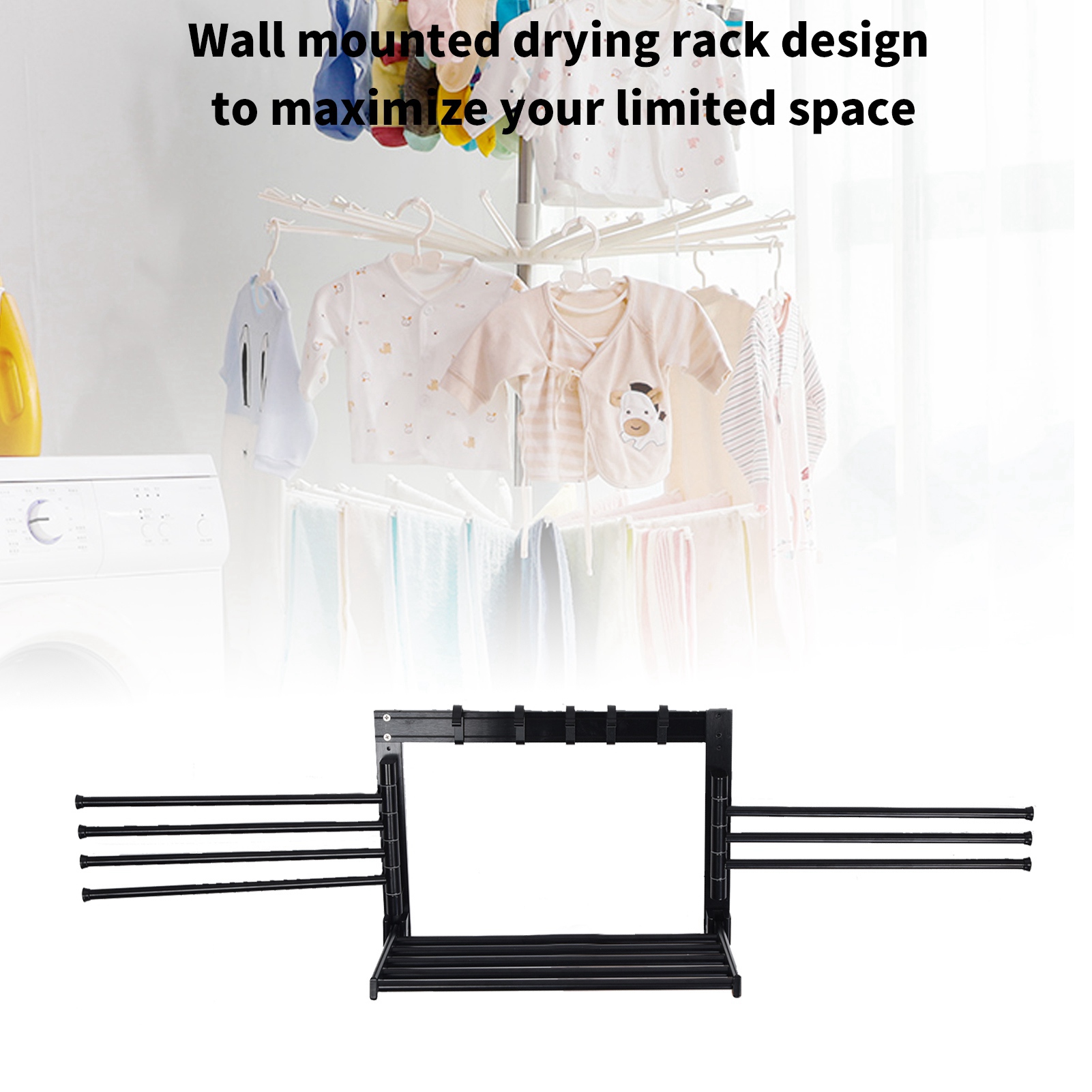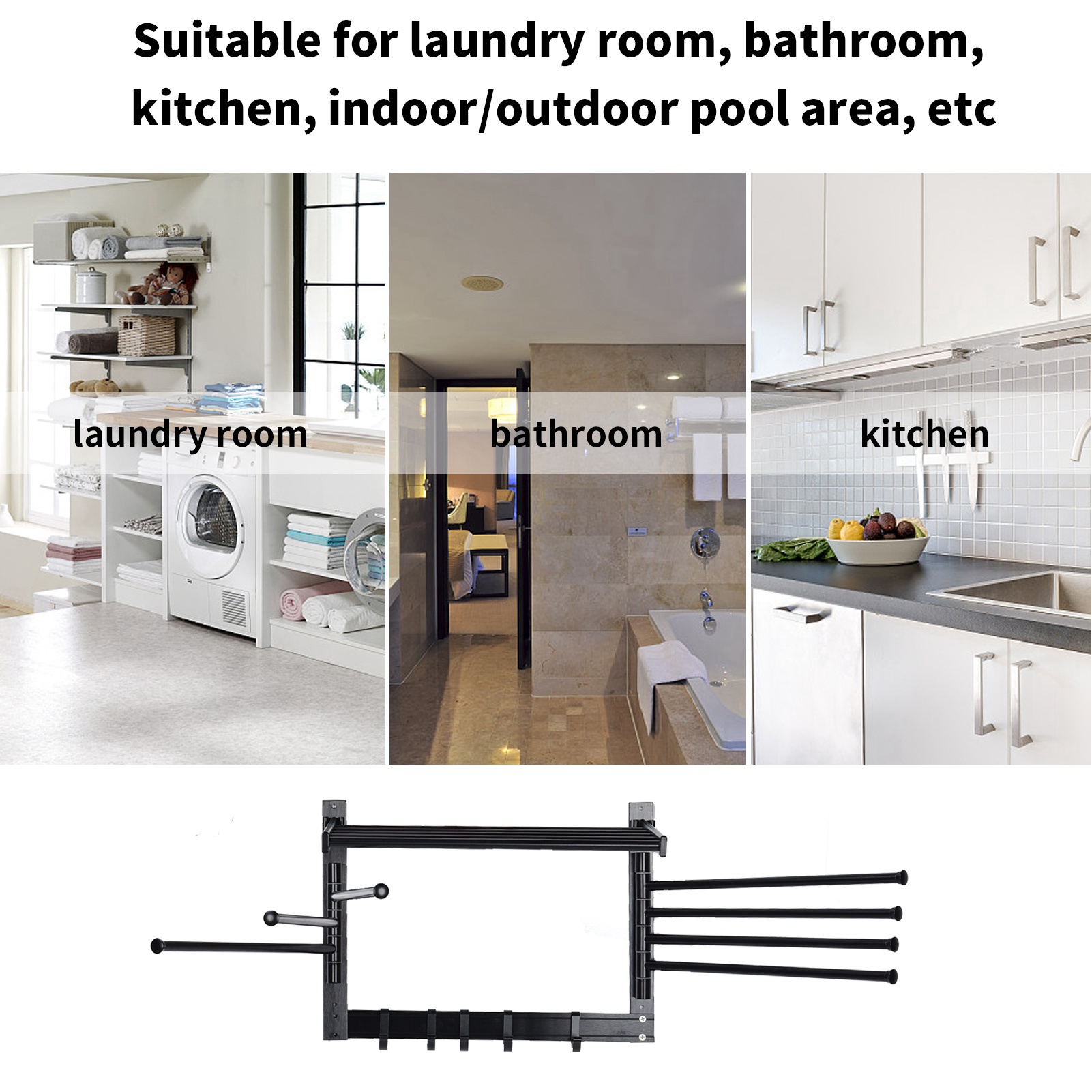 1、Compact foldable wall mounted drying rack design to maximize your limited space. Easily get rid of the mess in the laundry room and bathroom towel rack. 2、The rack comes with movable hooks and swing arms, will help you air dry your heaviest and smallest laundry with ease.Great for baby hanging clothes. 3、The aluminum laundry racks for drying clothes is beautifully designed to prevent rust, corrosion and oxidation. Built with durability and dependability. 4、This wall drying rack with complete hardware that's quicker and easier to set up. Easy-to-follow instructions included. 5、Suitable for laundry room, bathroom, kitchen, indoor/outdoor pool area, etc. You can place sports equipment, baby clothes and other items that need to be organized.