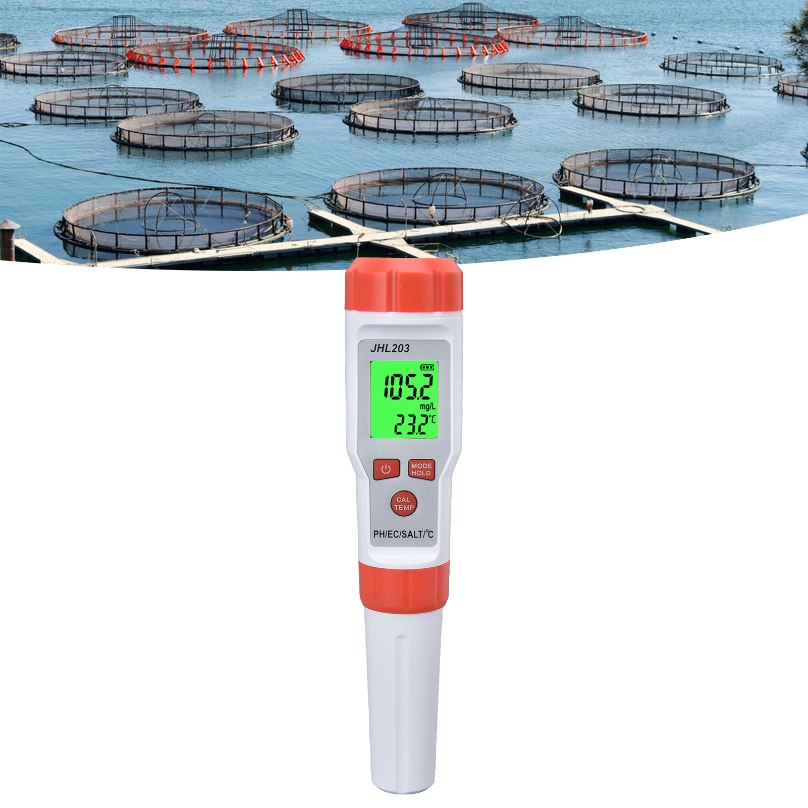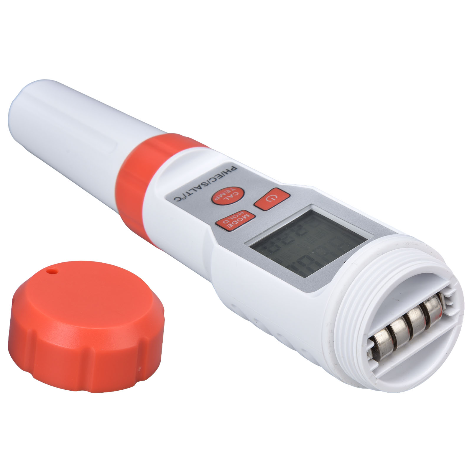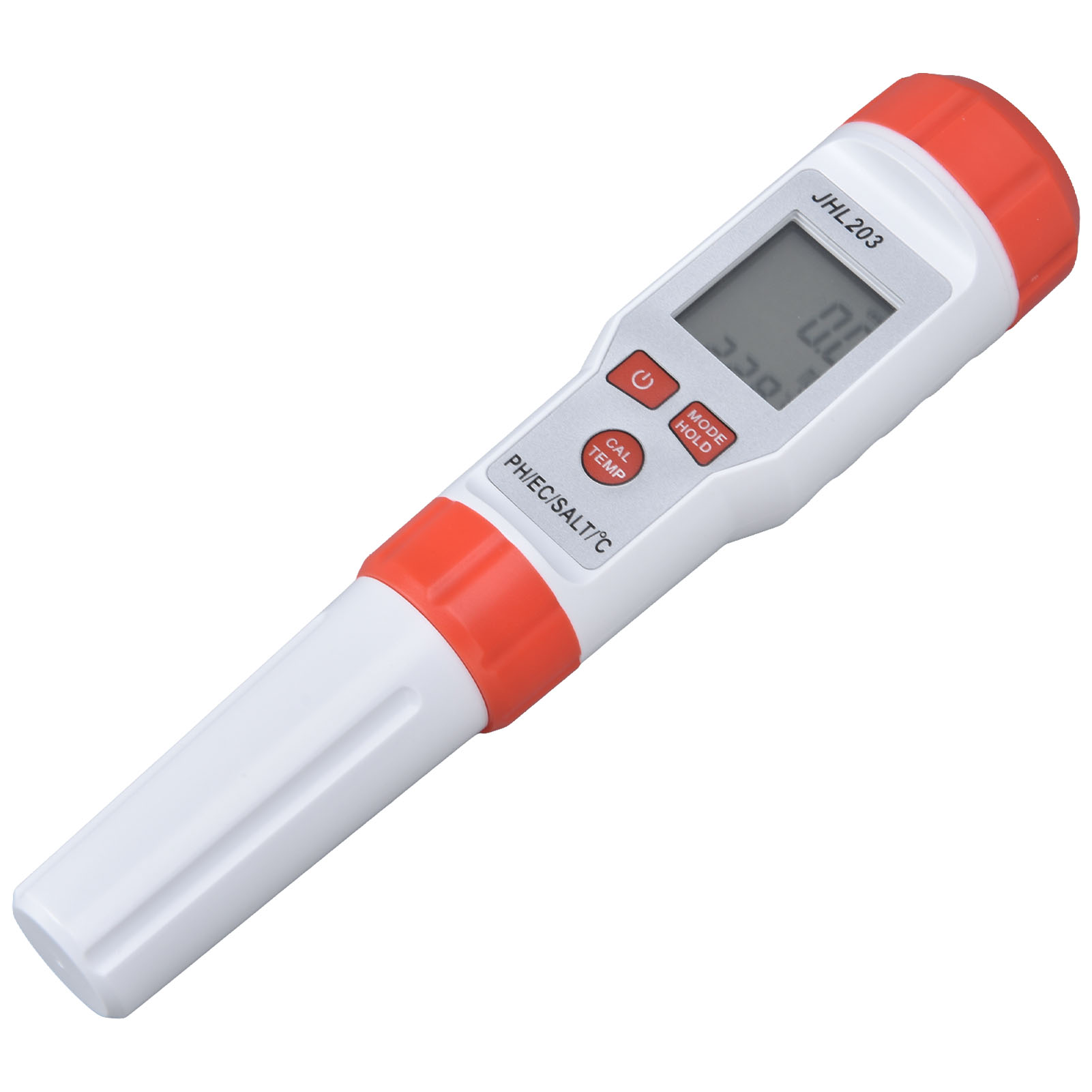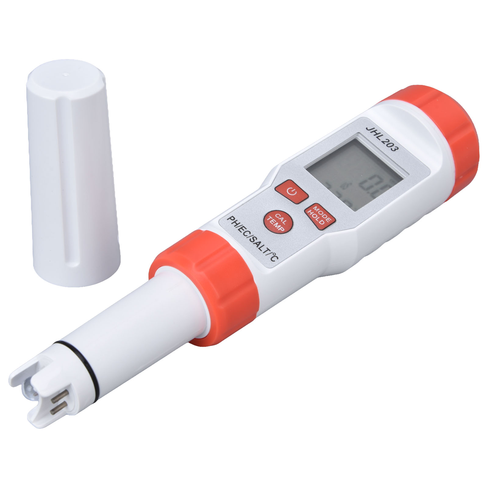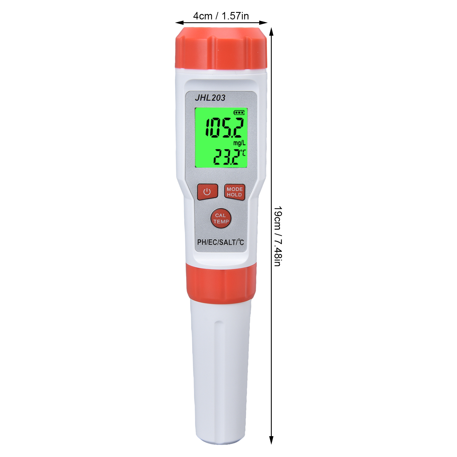 1、Multi Function: This 4 in 1 water tester supports PH, EC, SALT and temperature testing, providing more convenience. 2、High Accuracy: This 4 in 1 water tester features automatic recognition and automatic temperature compensation, which ensures high accuracy. 3、Wide Application: This 4 in 1 water tester is widely used drinking water, sewage treatment, water purification, fish tank, aquaculture, swimming pool, hydroponic, medical treatment and so on. 4、Backlit Function: This 4 in 1 water tester possesses backlit function, easy and convenient to read the results in dark environment. 5、Easy Operation: This 4 in 1 water tester is easy to operate, just immerse the pole in the solution and stir gently, then short press the "MODE" key.