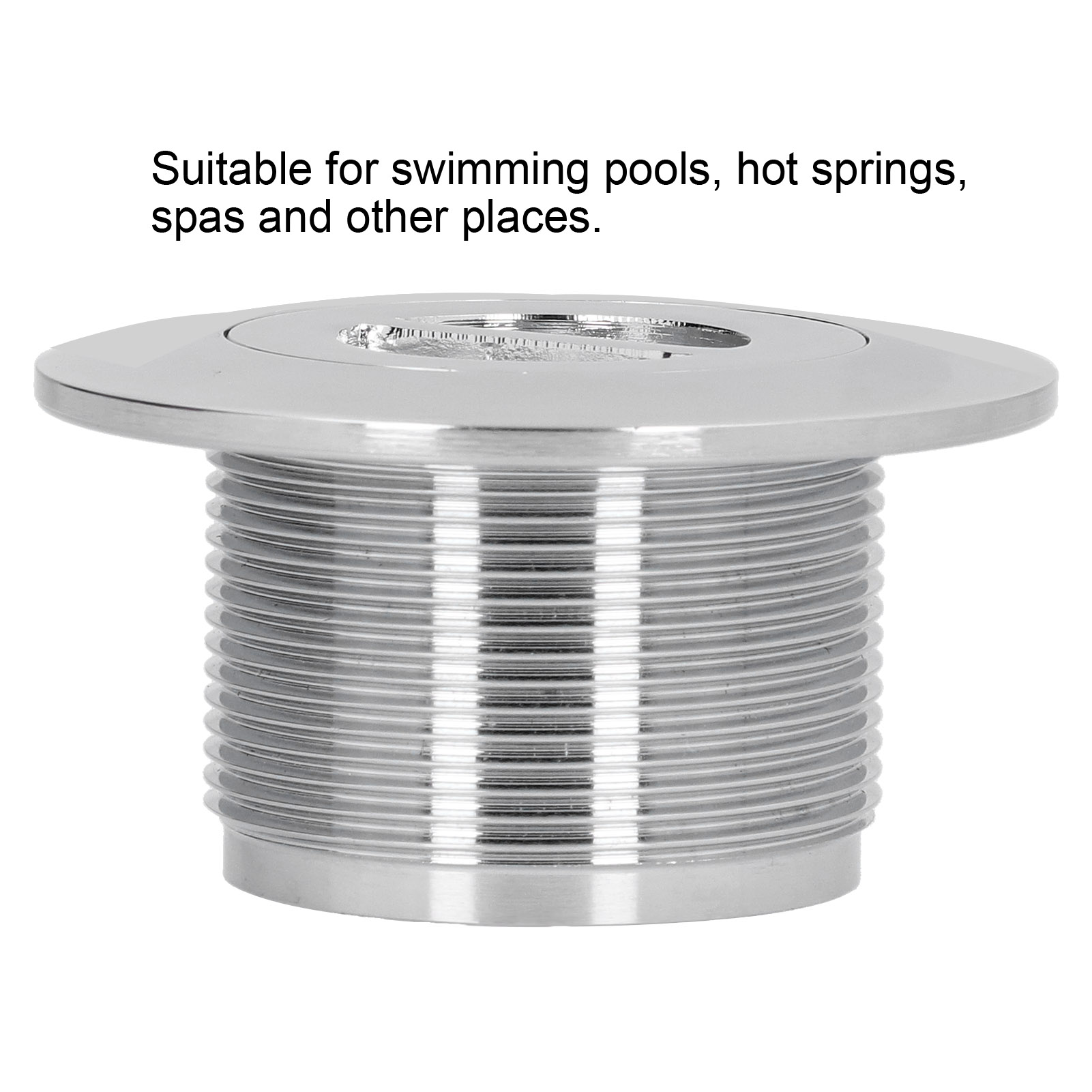 1、Sturdy and reliable, can effectively drain the water in the swimming pool. 2、Practical accessories suitable for swimming pools, hot springs, spas and other places. 3、It is easy to install and can directly replace the old and broken ones. 4、Made of stainless steel, it is strong, corrosion‑resistant and has a long service life. 5、Installed on the water outlet, the top of the suction port can be unscrewed to drain at any time.