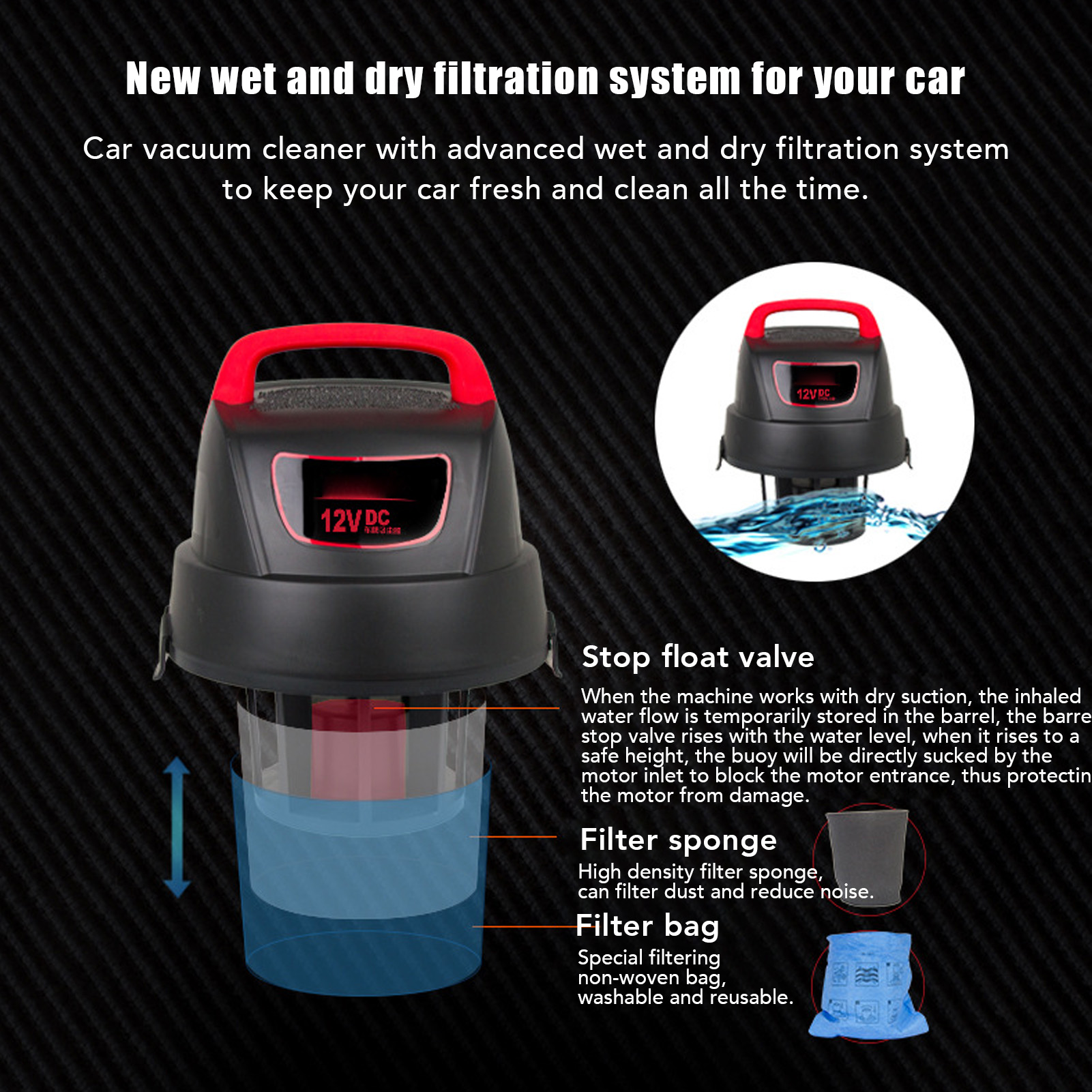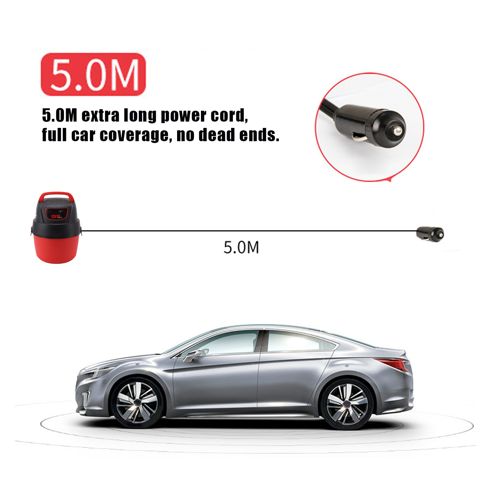 1、High Power Strong Suction: Car 100W 12VDC 5 meters long line bucket type wet and dry vacuum cleaner with 100W high power strong suction, can easily suck out the car dust and dirt, keep the car clean. 2、Bucket Type Wet And Dry Design: This car vacuum cleaner is designed with a bucket type wet and dry design, which can suck up both dry and wet types of waste and stains, making it more comprehensive and convenient to use. 3、Five Meter Long Cord Design: This car vacuum cleaner is equipped with a five meter long cord, which can easily suck up dust and garbage from any corner of the car, making it more convenient to use. 4、Large Capacity Collection Cup: Equipped with a 4 liter large capacity collection cup, it can fully receive more dirt, reduce the number of cleanups and improve work efficiency. 5、Multifunctional Accessories: The car vacuum cleaner is also equipped with a variety of accessories, such as floor brushes, nozzles, adapters, etc., which can easily cope with a variety of difficult to clean corners and keep your car cleaner and tidier.