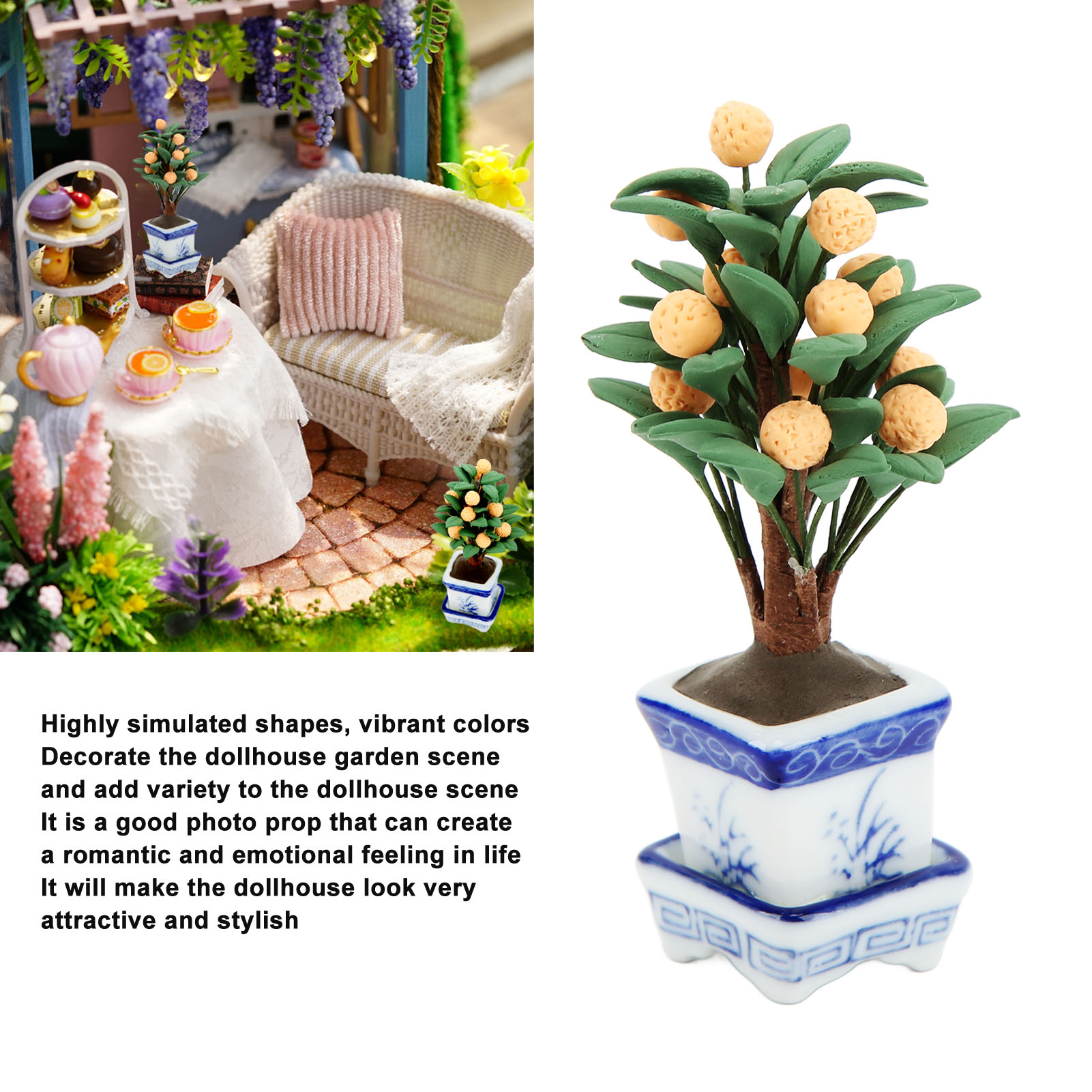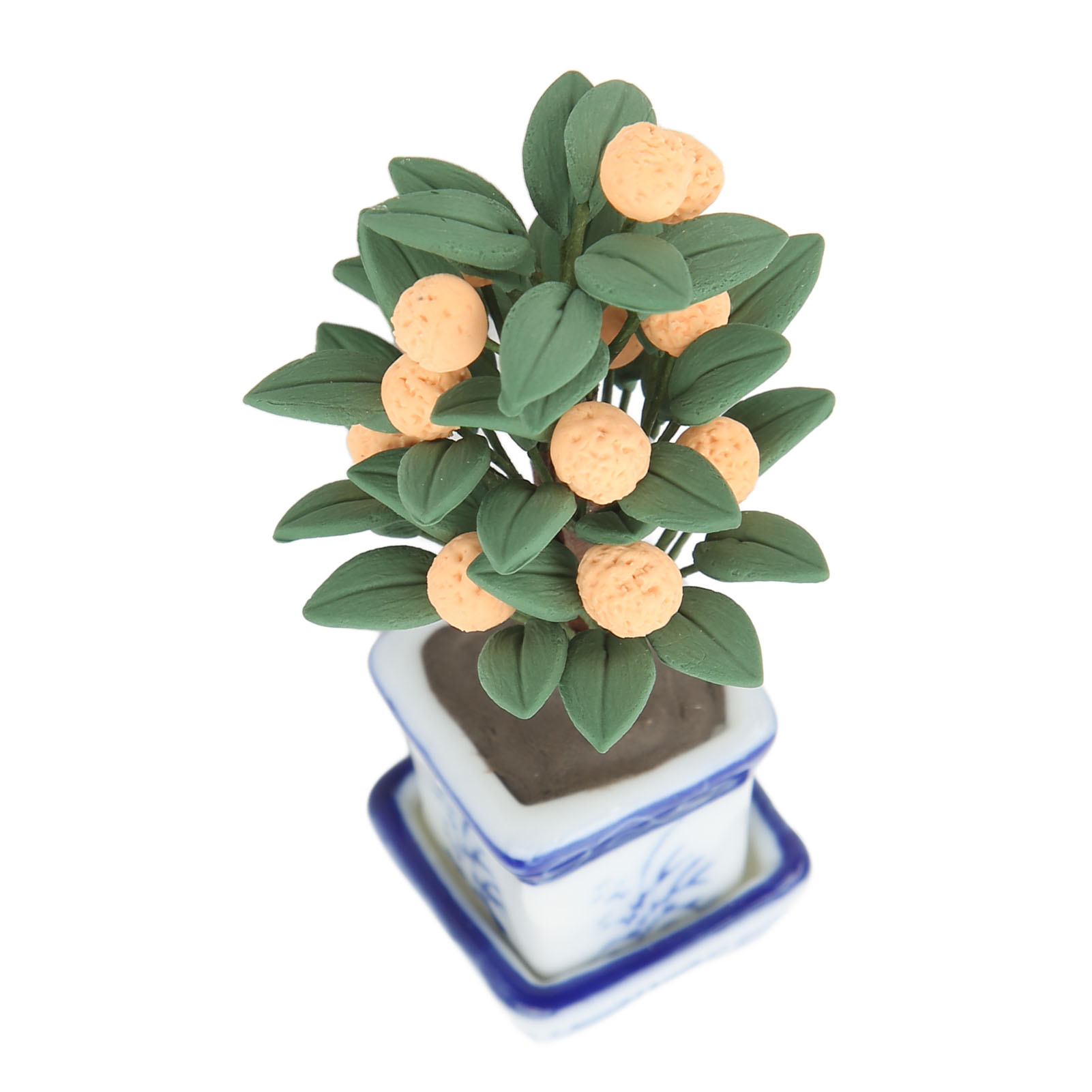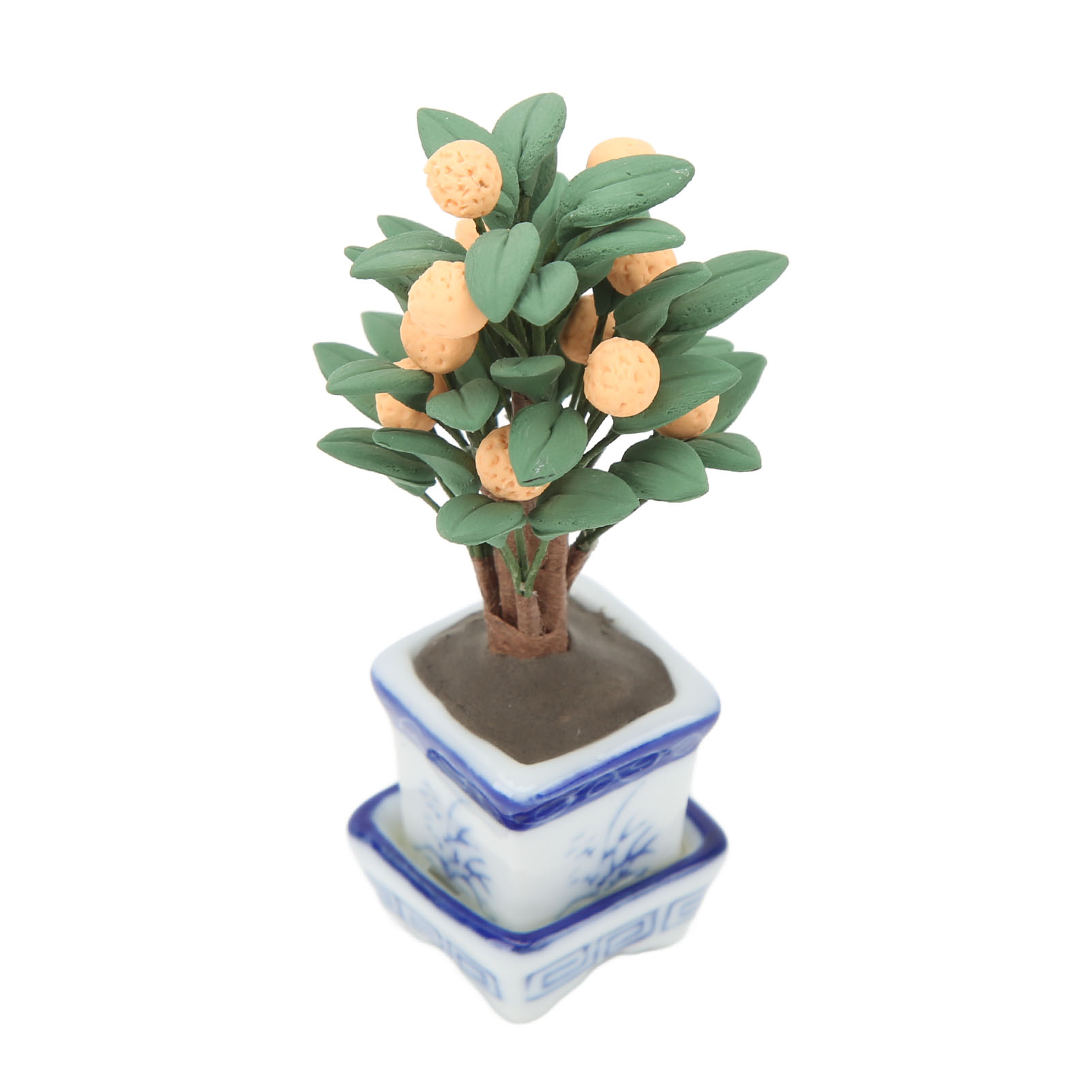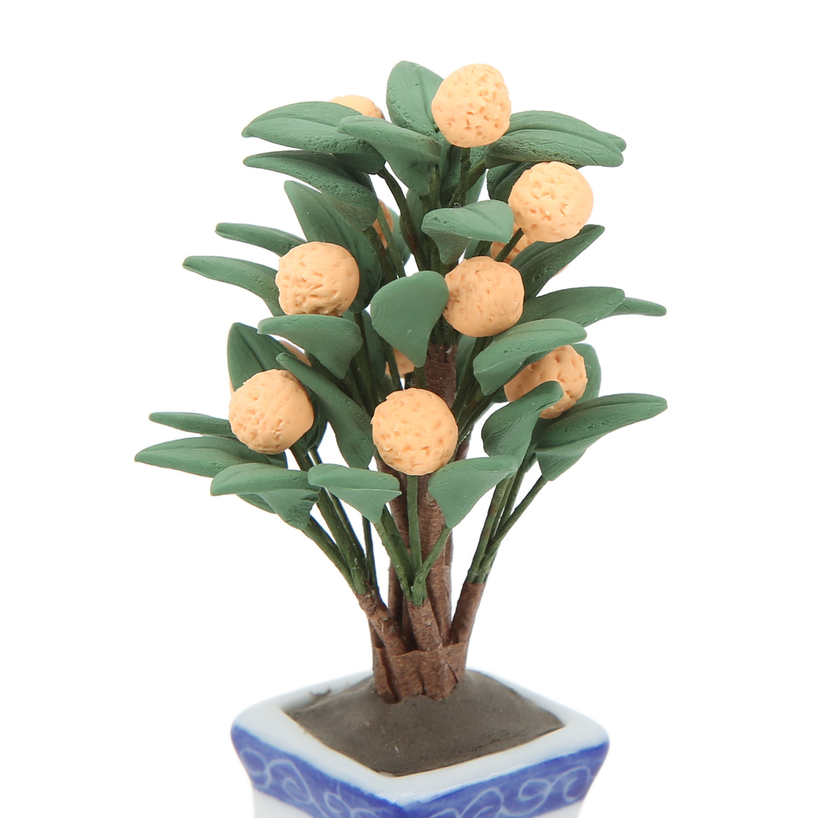 1/12 Dollhouse Potted Orange Tree Vivid Dollhouse Miniature Potted Leafed Plant for Dollhouse Decoration Photo Prop
