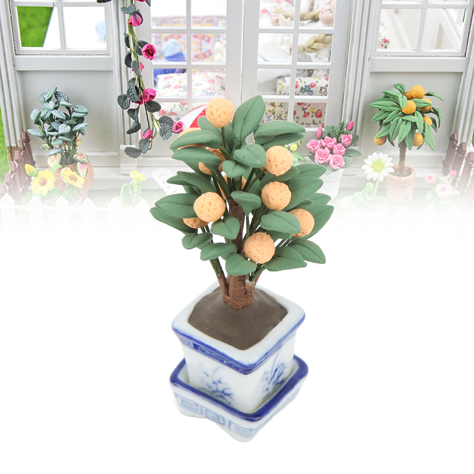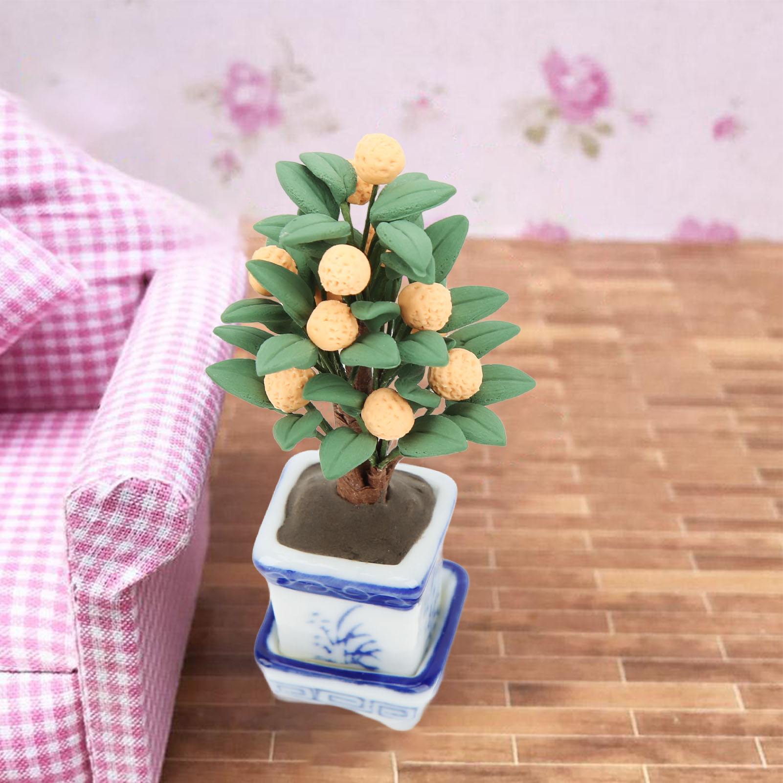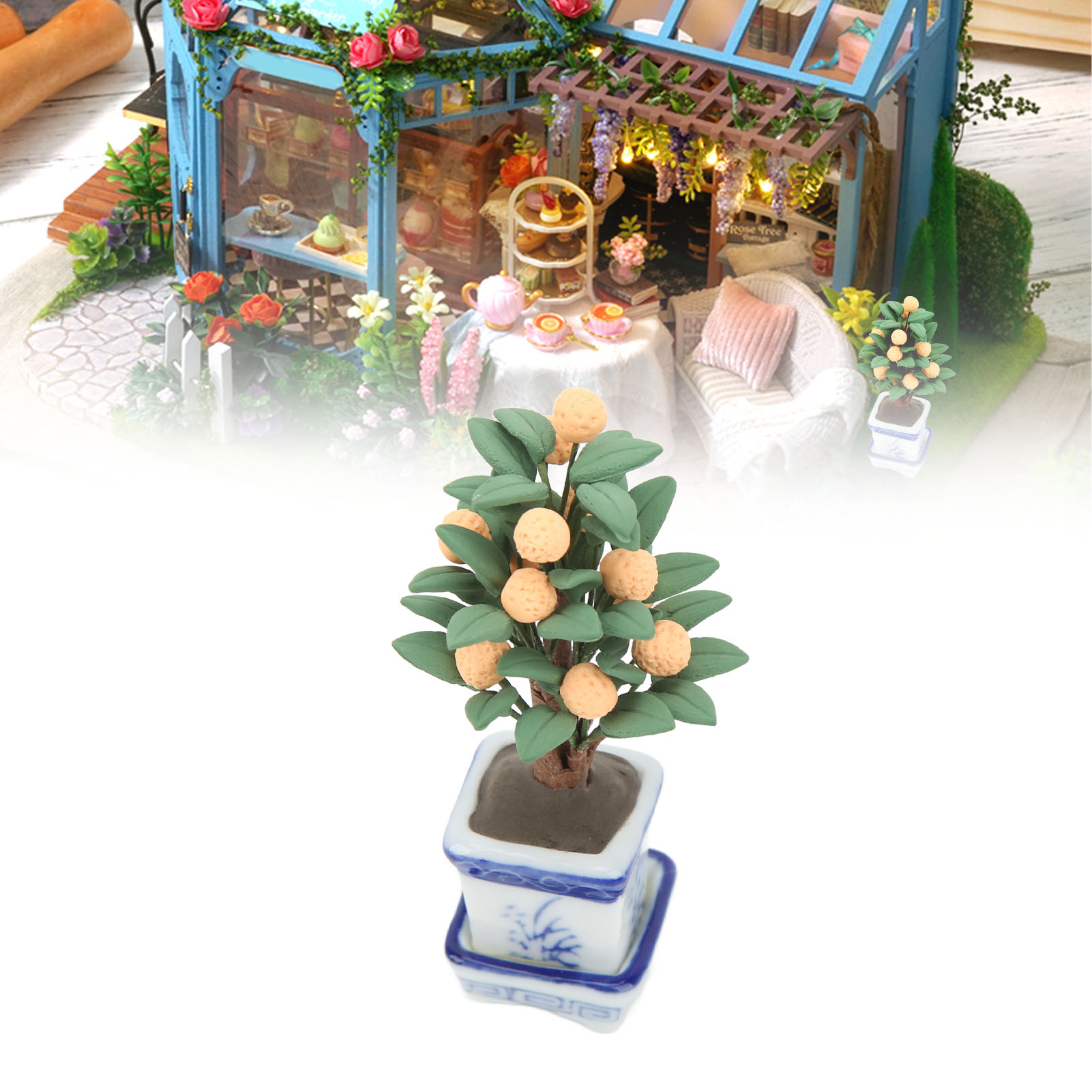 1/12 Dollhouse Potted Orange Tree Vivid Dollhouse Miniature Potted Leafed Plant for Dollhouse Decoration Photo Prop