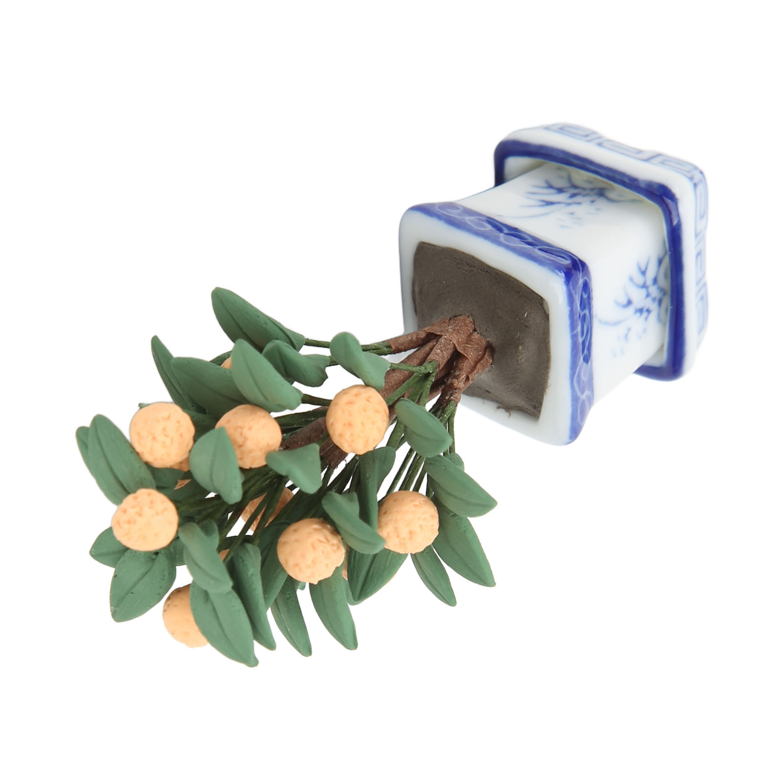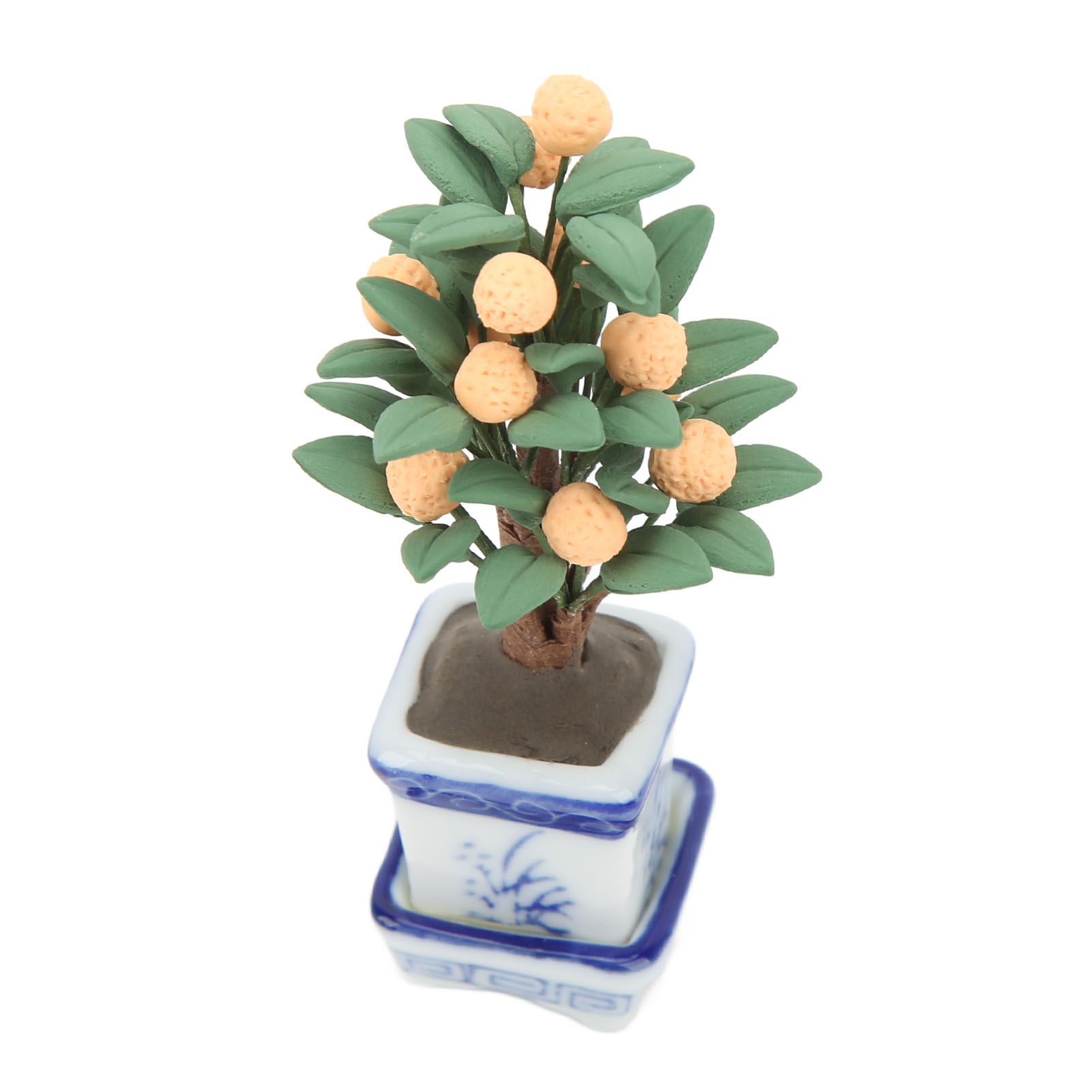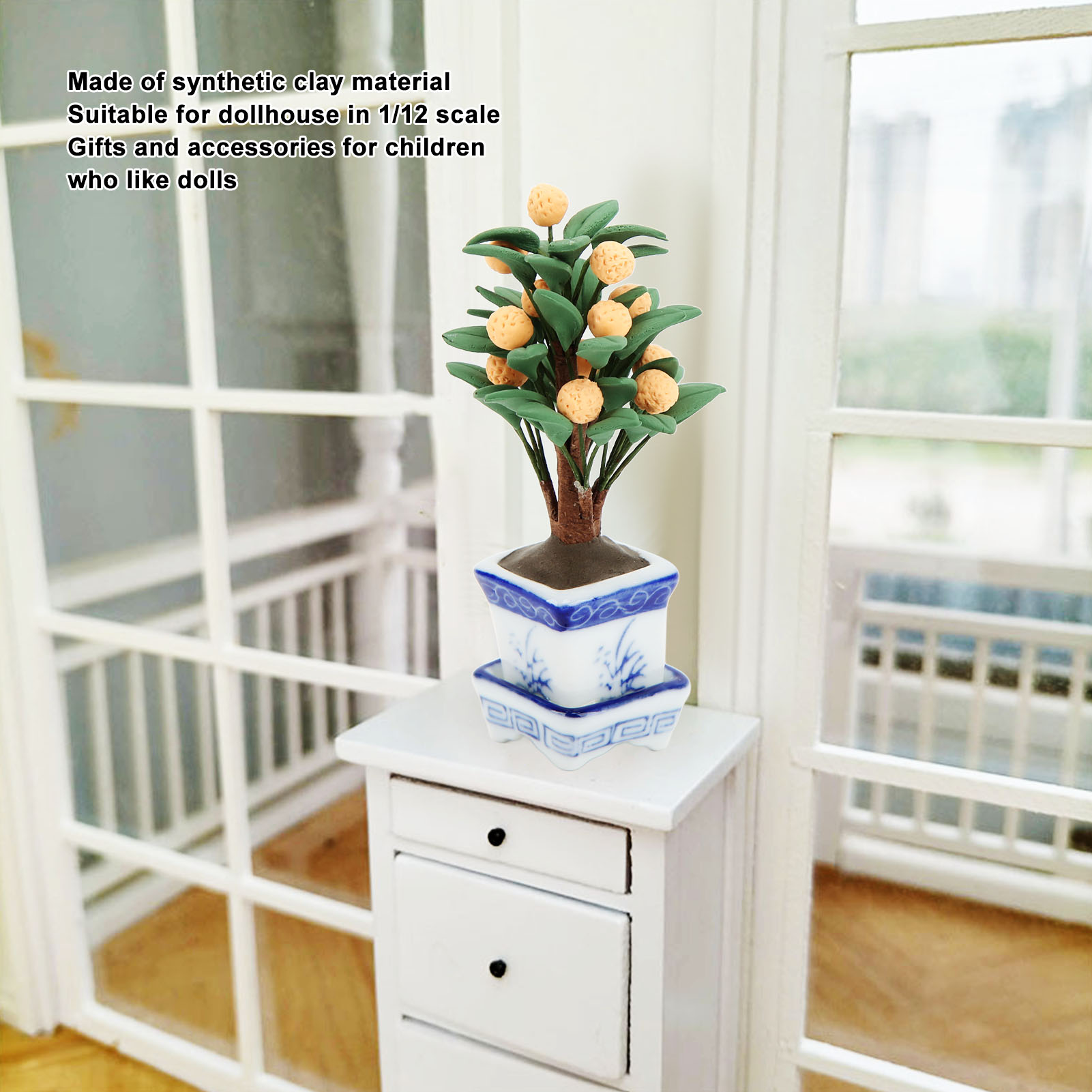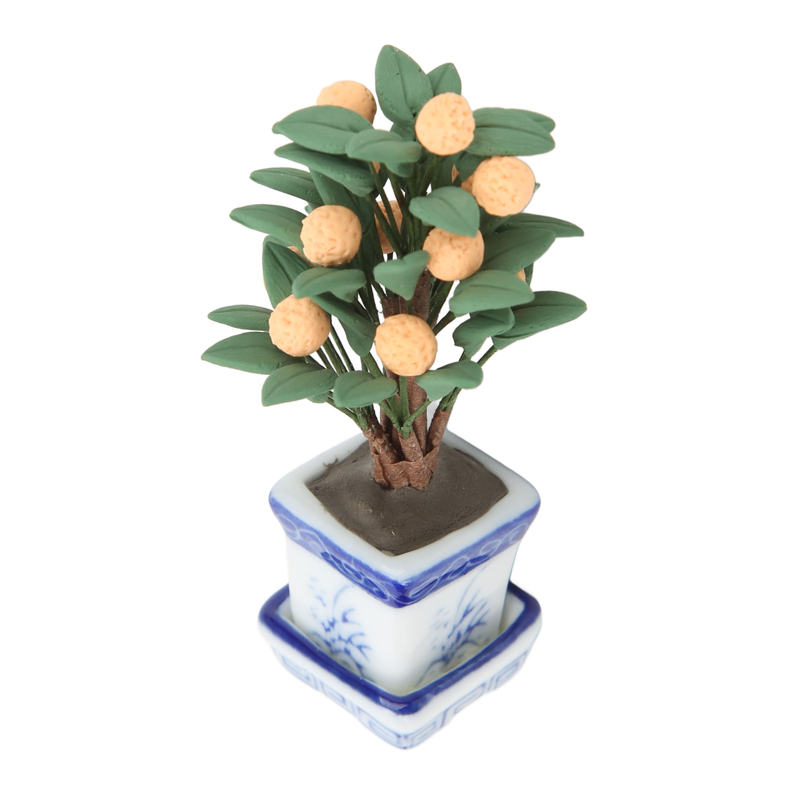 1/12 Dollhouse Potted Orange Tree Vivid Dollhouse Miniature Potted Leafed Plant for Dollhouse Decoration Photo Prop