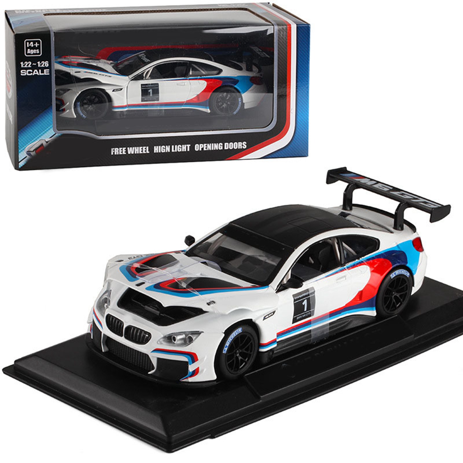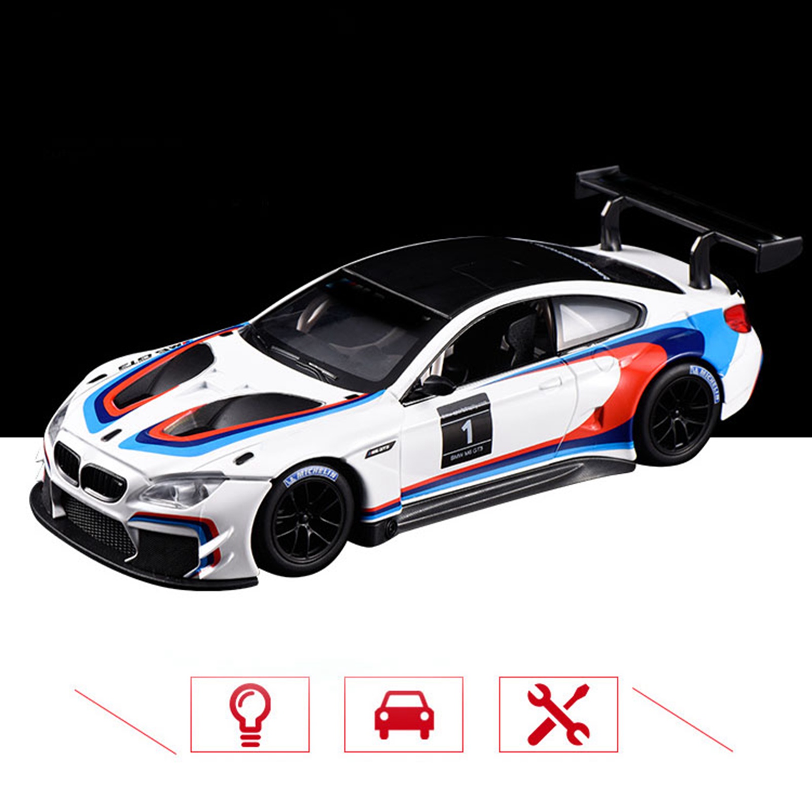 1、SIMULATION DESIGN: Sports car model is made in accordance with 1/24 scale, using simulation design, fine workmanship and exquisite design. 2、ALLOY MATERIAL: Sports car model toy is made of premium alloy material, wear resistant and scratch resistant, long service life. 3、EXQUISITE APPEARANCE: Allloy sports car model adopts brushed coating design, with cool and fashionable appearance, making your model car attractive. 4、COOL CAR EFFECTS: Sports car simulation model both sides of the door, hood can be opened and closed, open the door to trigger lights and sound effects (car beeping). 5、DUAL MODE: Car model toy support dual mode free choice, switch the sound and light or static mode through the switch, is an excellent decoration or ornaments.