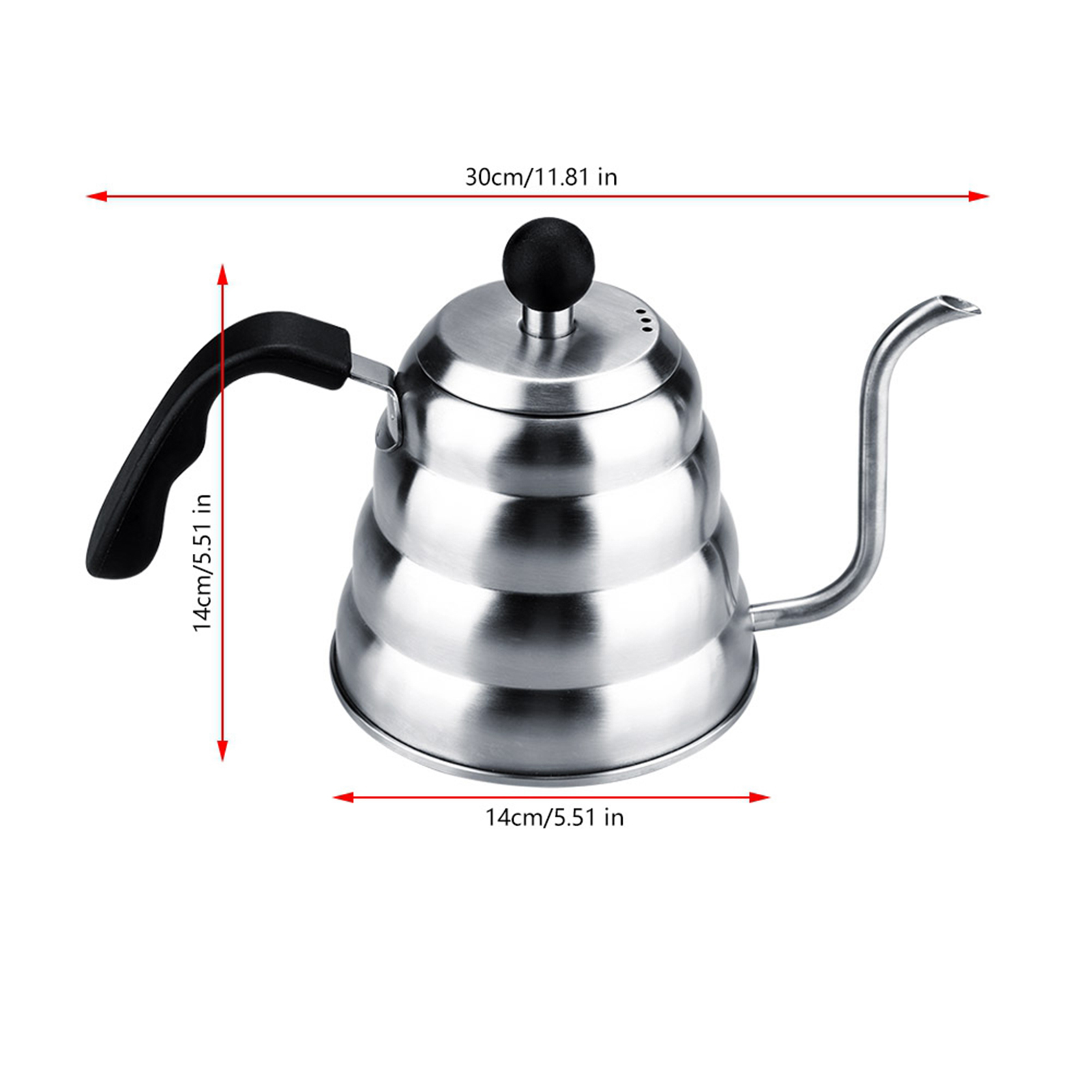 1.2L 304 Stainless Steel Pour Over Coffee Gooseneck Kettle Teapot for Home Cafe