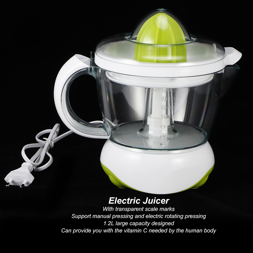 1、Electric juicer, uses food‑grade ABS material, durable and can directly contact food. 2、With transparent scale marks, measurement making for accurate use in recipes and mixed drinks. 3、1.2L large capacity designed, can provide you with the vitamin C needed by the human body. 4、Support manual pressing and electric rotating pressing, convenient operation, saving time and effort. 5、Practical kitchen utensils, all detachable parts can be cleaned in the dishwasher.