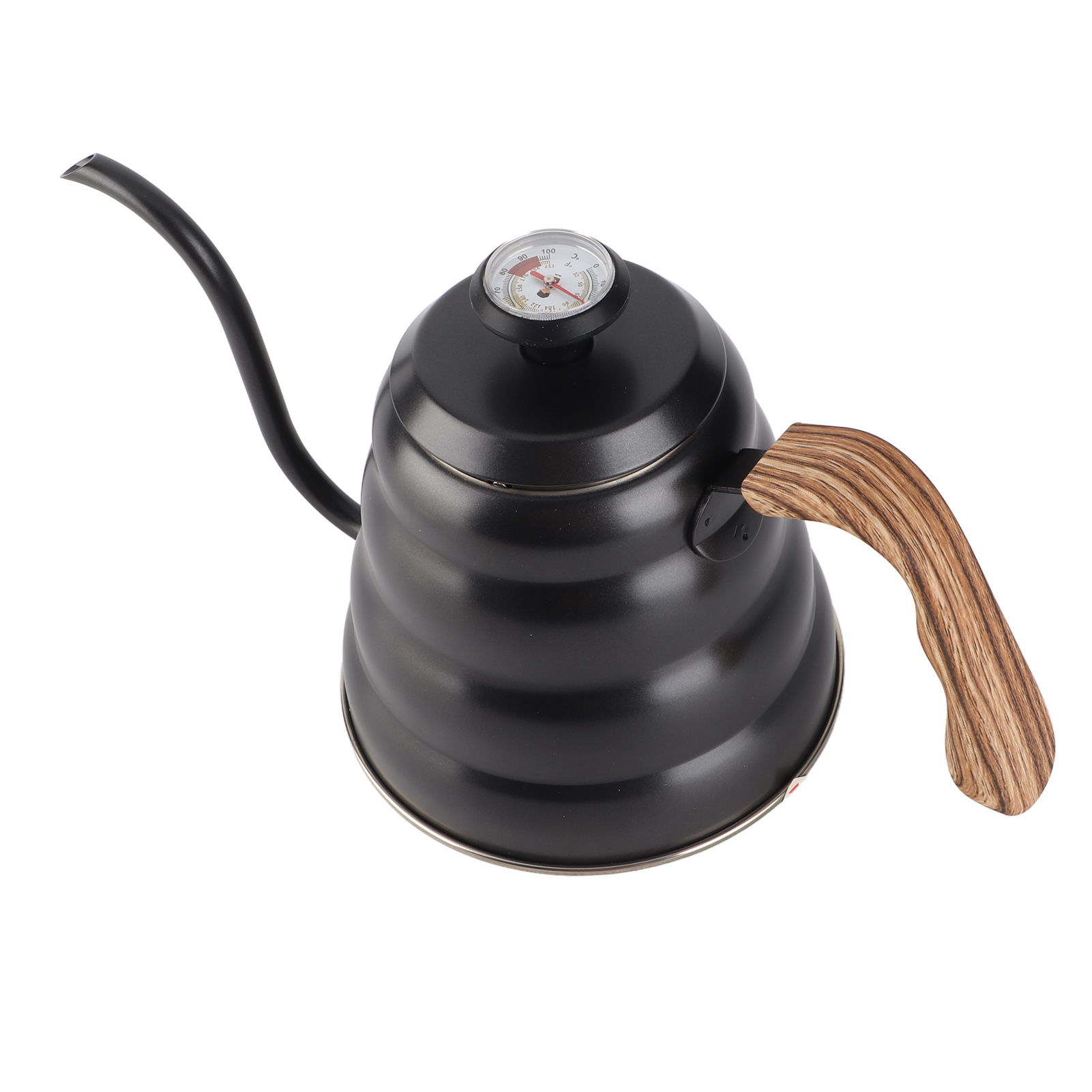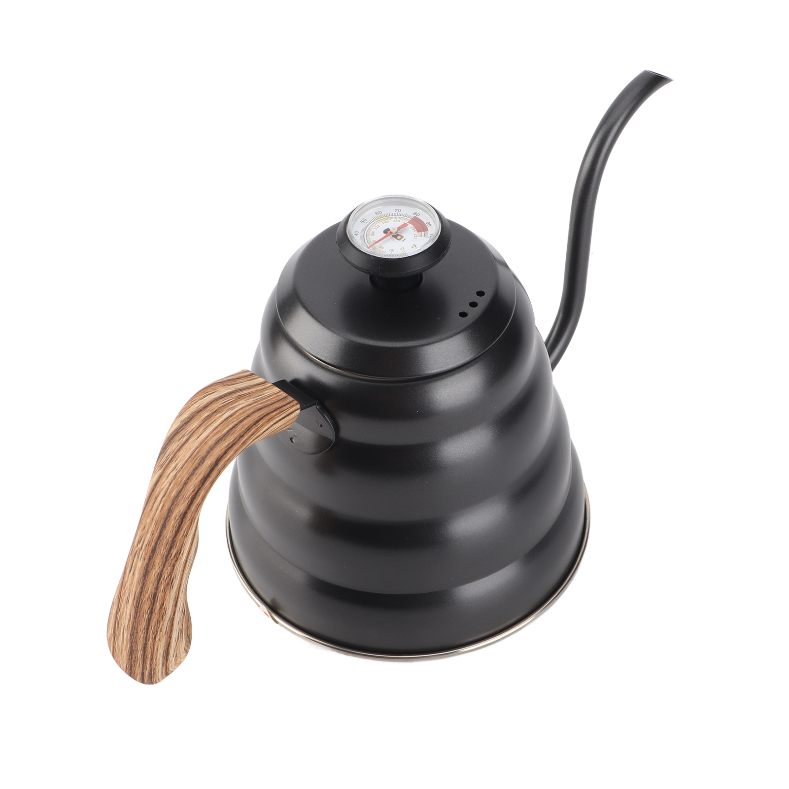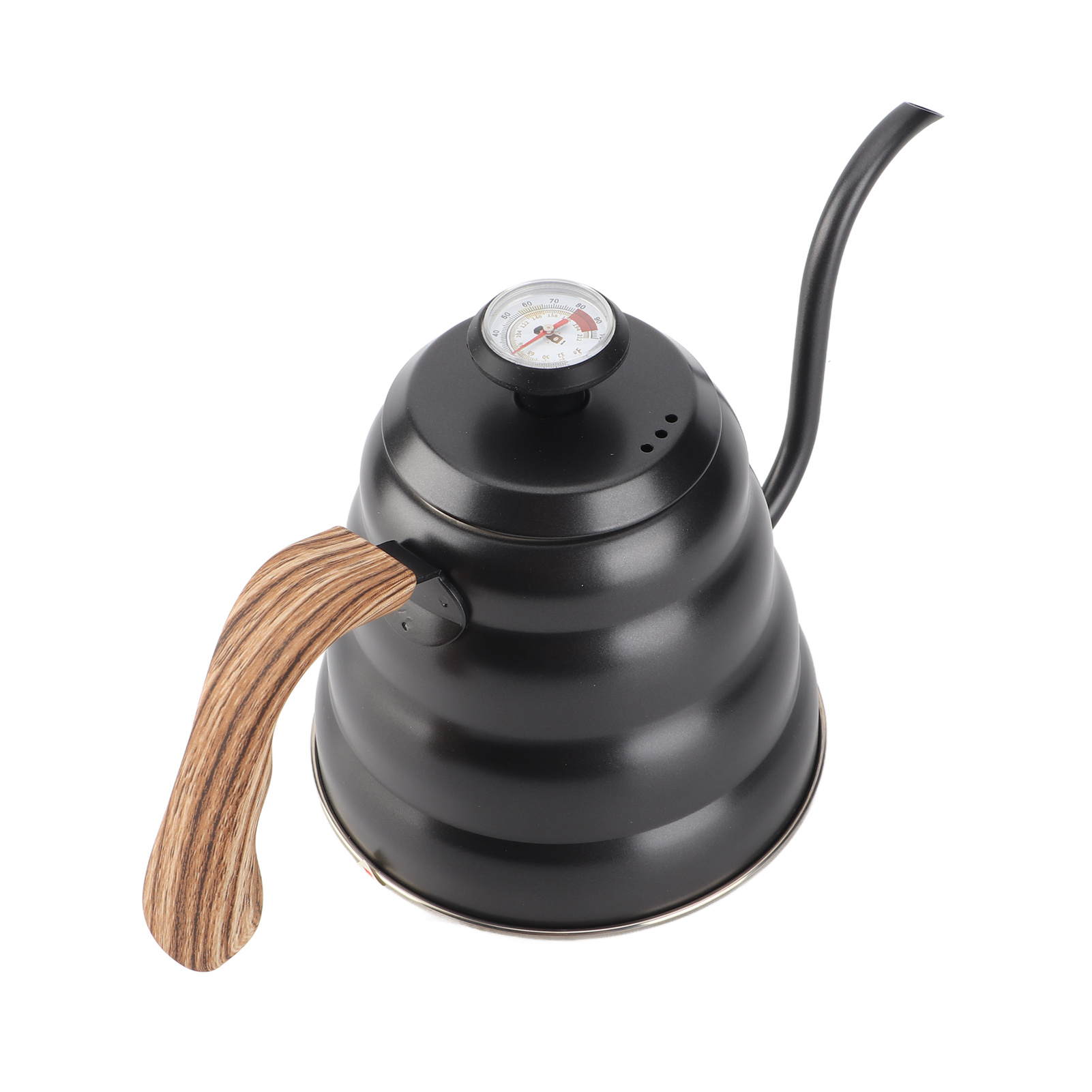 1、Allows you to brew your pour over coffee at the optimal temperature. Make a perfect cup of coffee every time with our easy to read coffee thermometer! 2、Great gooseneck spout, make a perfect glass of coffee or tea! Smooth water flow is essential in making drip coffee and pour over tea. 3、The coffee pot is perfect accessory for every coffee lover, simple and elegant, a great helper for coffee extraction. 4、Food grade stainless steel material, strong anti‑rust, anti‑oxidation and anti‑scratch ability, long service life. The inner liner is brushed and easy to clean. 5、Curved handle with wood grain, ergonomic design, comfortable feel, not hot hands. Pour the right amount of water and pour at the right speed for consistent coffee extraction.