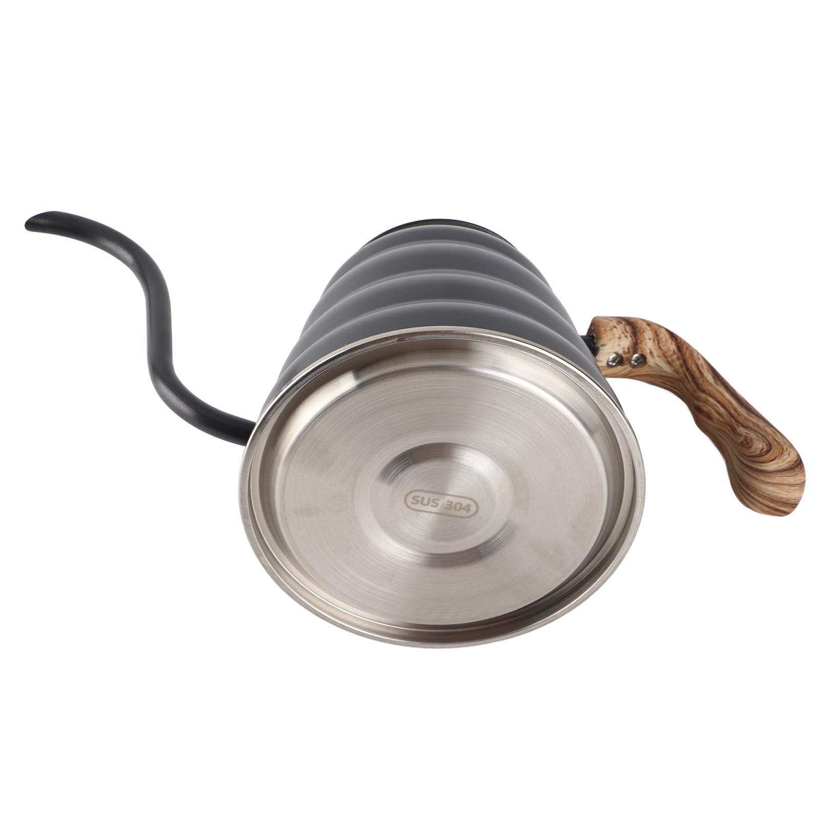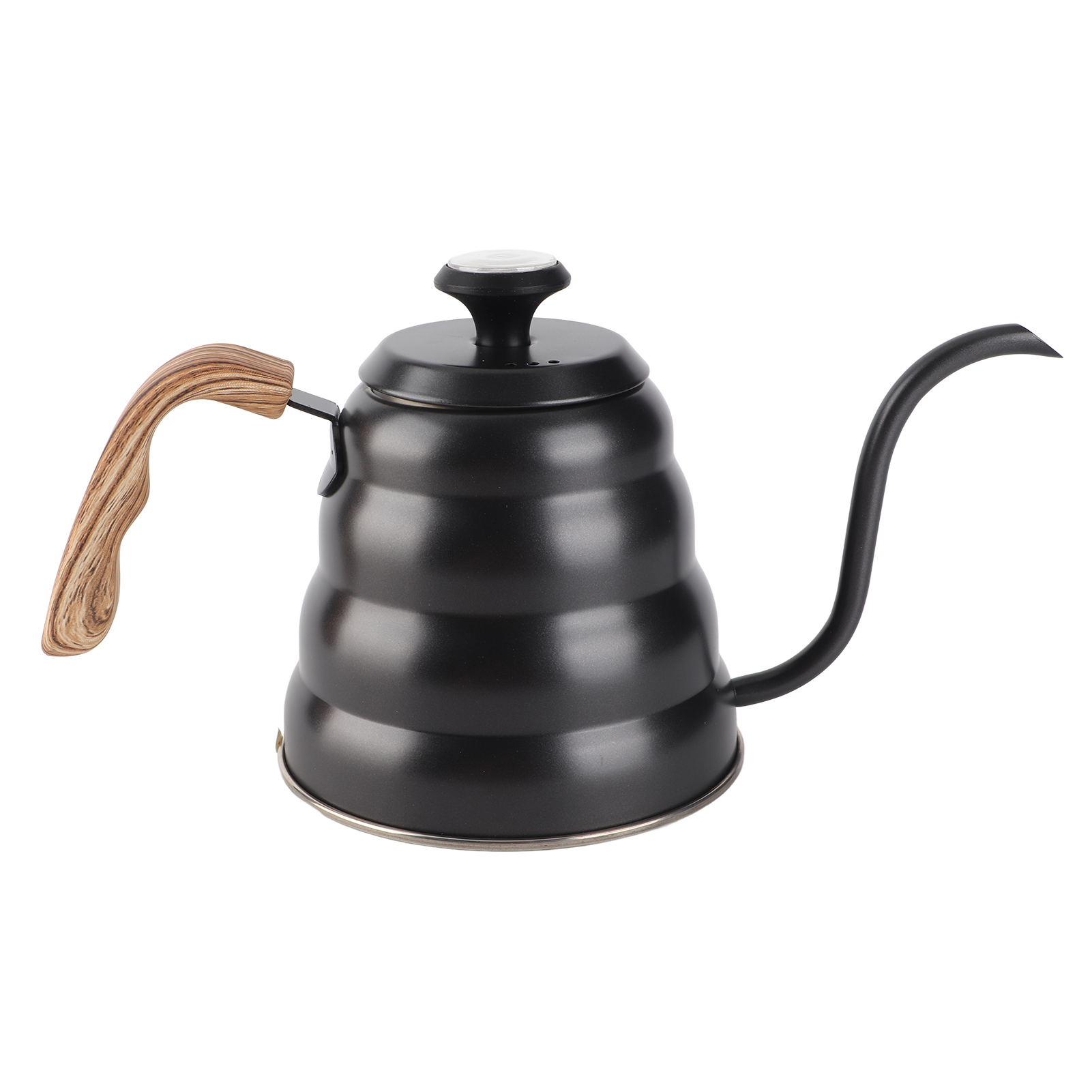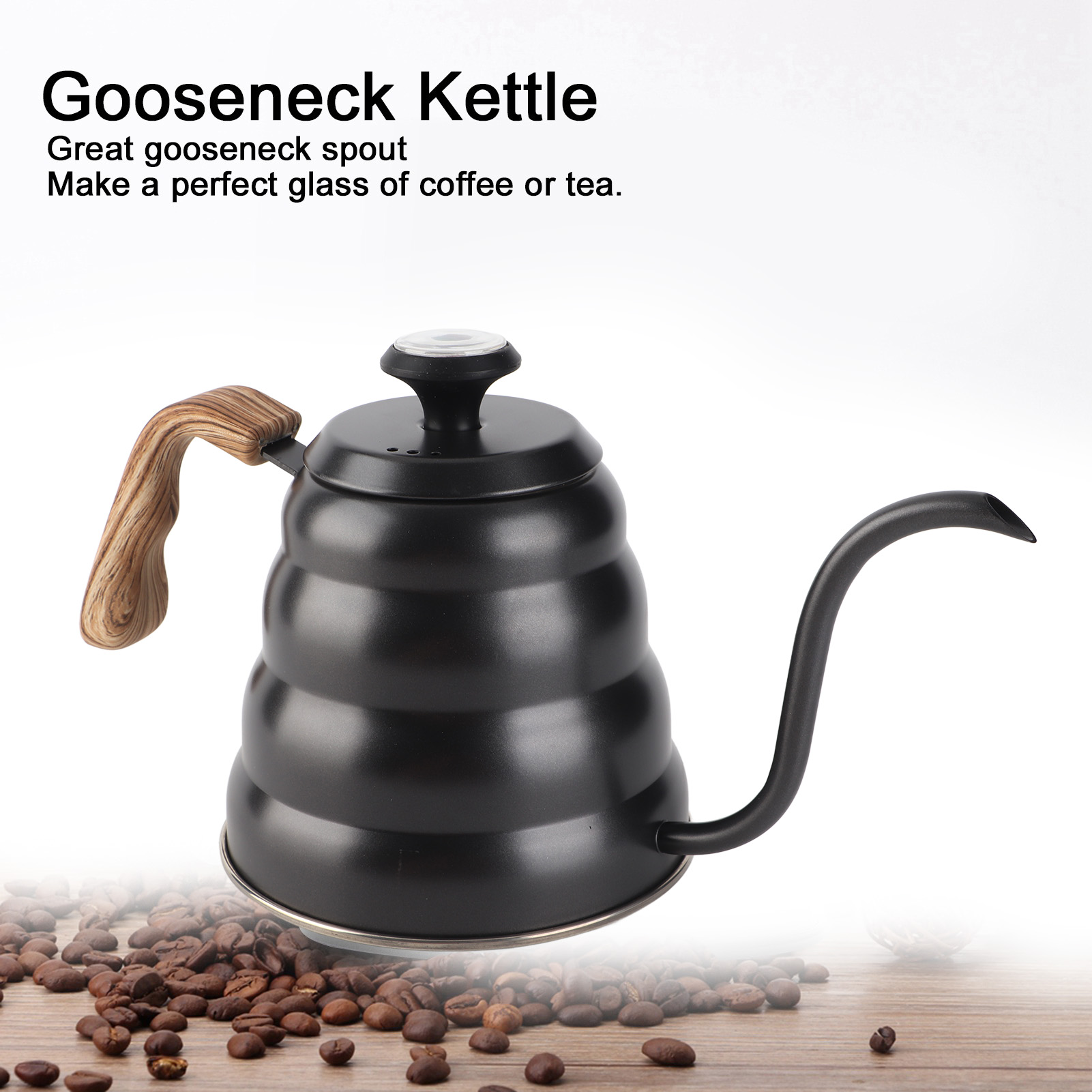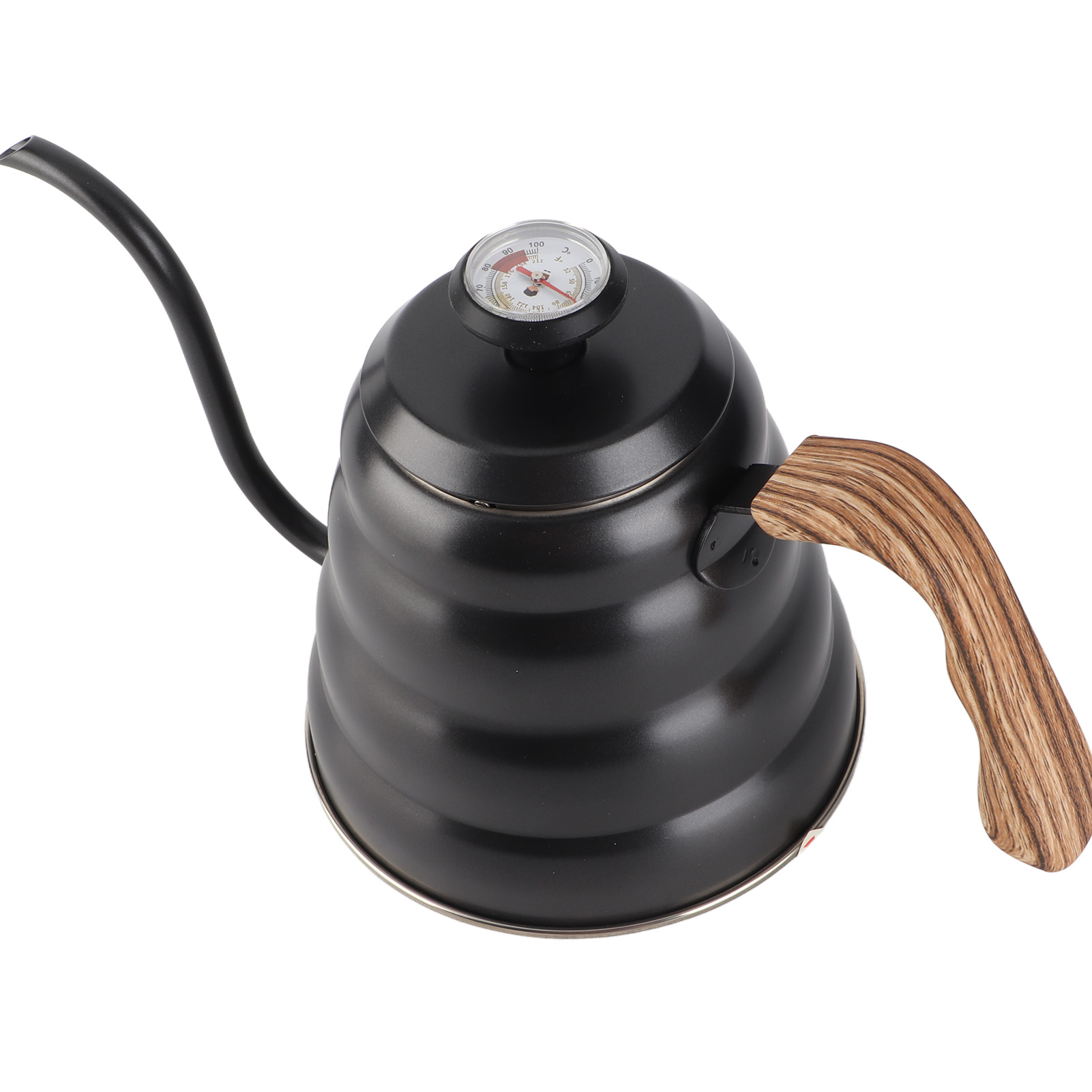 1、Allows you to brew your pour over coffee at the optimal temperature. Make a perfect cup of coffee every time with our easy to read coffee thermometer! 2、Great gooseneck spout, make a perfect glass of coffee or tea! Smooth water flow is essential in making drip coffee and pour over tea. 3、The coffee pot is perfect accessory for every coffee lover, simple and elegant, a great helper for coffee extraction. 4、Food grade stainless steel material, strong anti‑rust, anti‑oxidation and anti‑scratch ability, long service life. The inner liner is brushed and easy to clean. 5、Curved handle with wood grain, ergonomic design, comfortable feel, not hot hands. Pour the right amount of water and pour at the right speed for consistent coffee extraction.