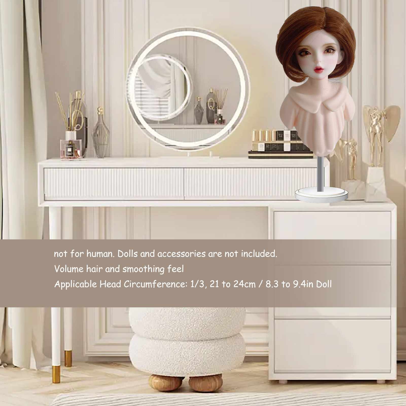Applicable Head Circumference: 1/3, 21 to 24cm / 8.3 to 9.4in Doll