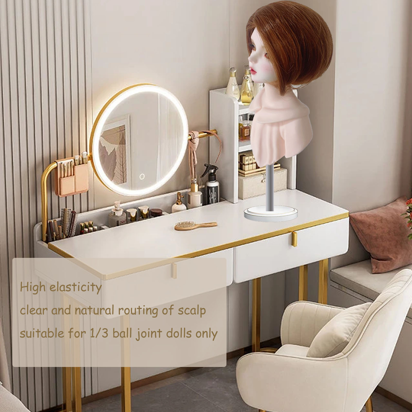 1、High Elasticity: This 1/3 doll wig adopts 3 sheet internal net, which ensures high elastic and exquisite beauty. 2、Natural Trace: This short doll wig features clear and natural routing of scalp, which is more authentic and exquisite. 3、1/3 Doll Wig: This short hair wig is suitable for 1/3 ball joint dolls only, not for human. Dolls and accessories are not included. 4、Smoothing Feel: This 1/3 doll wig has volume hair with smoothing hand feel, not easy to lose. 5、DIY with Creativity: This 1/3 short doll wig allows you to create variety of styling for your doll with creativity.